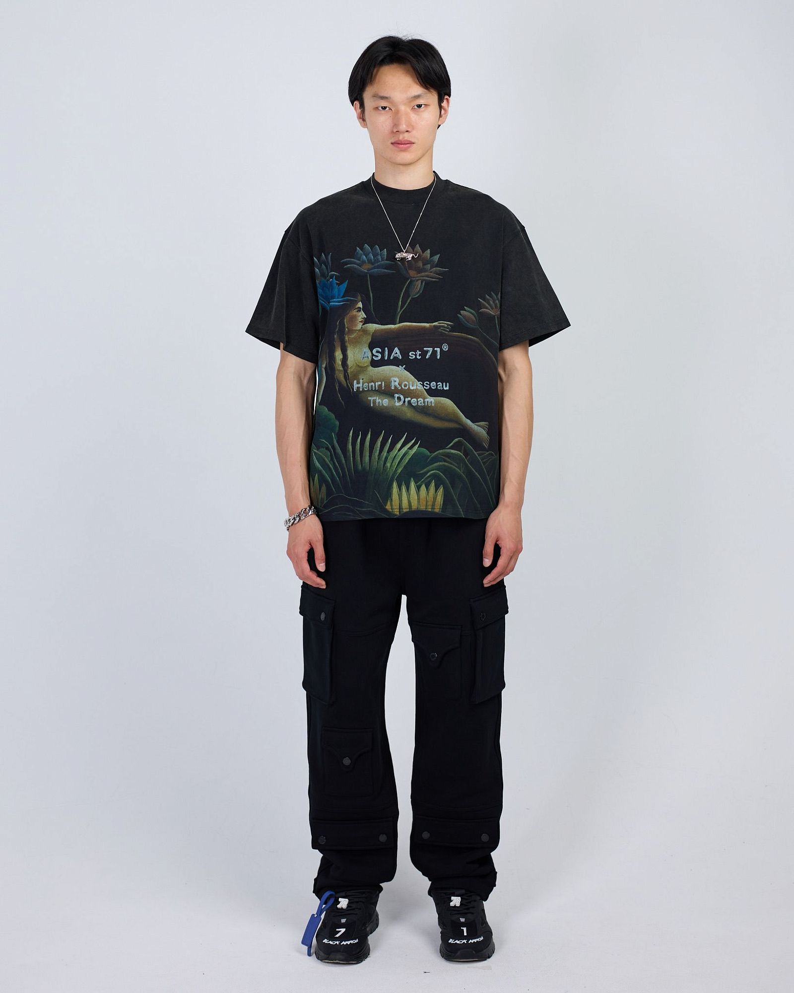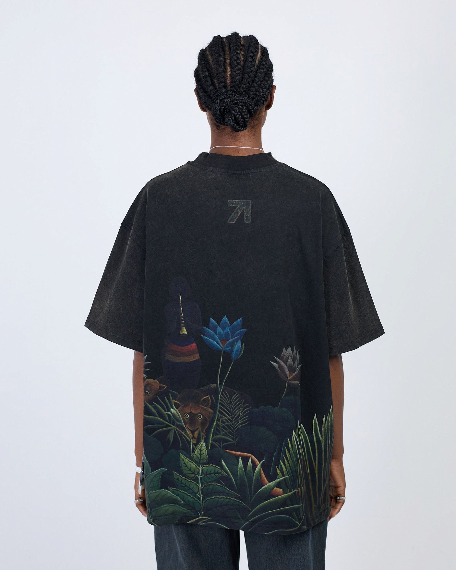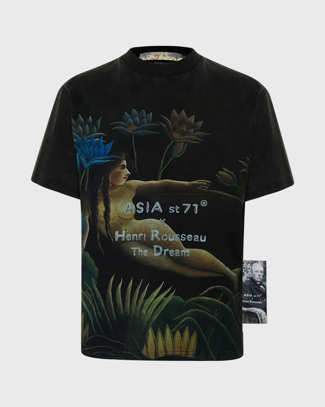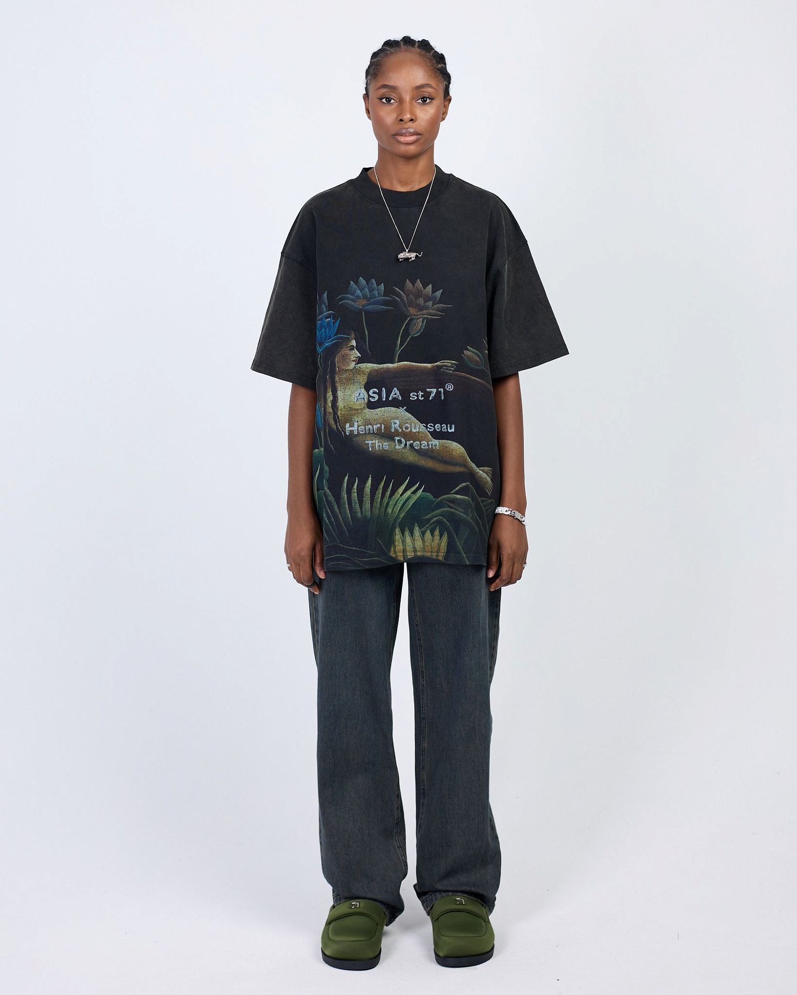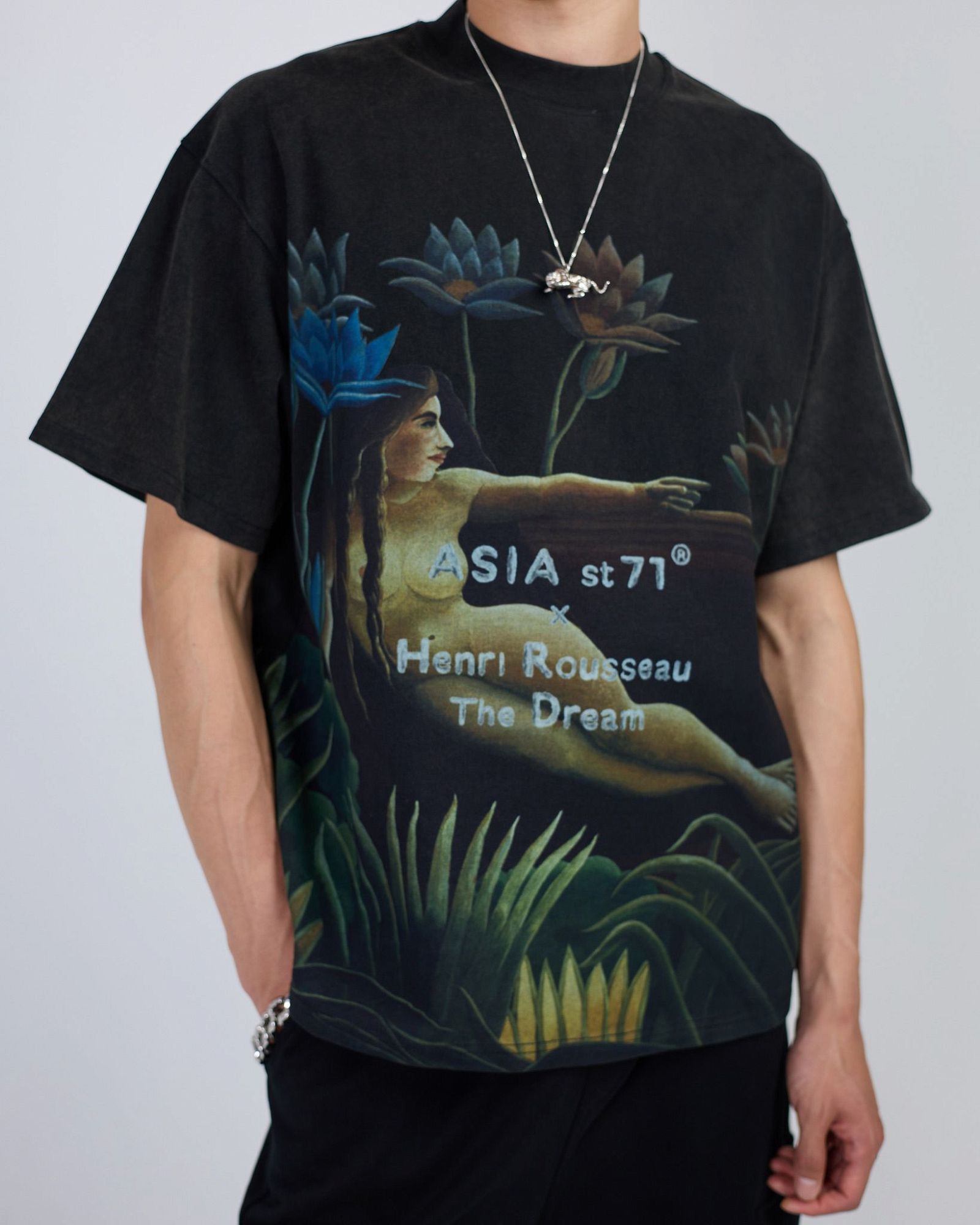 ФУТБОЛКА СВОБОДНОГО ПРЯМОГО КРОЯ С КАРТИНОЙ "THE TRIUMPH OF GALATEA" ВЫПОЛНЕНА ИЗ ПЛОТНОГО 380-GГ ХЛОПКА И ДЕРЖИТ ФОРМУ.