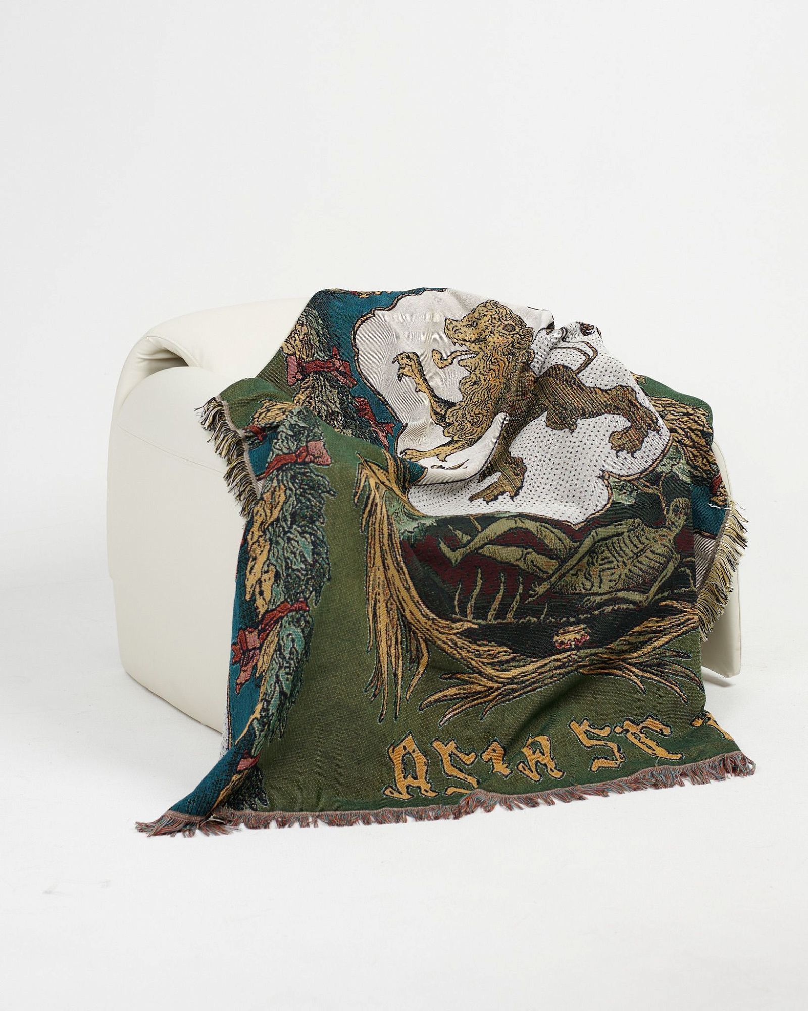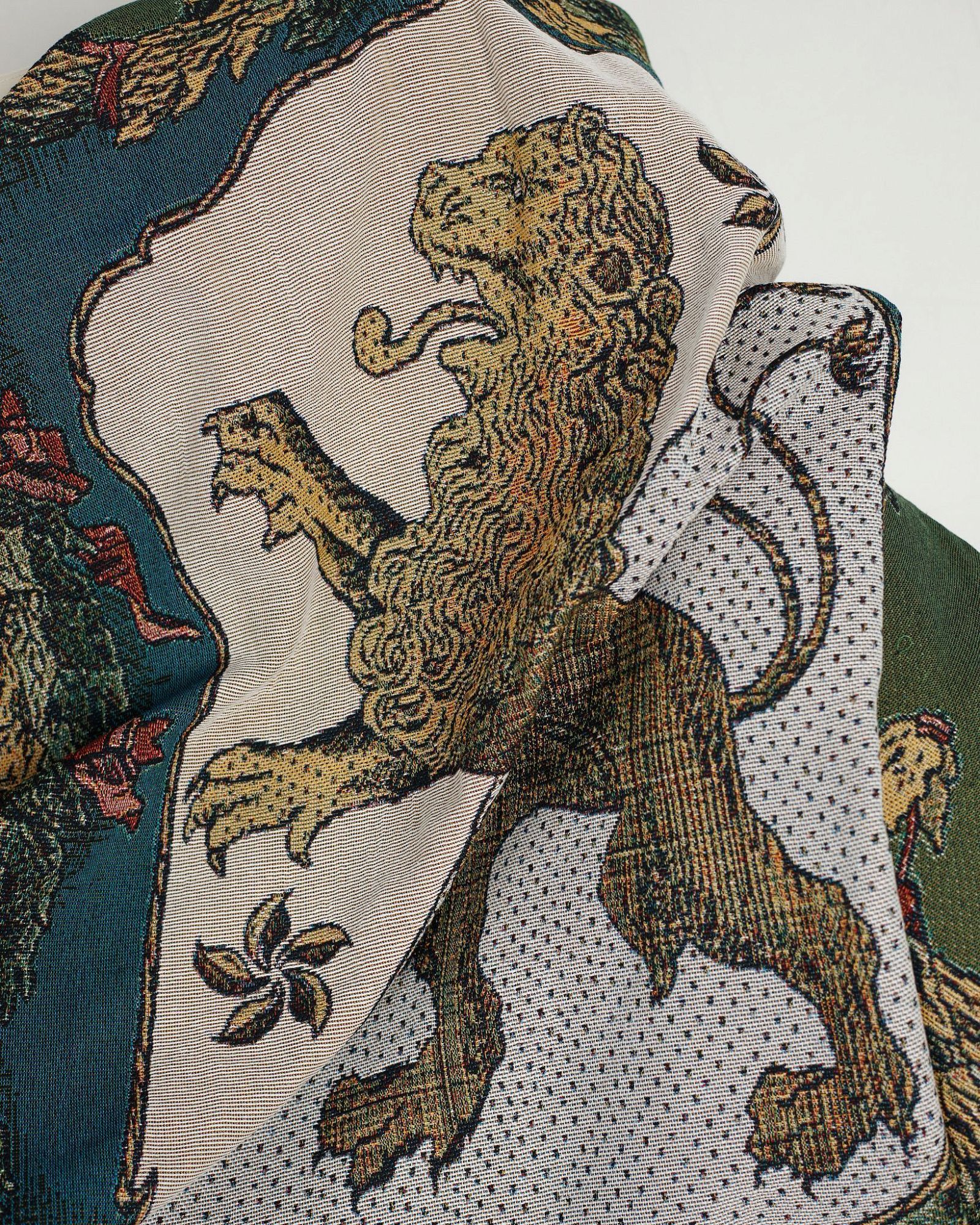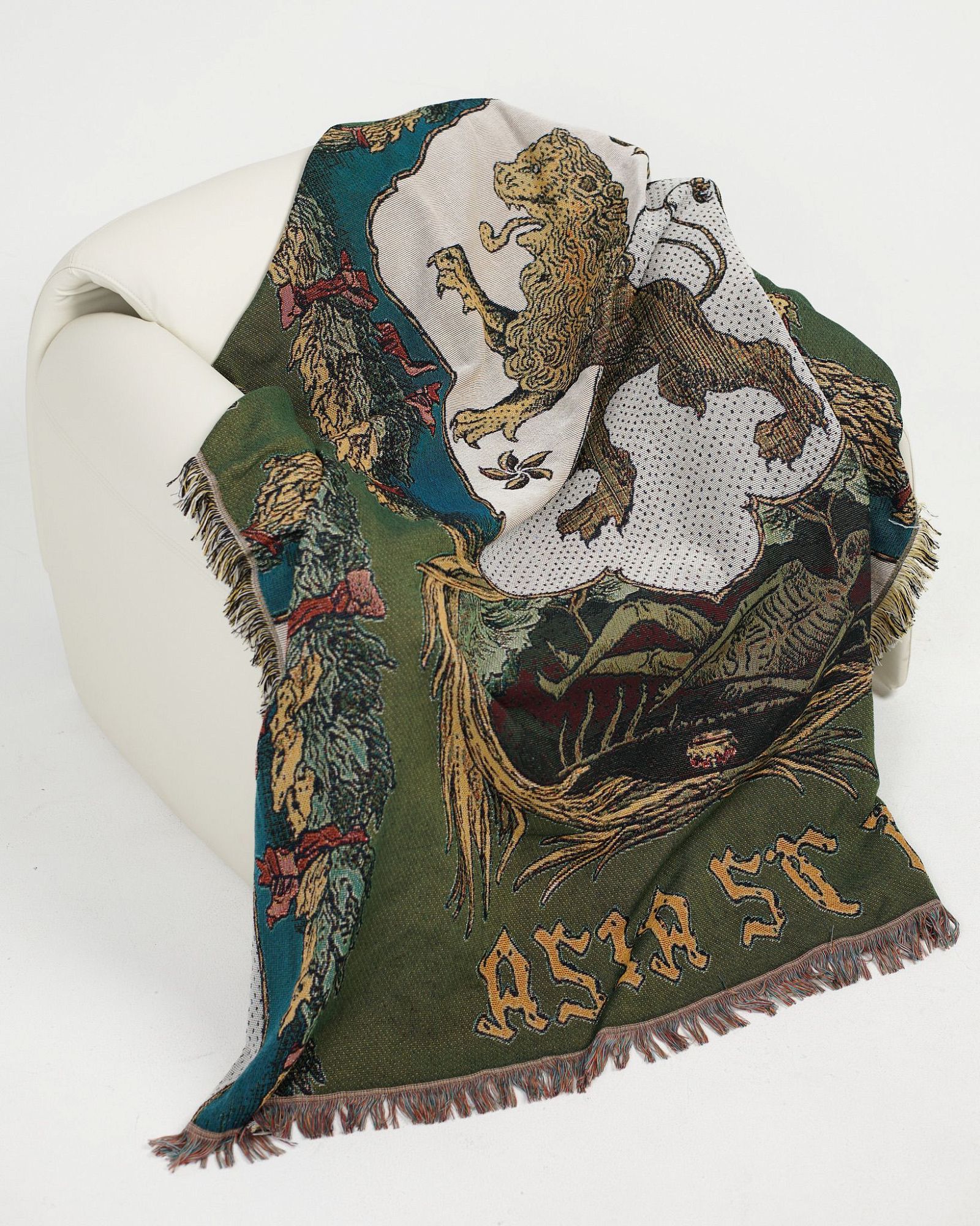 ПЛЕД, ВЫПОЛНЕН С ИСПОЛЬЗОВАНИЕМ ТЕХНИКИ ЖАККАРДОВОГО ПЛЕТЕНИЯ, ИЗВЕСТНОЙ КАК ГОБЕЛЕН. РАЗМЕР ПЛЕДА СОСТАВЛЯЕТ 180Х160 СМ."