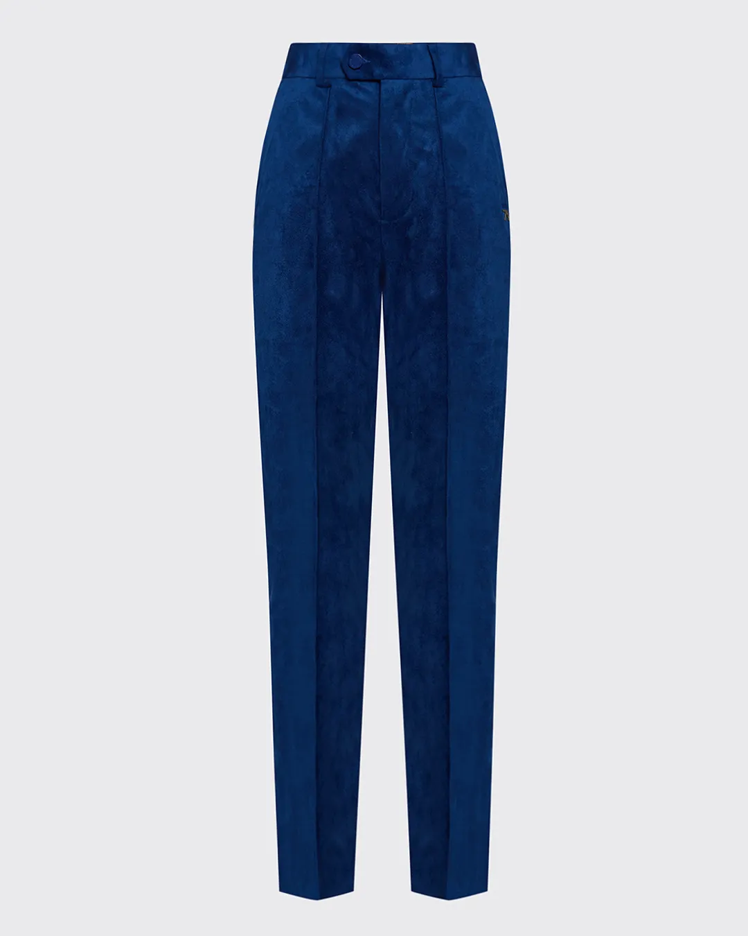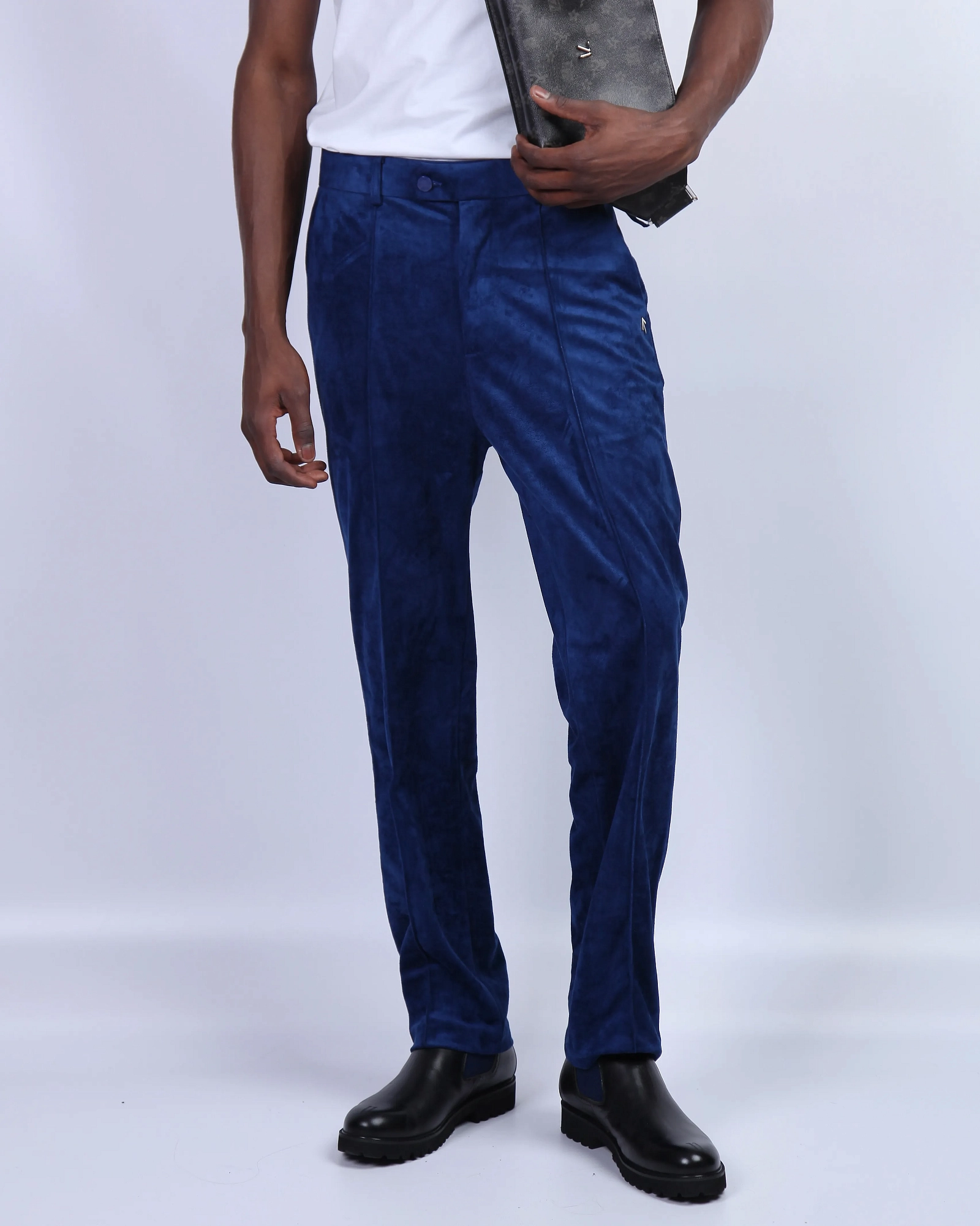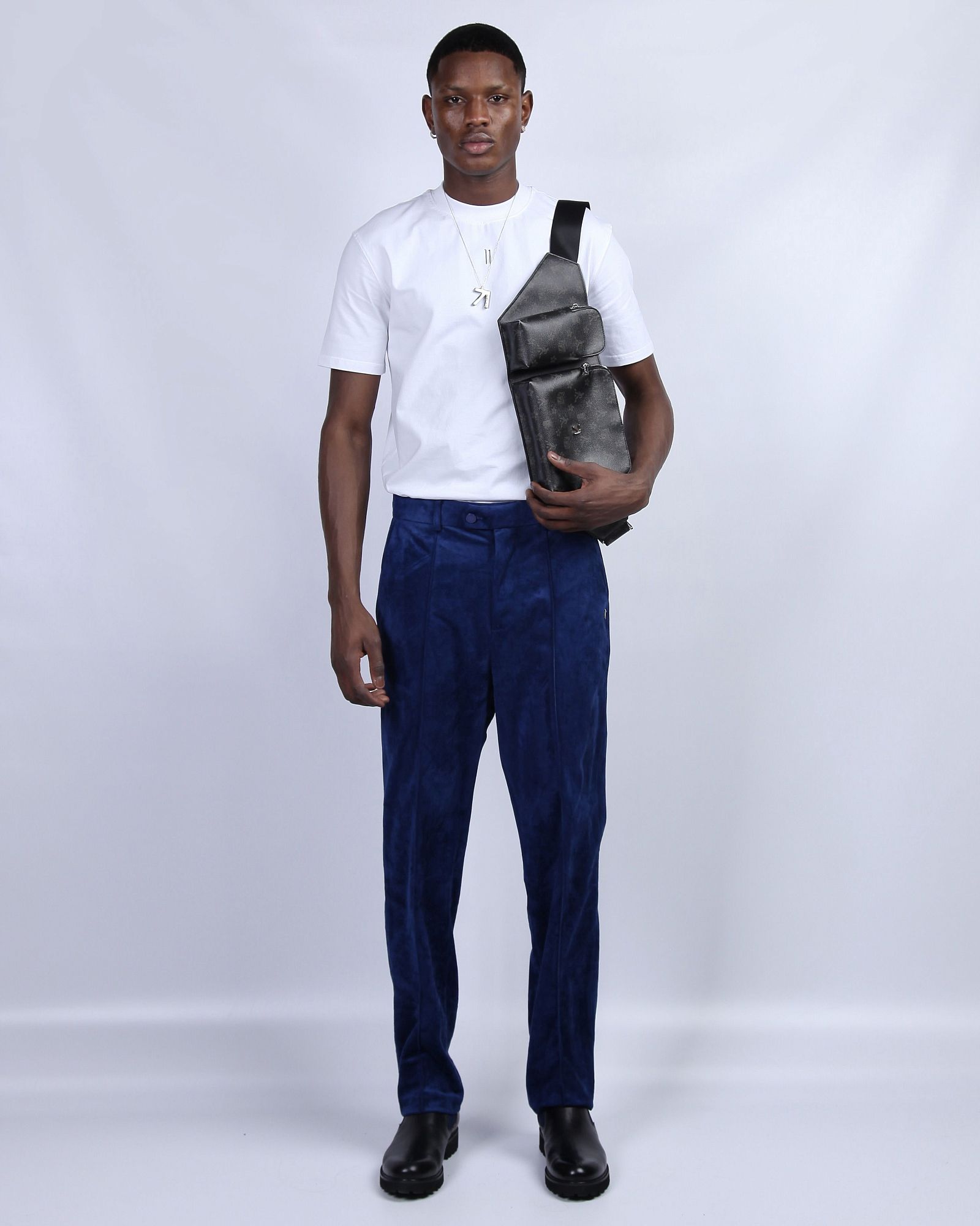Брюки из классической коллекции с прямым кроем, выполненные из плотного велюра для максимального комфорта. Модель дополнена декоративными швами по передней части вдоль штанины, что придаёт ей стильный вид. Брендированная стальная стрелка расположена у левого кармана, добавляя изысканный акцент.