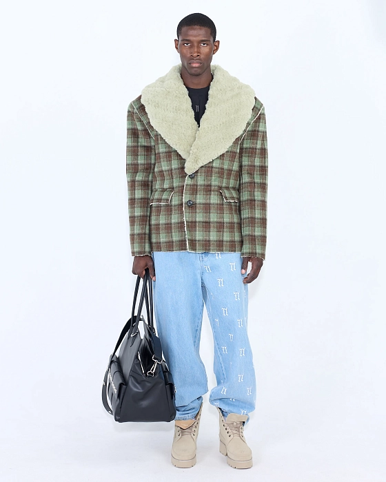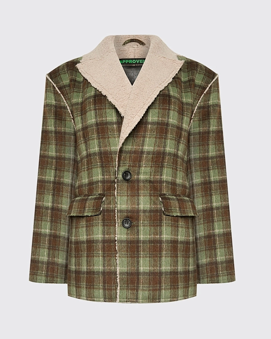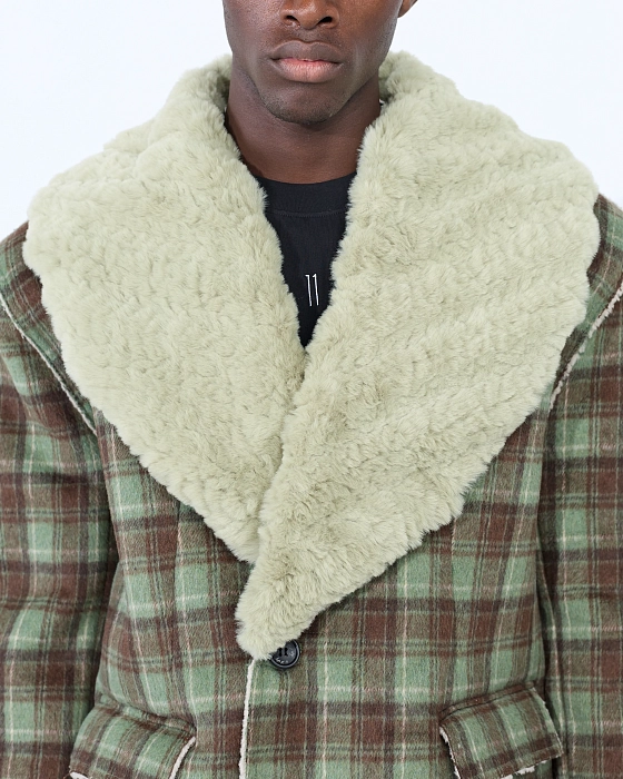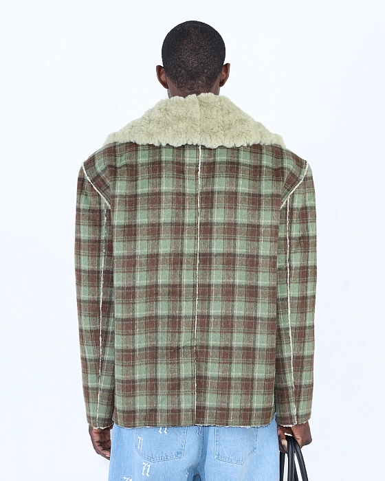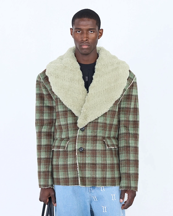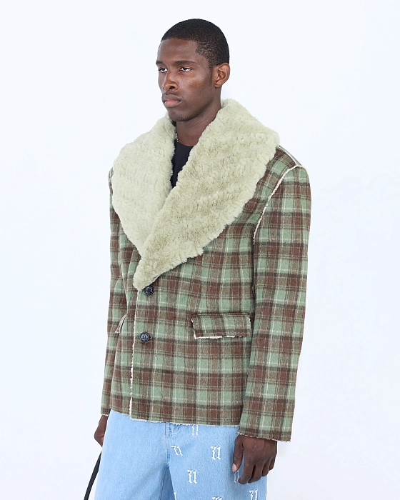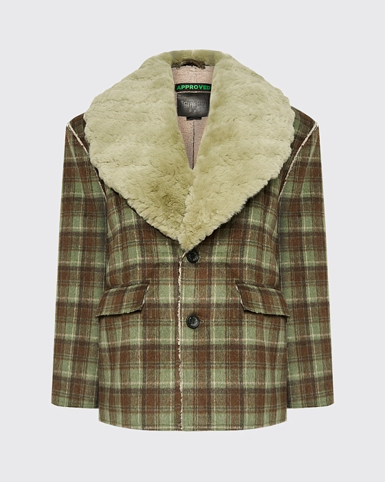 ПАЛЬТО-ЖАКЕТ С МЕХОВЫМ ВОРОТНИКОМ PLAID GREEN