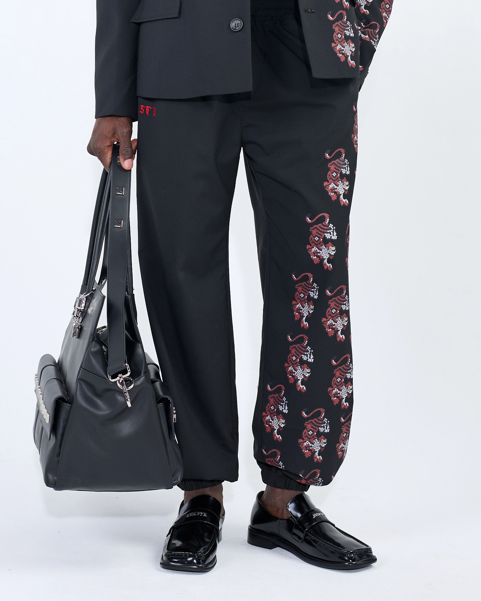 ОДНОБОРОТНЫЙ ПИДЖАК КЛАССИЧЕСКОГО КРОЯ С ЛАЦКАНАМИ И ПРОРЕЗНЫМИ КАРМАНАМИ. ГРАФИЧНАЯ ЛИНИЯ ПЛЕЧ СОЗДАЕТ ОЧЕРЧЕННУЮ ФОРМУ ИЗДЕЛИЯ И ФОРМИРУЕТ КРАСИВУЮ ПОСАДКУ. НА ЛЕВОЙ СТОРОНЕ ИЗДЕЛИЯ НАНЕСЕНА ПРИНТ TIGERS – УЗНАВАЕМЫЙ СИМВОЛ БРЕНДА. РЕКОМЕНДУЕМ СОЧЕТАТЬ С БРЮКАМИ ОТ КОМПЛЕКТА И КЛАССИЧЕСКОЙ ОБУВЬЮ."