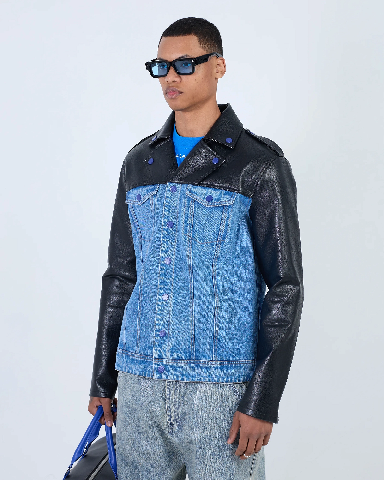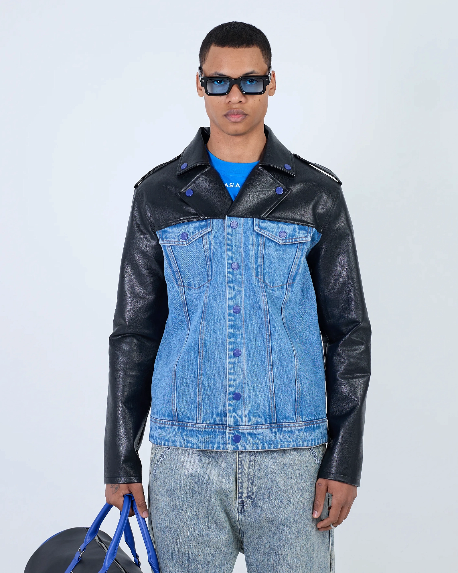 ДЖИНСОВКА CONTRAST ECO LEATHER BLUE