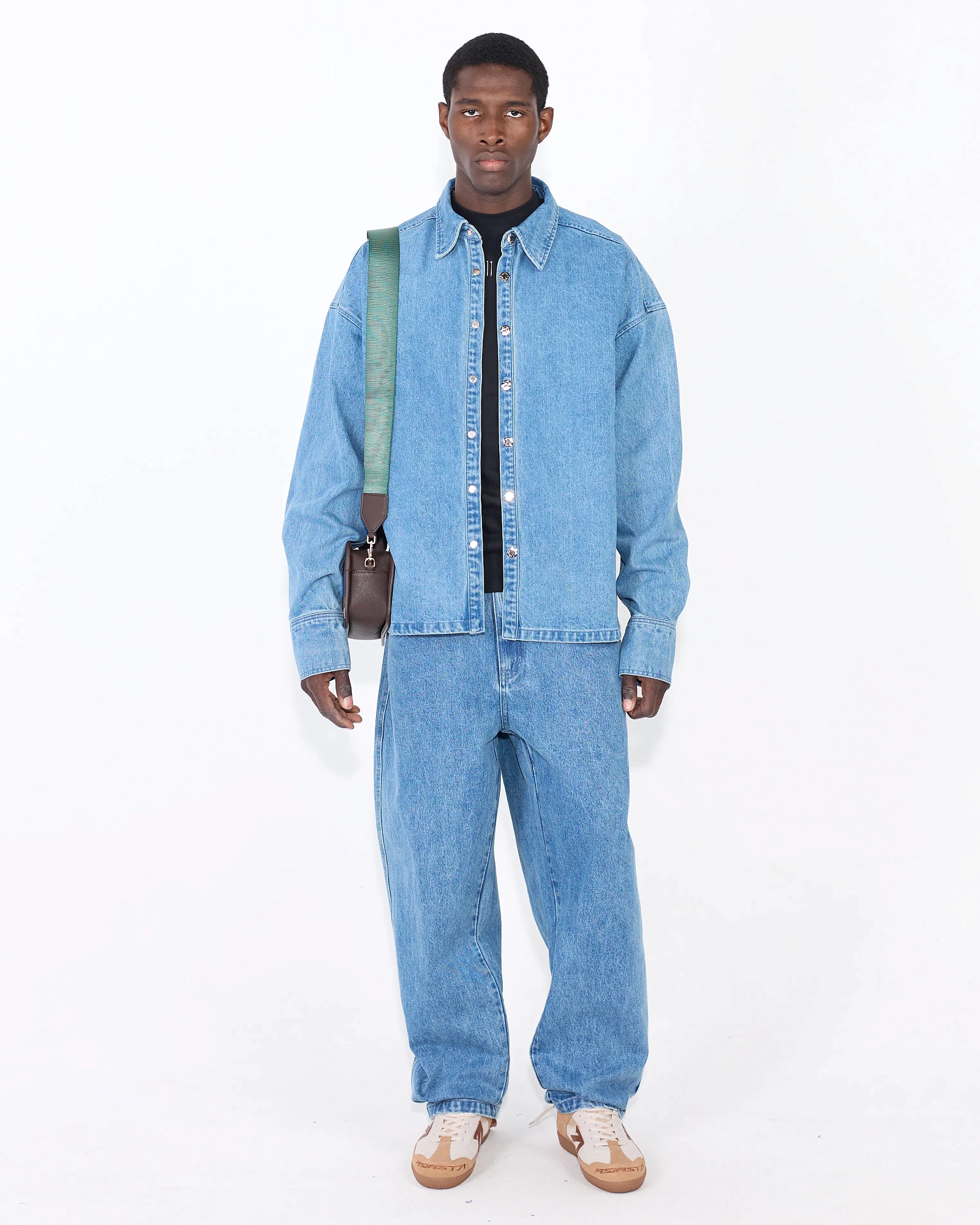 С ЛЁГКИМ ЭФФЕКТОМ ВИНТАЖНОЙ ВЫВАРКИ. ШИРОКИЙ ОБЪЁМ ПО ВСЕЙ ДЛИНЕ СОЗДАЮТ РАССЛАБЛЕННЫЙ СИЛУЭТ, ДЕРЖАЩИЙ ФОРМУ. НИЗ ДОПОЛНЕН КОЖАНОЙ «ПЯТОЧКОЙ» ПО ПРАВОЙ БРЮЧИНЕ — ДЕТАЛЬ ЗАЩИЩАЕТ КРАЙ ОТ ПРОТИРАНИЯ КАБЛУКОМ И РАБОТАЕТ КАК АКЦЕНТ.