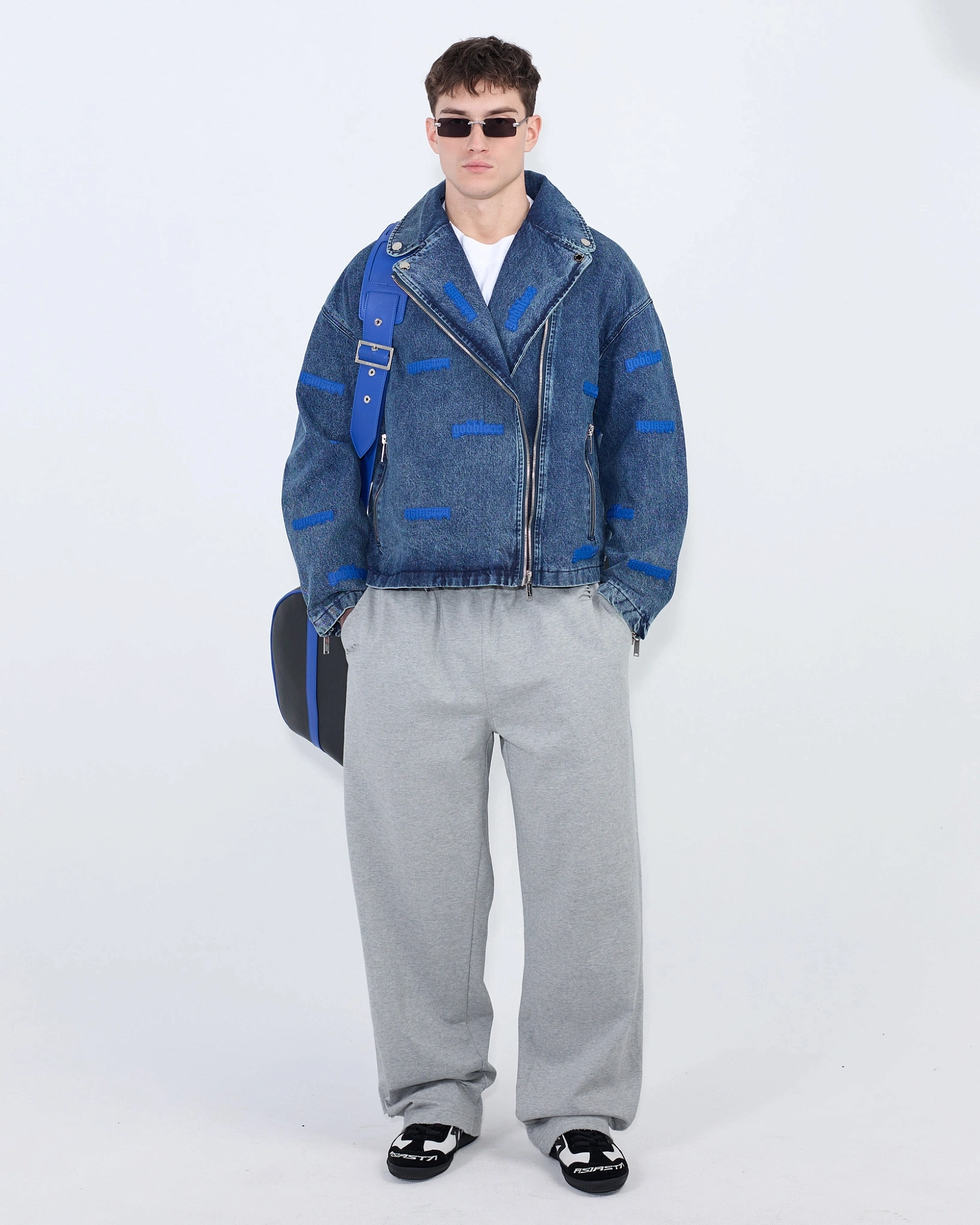 КОМБИНИРОВАННАЯ ОЛИМПИЙКА ИЗ НЕЙЛОНА И ТРИКОТАЖА – АКЦЕНТНЫЙ ВЕРХ В ВЕСЕННЕМ ГАРДЕРОБЕ. ОДНА ЧАСТЬ ИЗДЕЛИЯ ВЫПОЛНЕНА ИЗ ИЗ ИЗНОСОСТОЙКОГО НЕЙЛОНА И ОКРАШЕНА В ГОЛУБОЙ ГРАДИЕНТ. ВТОРАЯ – ИЗ ПЛОТНОГО ХЛОПКА СЕРОГО ОТТЕНКА. НА ЛИЦЕВОЙ ЧАСТИ МЕТАЛЛИЧЕСКАЯ МОЛНИЯ И КРУПНЫЙ ЛОГОТИП-СТРЕЛКА. ПО КРАЮ ИЗДЕЛИЯ И НА РУКАВАХ ПЛОТНЫЕ МАНЖЕТЫ.