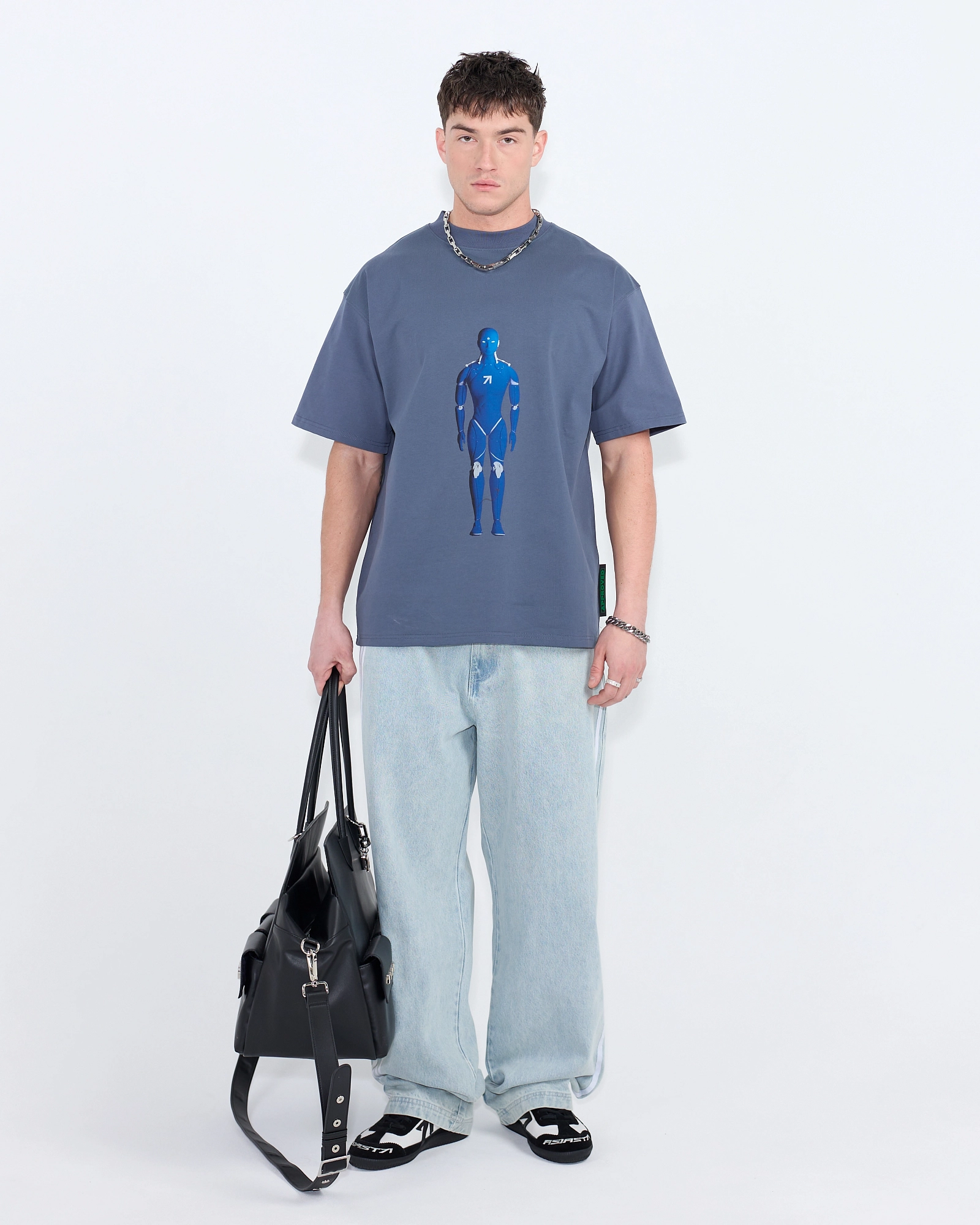 ДЖИНСЫ КЛАССИЧЕСКОГО СИЛУЭТА, ОТСЫЛАЮЩИЕ К СПОРТИВНОЙ ЭСТЕТИКЕ БЛАГОДАРЯ ДЕКОРАТИВНЫМ ЭЛЕМЕНТАМ. ПРАВИЛЬНАЯ ГОЛУБАЯ ДЖИНСА ДОПОЛНЕНА АССИМЕТРИЧНЫМИ ЛАМПАСАМИ. ПОЛНАЯ ДЛИНА И ВЫСОКАЯ ПОДСАДКА ПОЗВОЛЯЮТ НОСИТЬ ИХ КАК С КРОССОВКАМИ, ТАК И С ОБУВЬЮ НА ВЫСОКОМ КАБЛУКЕ, СОЗДАВАЯ ОБРАЗЫ В ДУХЕ SPORT CHIC.