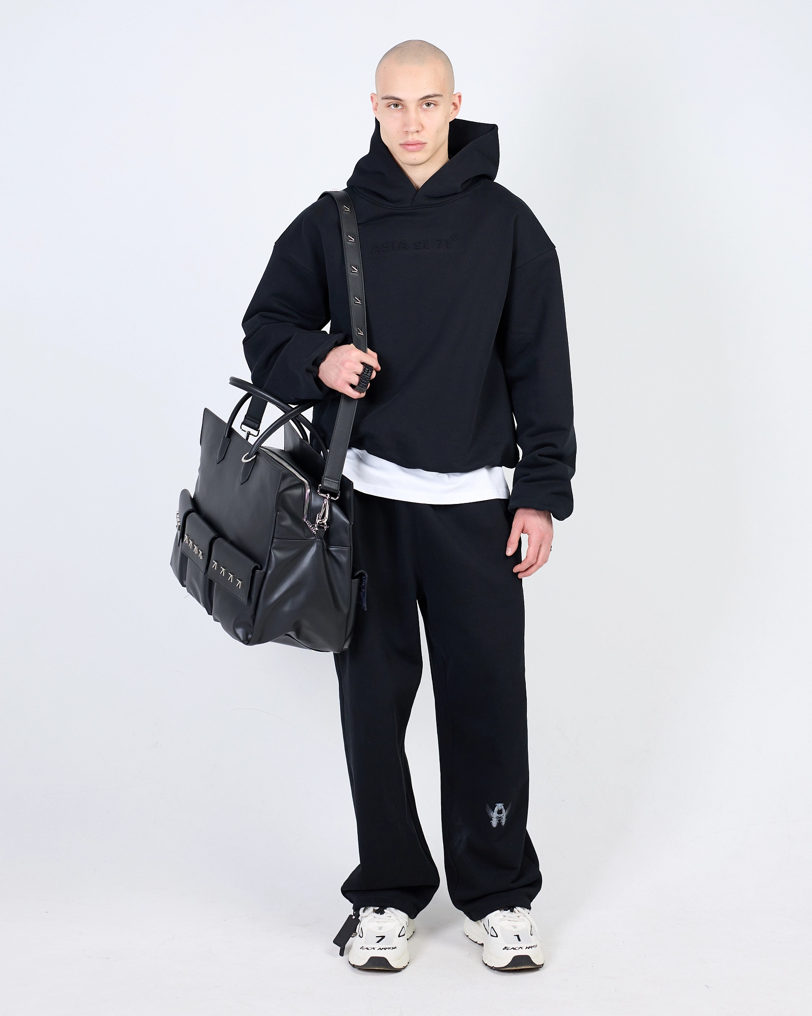 ХУДИ EMBOSSED С БЕЛЫМИ ВСТАВКАМИ BLACK