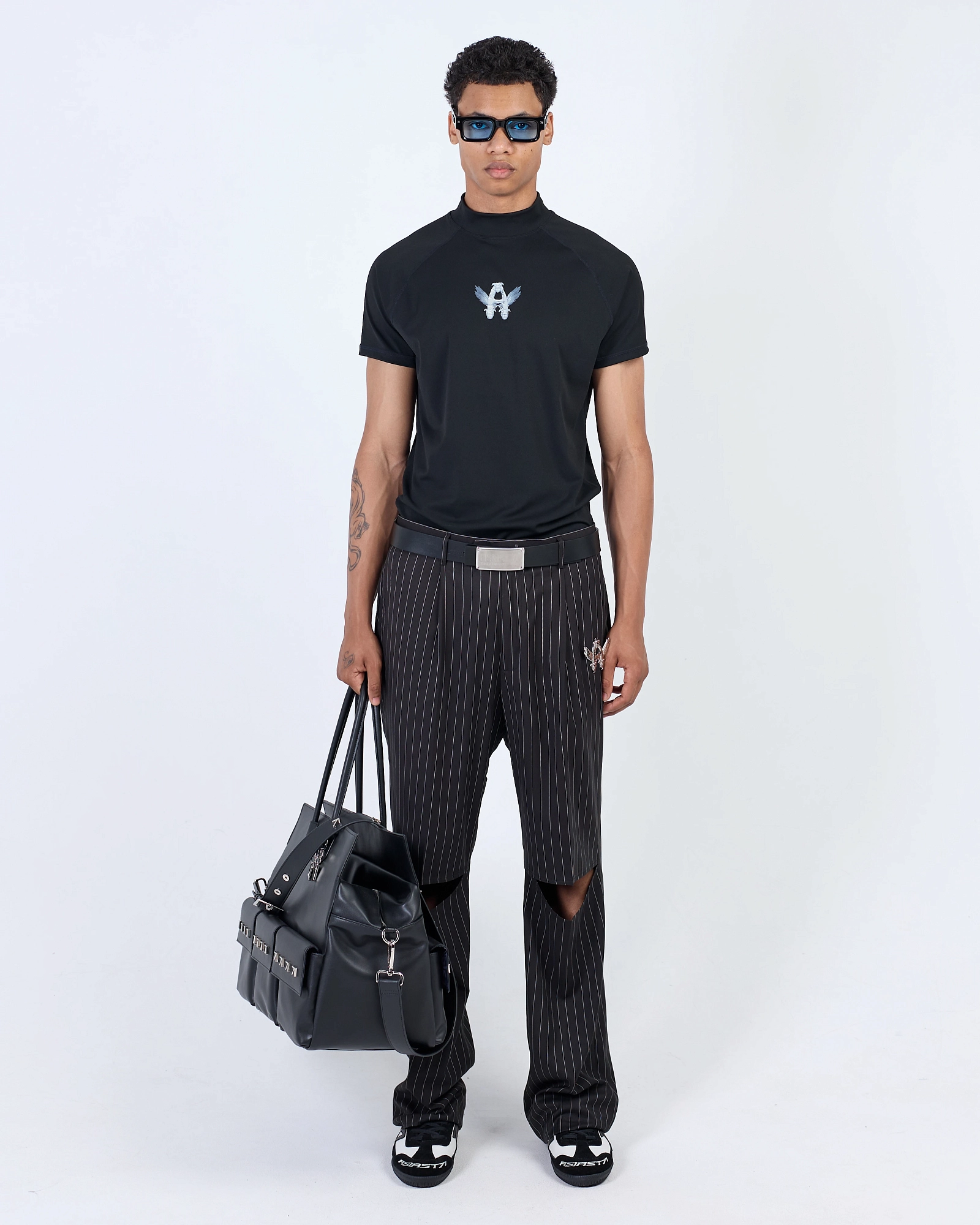 БОМБЕР ИЗ ПЛОТНОЙ ФАКТУРНОЙ КОЖИ С РАССЛАБЛЕННОЙ ПОСАДКОЙ. КОНТРАСТНЫЕ ПОЛОСЫ ВДОЛЬ РУКАВОВ ЗАДАЮТ СПОРТИВНЫЙ СТИЛЬ, МЕТАЛЛИЧЕСКАЯ МОЛНИЯ ПО ЦЕНТРУ И ЭЛАСТИЧНЫЕ МАНЖЕТЫ ФИКСИРУЮТ ФОРМУ. ПАРА БОКОВЫХ КАРМАНОВ, АККУРАТНАЯ ПОДКЛАДКА, ЧИСТАЯ ОБРАБОТКА ШВОВ. РАБОТАЕТ В TOTAL BLACK ОБРАЗАХ И В МИКСЕ СО СВИТШОТОМ, ДЖОГГЕРАМИ ИЛИ ДЕНИМОМ."