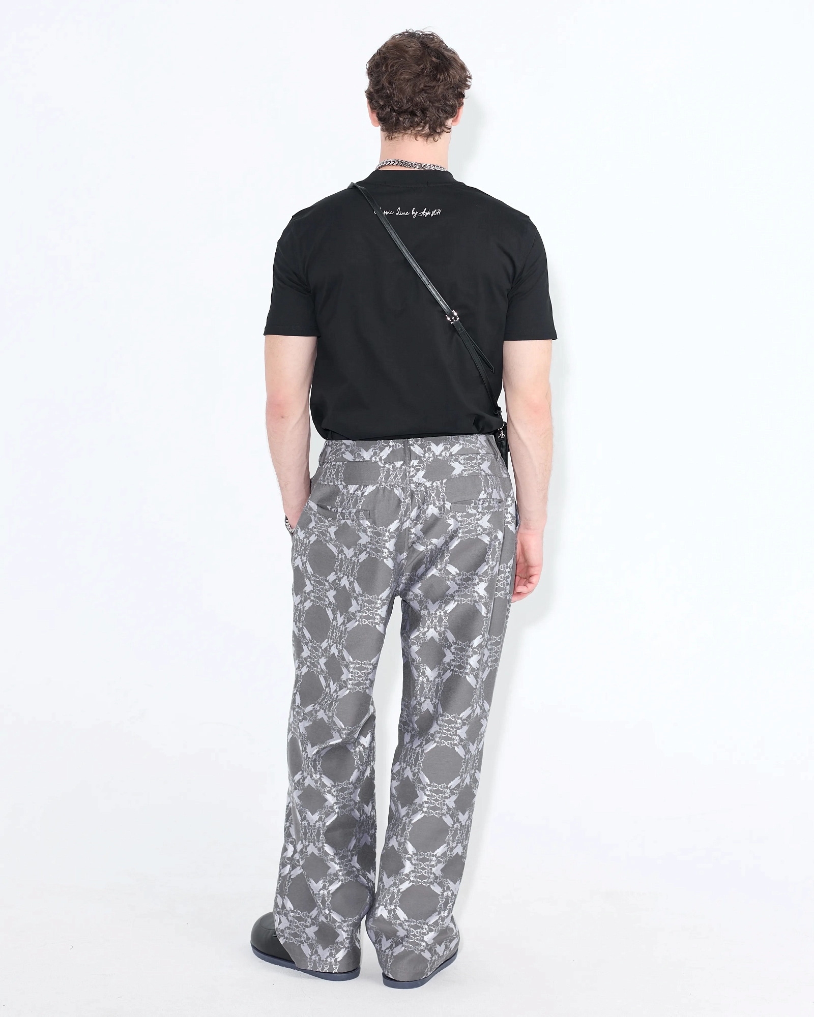 ЦЕПЬ ИЗ ПРОЧНОЙ НЕРЖАВЕЮЩЕЙ СТАЛИ, СОЕДИНЁННЫЙ ИЗ МАССИВНЫХ ГЕОМЕТРИЧЕСКИХ ЗВЕНЬЕВ. КАЖДОЕ ЗВЕНО УКРАШЕНО АККУРАТНОЙ ЛАЗЕРНОЙ ГРАВИРОВКОЙ С БРЕНДИРОВАННЫМИ СИМВОЛАМИ.