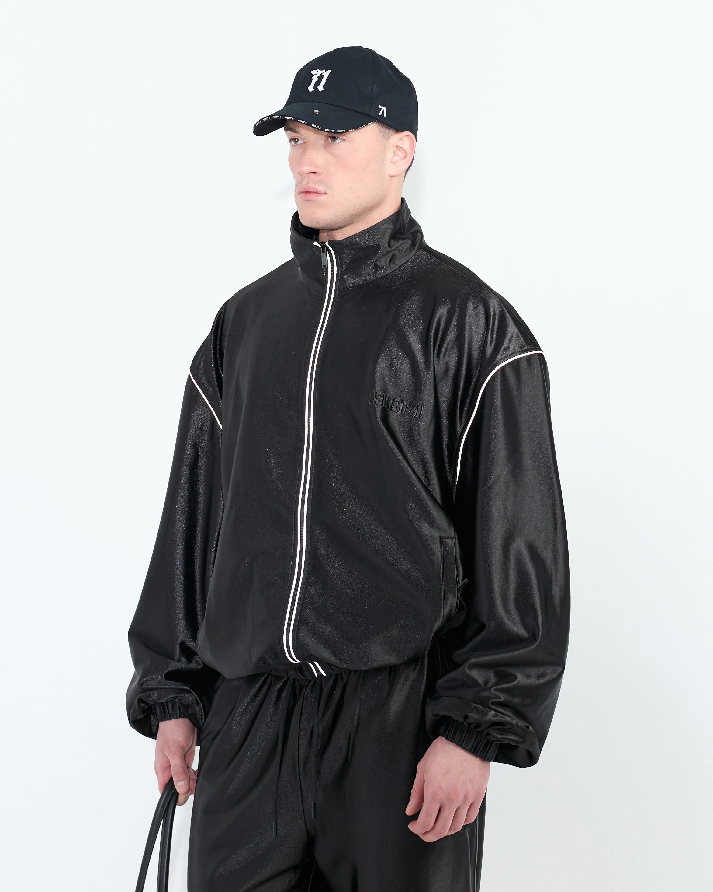 string(831) "Олимпийка из велюра свободного силуэта. Выполнена из плотного хлопкового велюра с мягкой текстурой и матовым эффектом. Прямой крой, спущенная линия плеча. Высокий воротник-стойка. Центральная застёжка на металлическую молнию с двусторонним бегунком. Длинные рукава с контрастными лампасами. Боковые прорезные карманы. Низ изделия и манжеты оформлены эластичной резинкой. Подходит для многослойных образов и повседневной носки с брюками из комплекта."