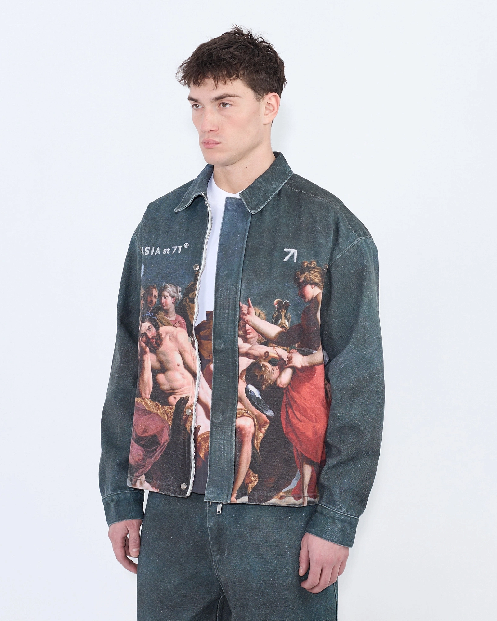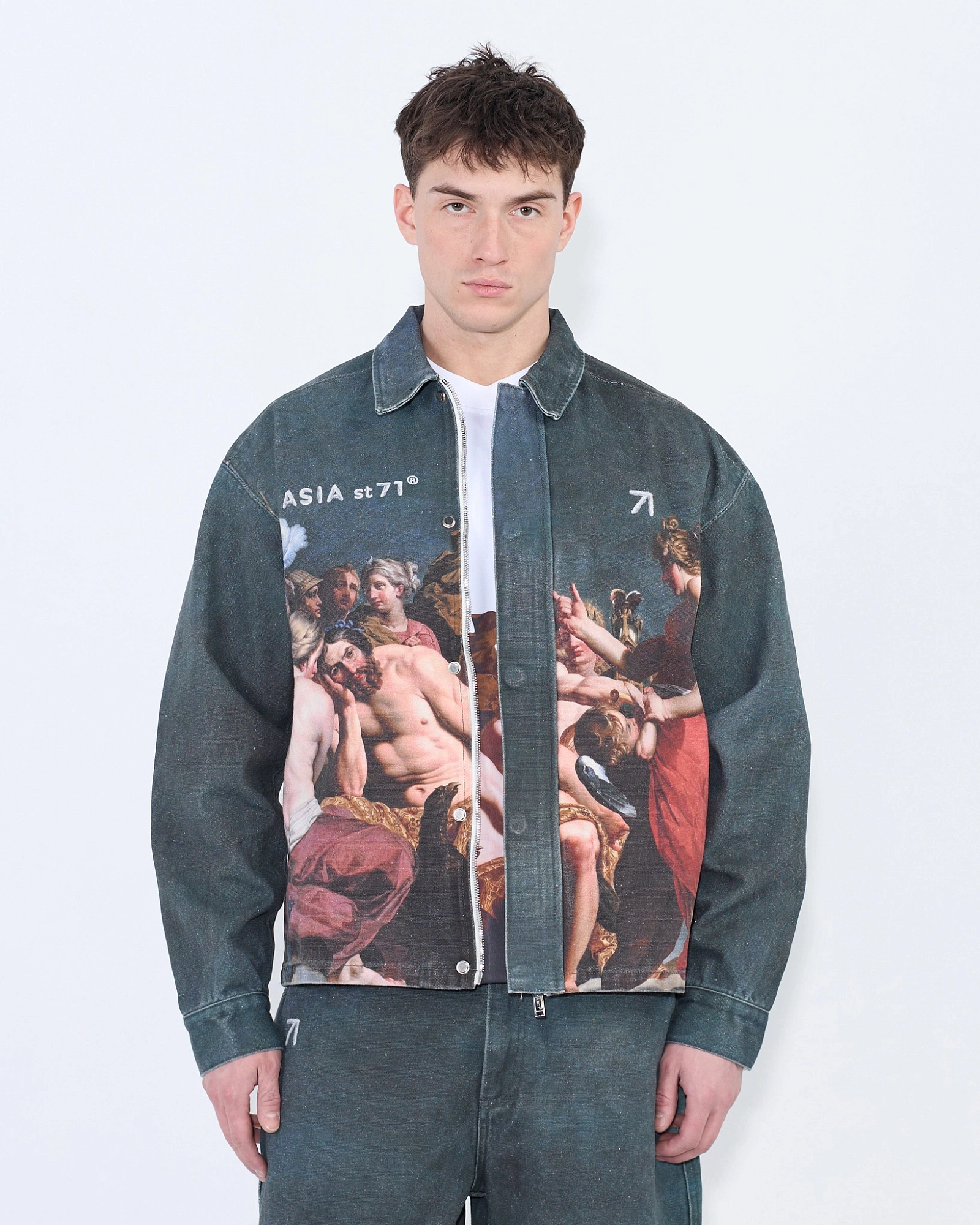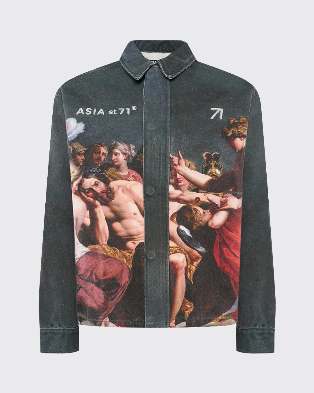 Модель дополнена принтом с репродукцией работы Абрахам Янсенс, что придаёт изделию выразительный арт-акцент и делает его ключевым элементом образа.