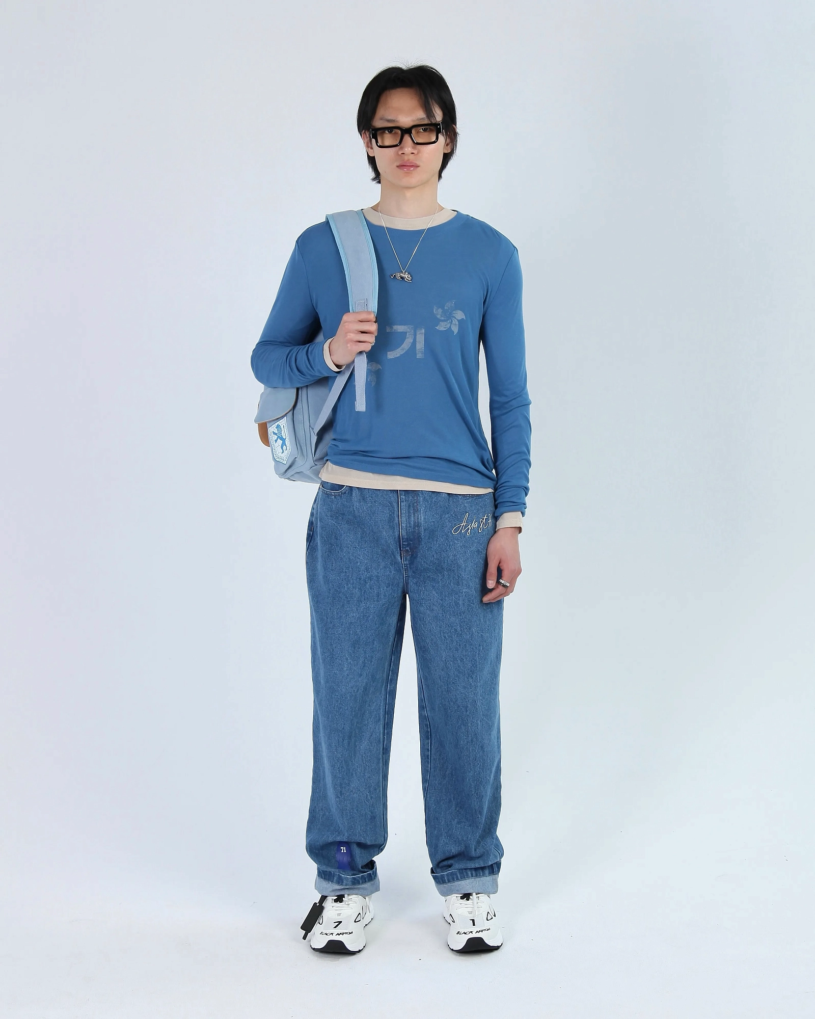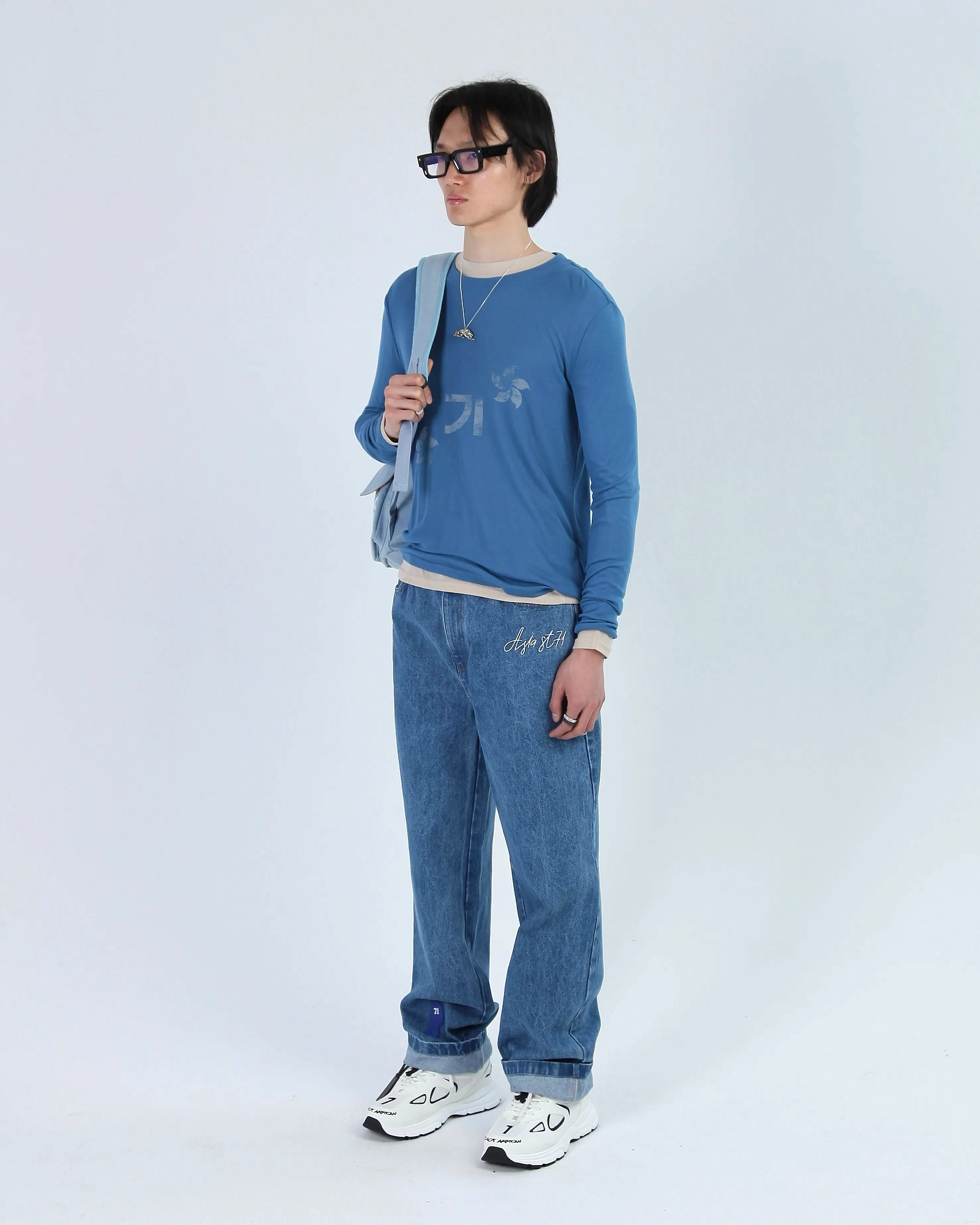 ДЖИНСЫ ПРЯМОГО СВОБОДНОГО КРОЯ ВЫПОЛНЕНЫ В КЛАССИЧЕСКОМ ГОЛУБОМ ОТТЕНКЕ ИЗ ПЛОТНОГО ДЕНИМА, КОТОРЫЙ ДЕРЖИТ ФОРМУ. АКЦЕНТНЫЙ V-ОБРАЗНЫЙ ВЫРЕЗ НА ПОЯСЕ И ЦЕПОЧКА С ЛОГО ASIA ST 71 ПОДЧЕРКНЕТ ЖЕНСКУЮ ФИГУРУ. БРЕНДИРОВАННАЯ СТАЛЬНАЯ ФУРНИТУРА И КОНТРАСТНЫЕ ОРАНЖЕВЫЕ СТРОЧКИ НА ШВАХ. МЫ РЕКОМЕНДУЕМ СОЧЕТАТЬ ДЖИНСЫ С УКОРОЧЕННЫМИ ТОПАМИ И ФУТБОЛКАМИ, А ПРИ ПРОХЛАДНОЙ ПОГОДЕ НАКИНУТЬ НА ПЛЕЧИ ПИДЖАК ИЛИ БОМБЕР. "