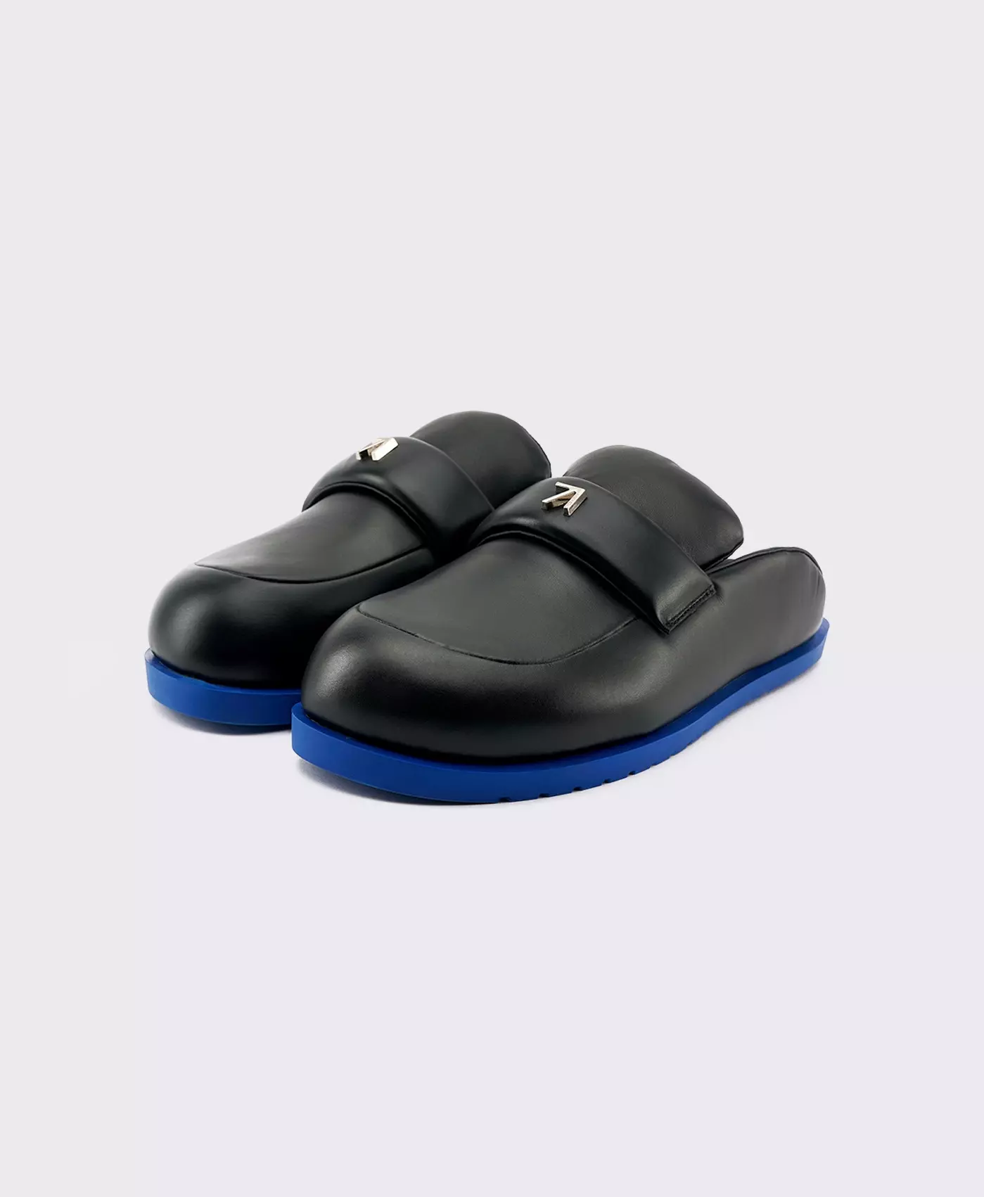 Мюли выполнены из качественной эко-кожи. Объемная трендовая модель с комфортной прорезиненной подошвой с контрастной синей линией. Минималистичный брендинг: стальная фирменная стрелка. Широкий размерный ряд позволяет собрать парный образ. Базовая пара станет отличным дополнением в повседневных образах.