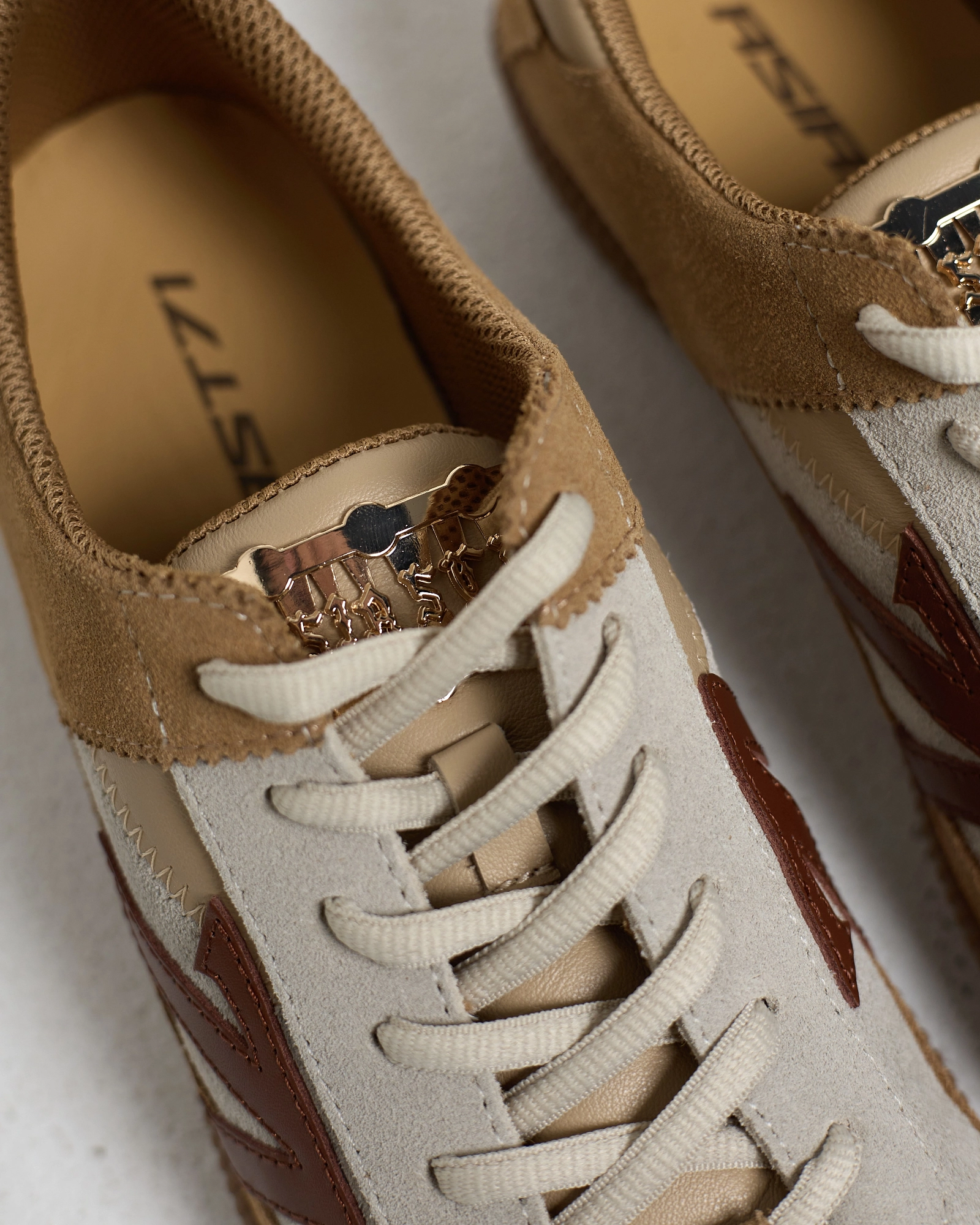 ЗАМШИ И КОЖИ. ВНУТРИ ПОДКЛАДКА СЕТКОЙ И СТЕЛЬКА ИЗ НЕЖНОЙ ОВЕЧЬЕЙ КОЖИ. ОСОБОЕ ВНИМАНИЕ УДЕЛЕНО ДЕТАЛЯМ: КОНТРАСТНАЯ СТРЕЛКА ИЗ КОЖИ, ВЫШИВКА НА МЫСКЕ И ПЯТКЕ, А ТАКЖЕ МЕТАЛЛИЧЕСКИЙ БРЕНДИРОВАННЫЙ ЭЛЕМЕНТ НА ЯЗЫЧКЕ. АКЦЕНТНАЯ ПАРА, КОТОРАЯ ПОДОЙДЕТ К КЭЖУАЛ ОБРАЗАМ.