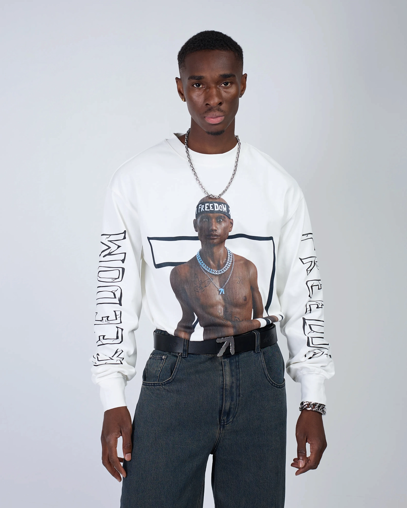 ФУТБОЛКА ИЗ ПЛОТНОГО 100% ХЛОПКА, ДЕРЖИТ ФОРМУ, СВОБОДНЫЙ КРОЙ, СПУЩЕННОЕ ПЛЕЧО СОЗДАЕТ ЭФФЕКТ OVERSIZE. МИНИМАЛИСТИЧНЫЙ ПРИНТ НАНЕСЕН ТЕРМОТРАНСФЕРНОЙ ПЕЧАТЬЮ, ИСПОЛЬЗУЕТСЯ ОБЪЕМНАЯ 3Д ВЫШИВКА. ПЛОТНОСТЬ ФУТБОЛКИ - 320 GR"