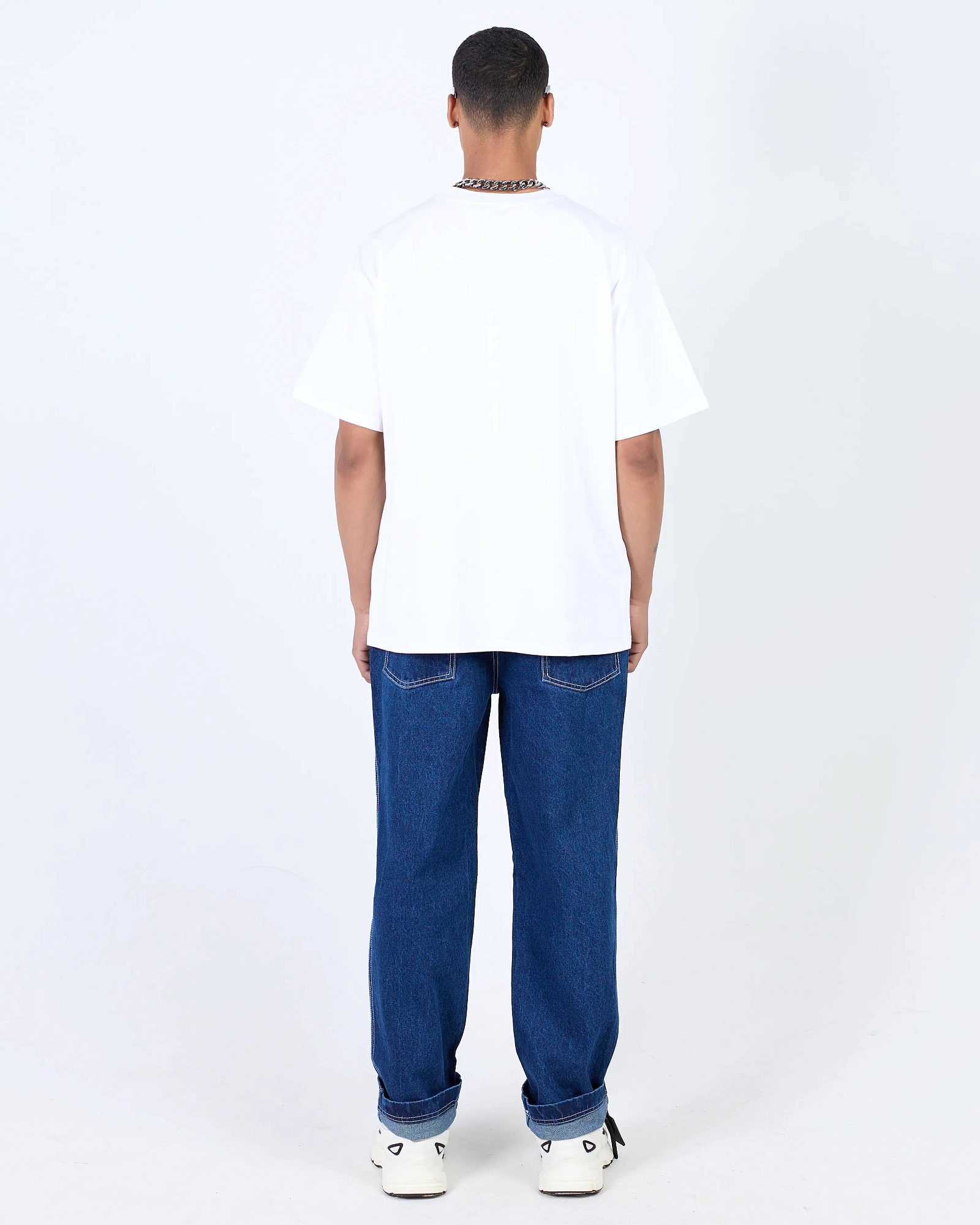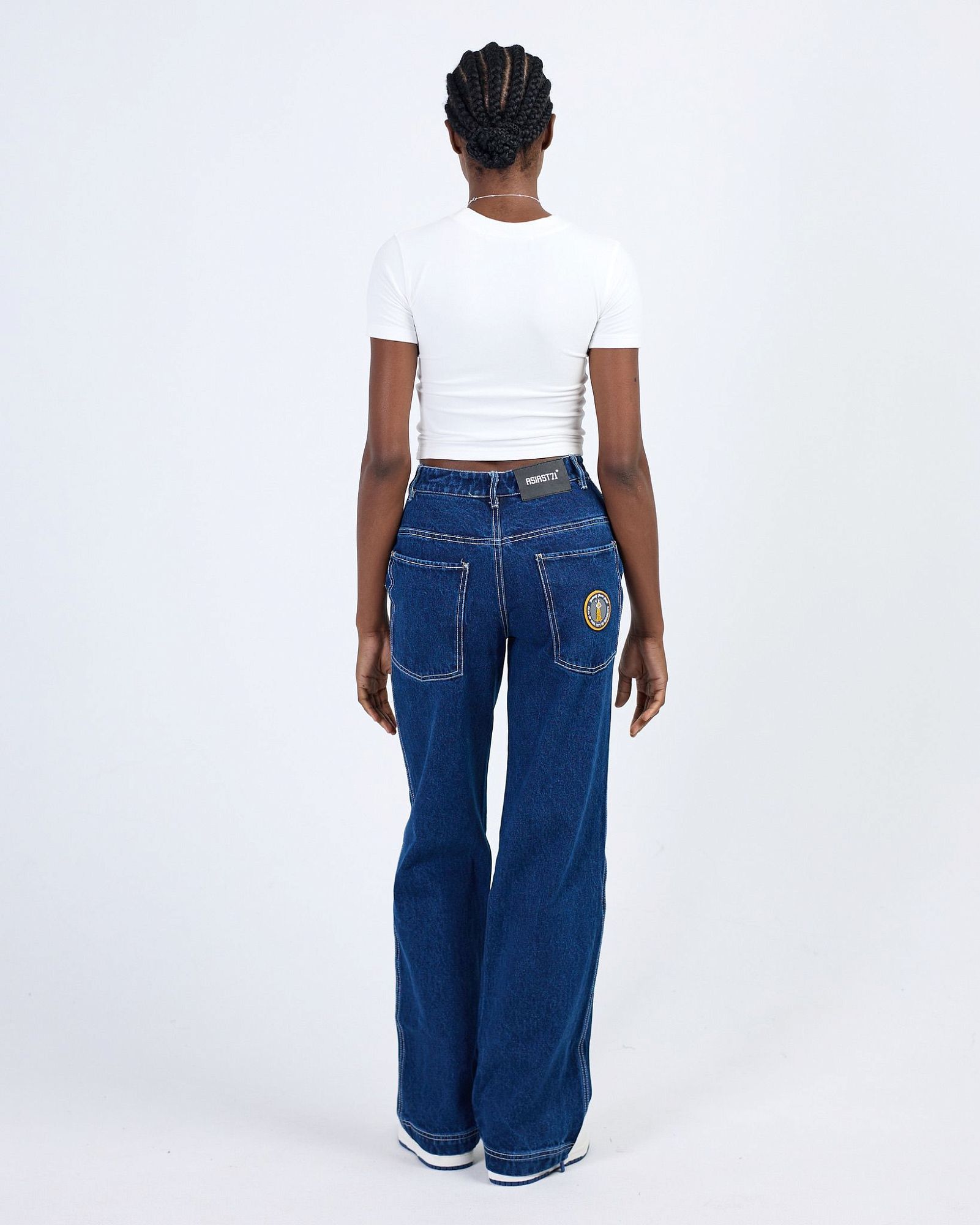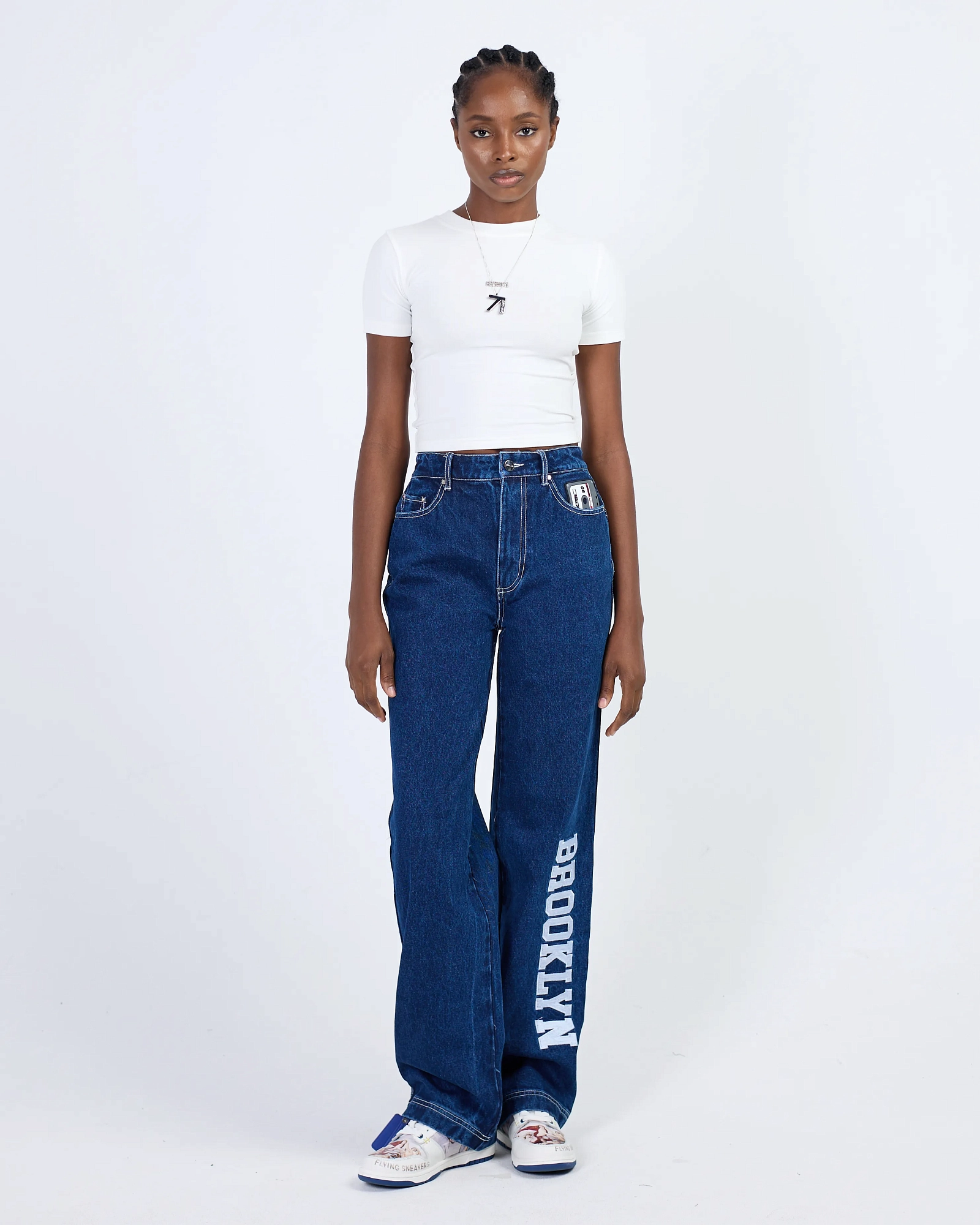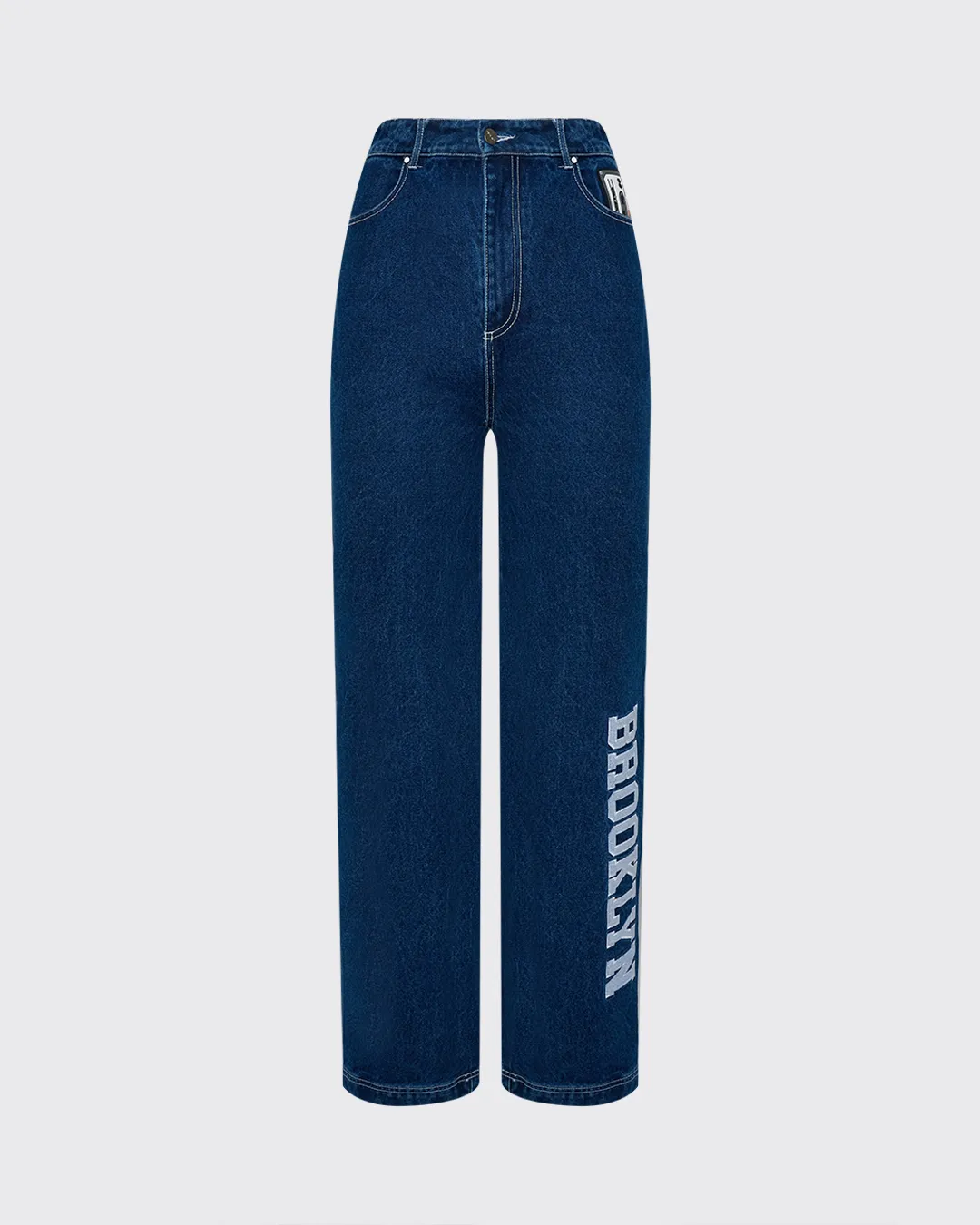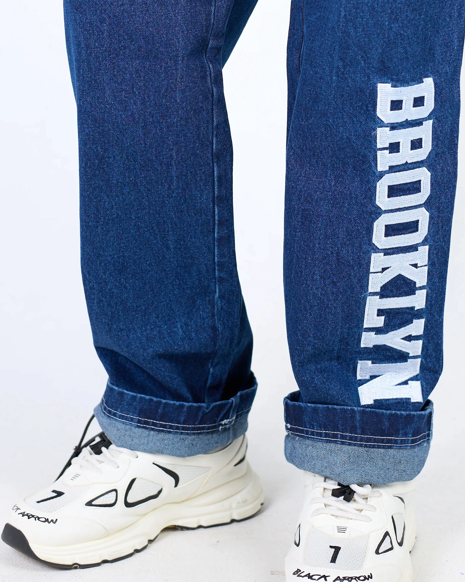 ПЛОТНОГО ДЕНИМА. КОНТРАСТНАЯ ВЫШИВКА НА ПОЯСЕ И БРЮЧИНЕ И БРЕНДИРОВАННАЯ СТРЕЛКА У ЛЕВОГО КАРМАНА. БАЗОВАЯ ПАРА - МАСТХЭВ В ВАШЕМ ГАРДЕРОБЕ. "