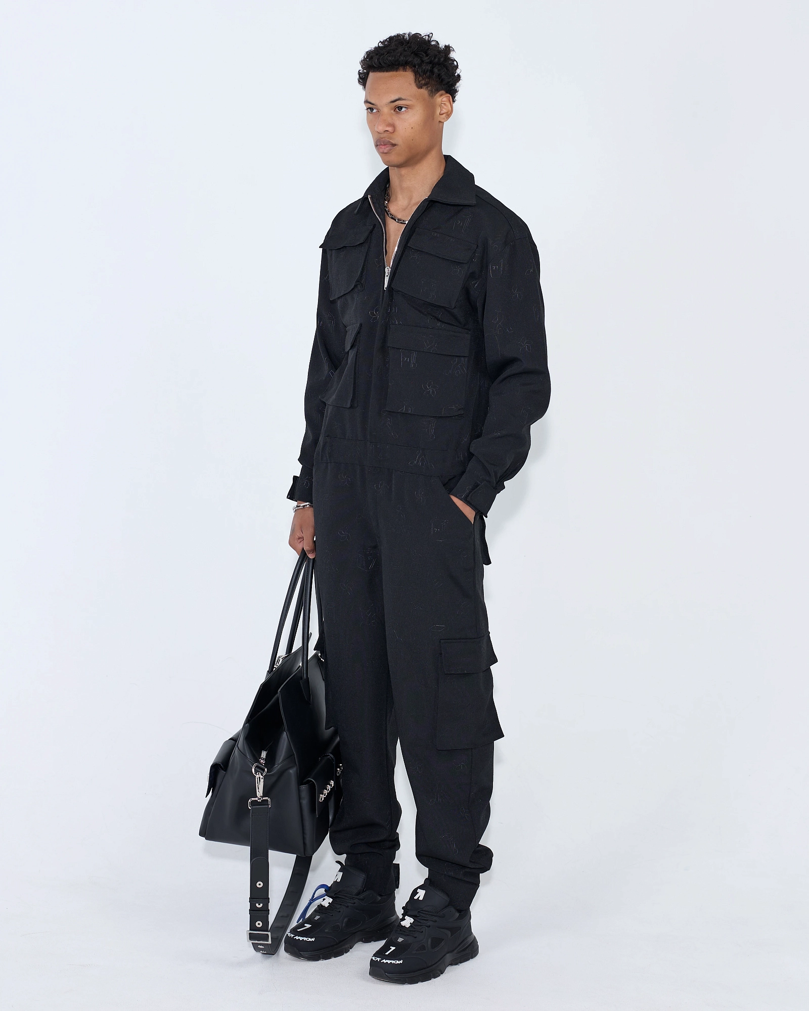 string(363) "Комбинезон из эко-кожи. Верхняя часть на кнопках легко отстёгивается, брюки прямого кроя оснащены кулиской с фиксаторами для индивидуальной посадки. Дополнен стальными брендированными фастексами."