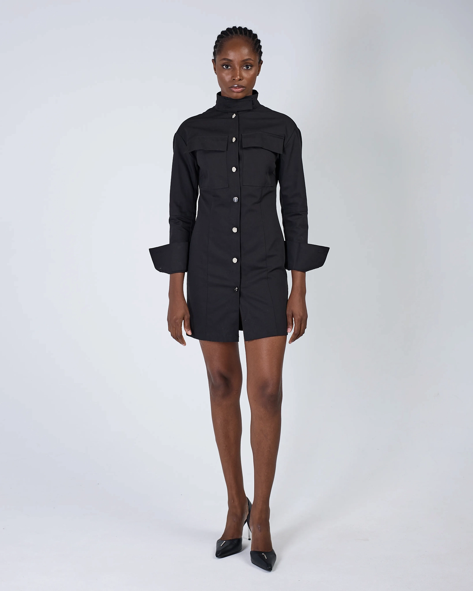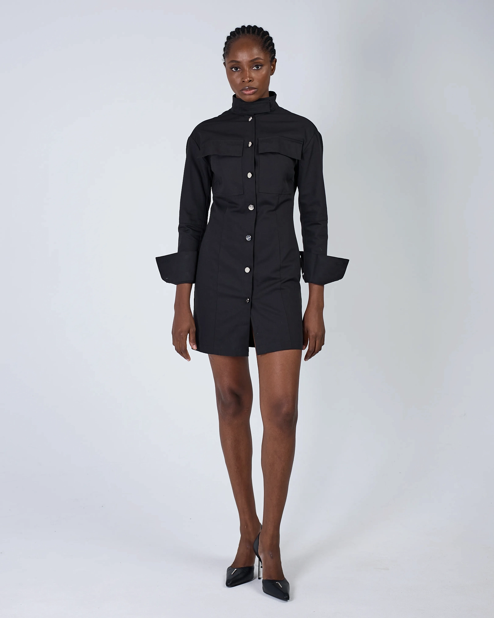 ЛЕГКОЕ ПЛАТЬЕ ЖАККАРДОВОЙ ВЯЗКИ С ВОРОТНИКОМ-СТОЙКОЙ