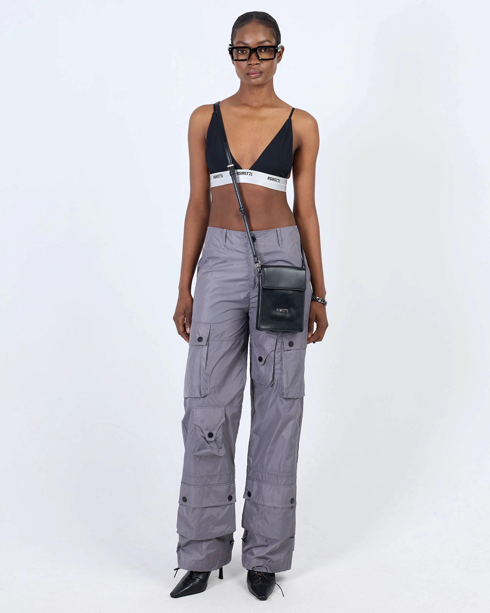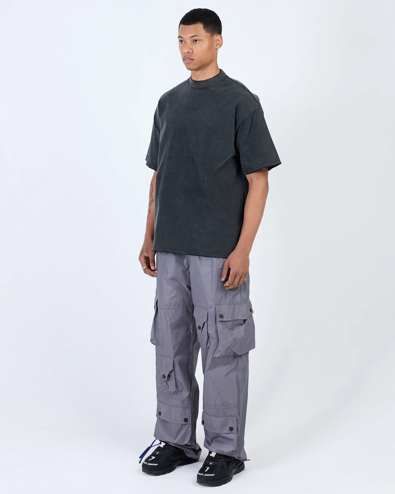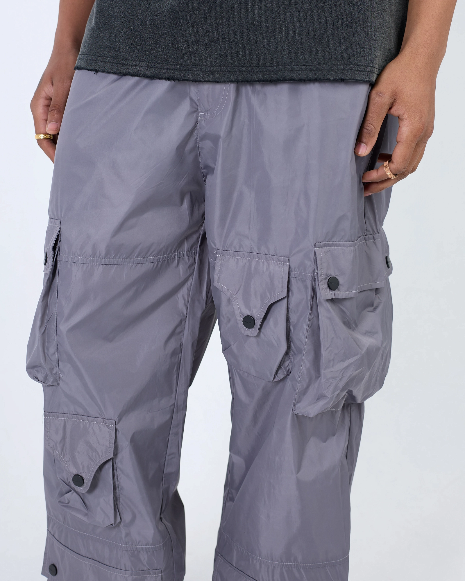 string(388) "Джоггеры свободного кроя из нейлона. Внизу брюк регулируемые паты для комфортной посадки. Присутствует брендированная стальная фурнитура с лаконичным дизайном. Объемные накладные карманы создают стильный вид."
