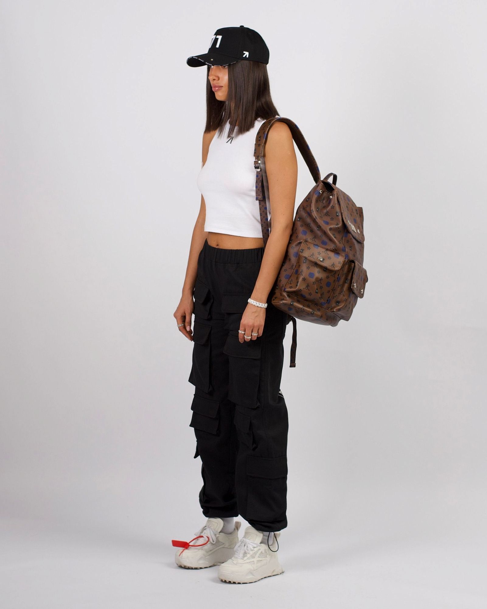 СОЧЕТАНИЕ КОЖИ, СЕТКИ И КОНТРАСТНОГО ПРИНТА ПРИДАЕТ ЕМУ АВАНГАРДНЫЙ ВИД, ДОПОЛНЕННЫЙ ФУНКЦИОНАЛЬНОСТЬЮ: БЛАГОДАРЯ ЛИПУЧКАМ, ФАСТЕКСАМ И КАРМАНАМ ОБЕСПЕЧИВАЕТСЯ УДОБСТВО И УНИВЕРСАЛЬНОСТЬ В НОСКЕ."