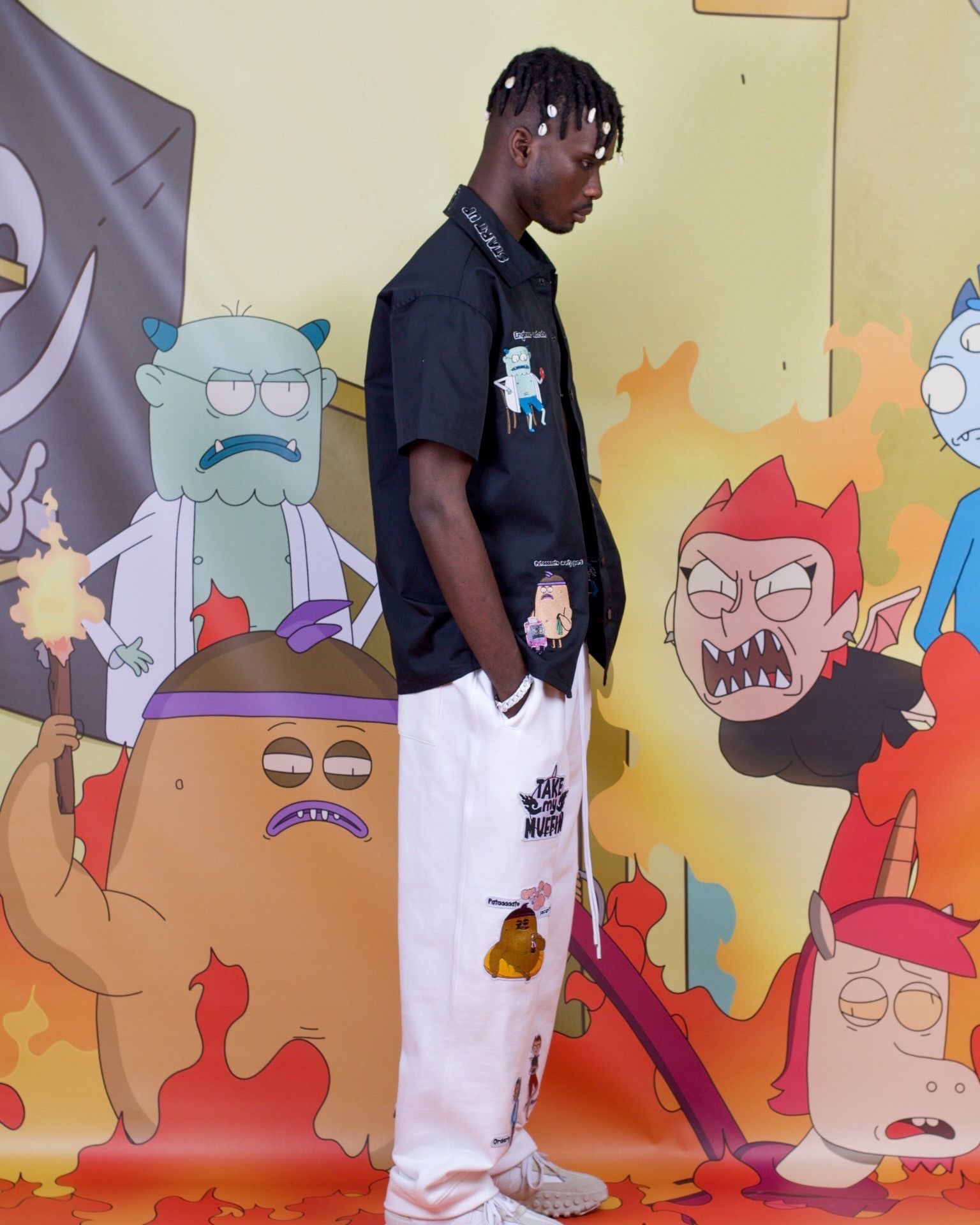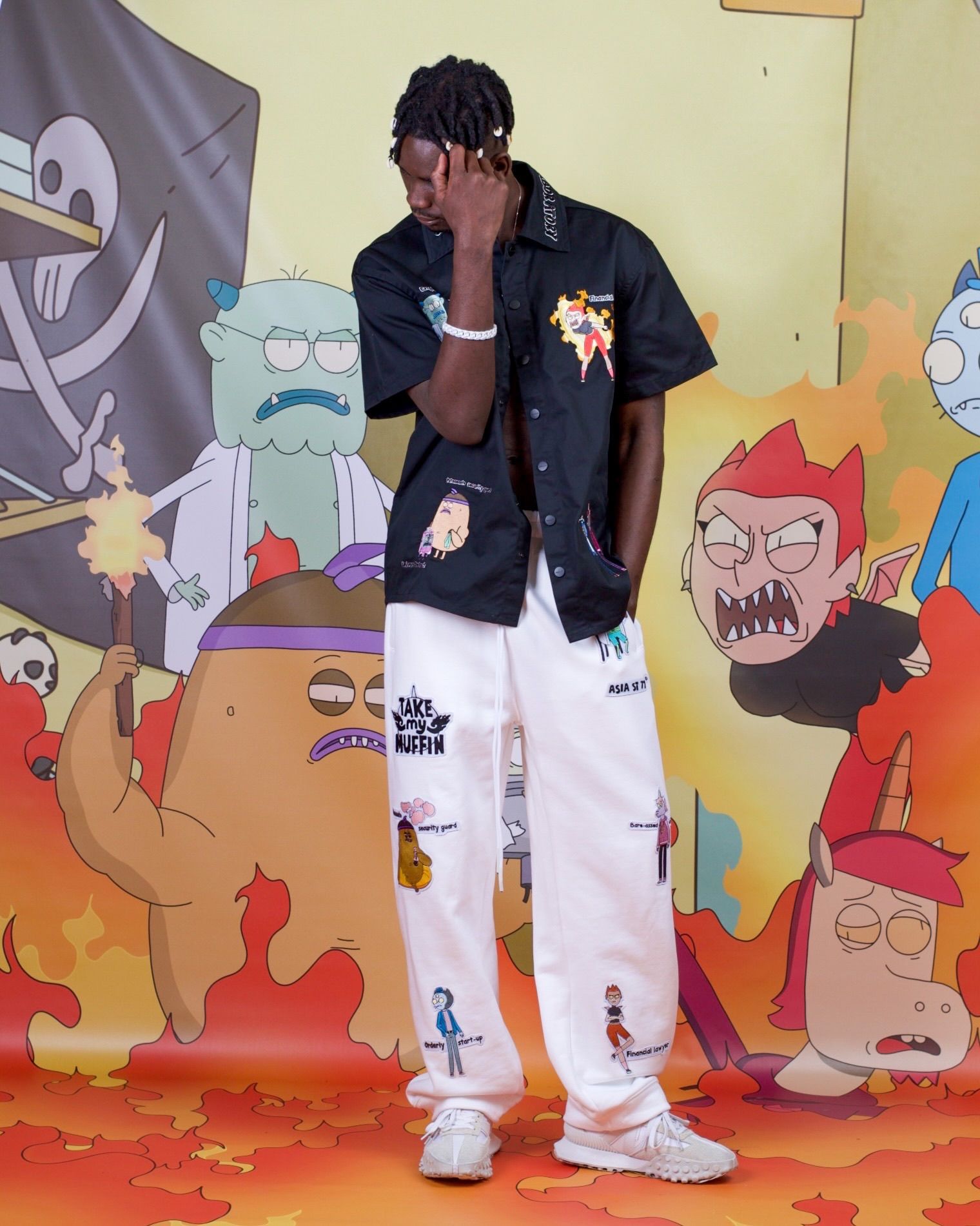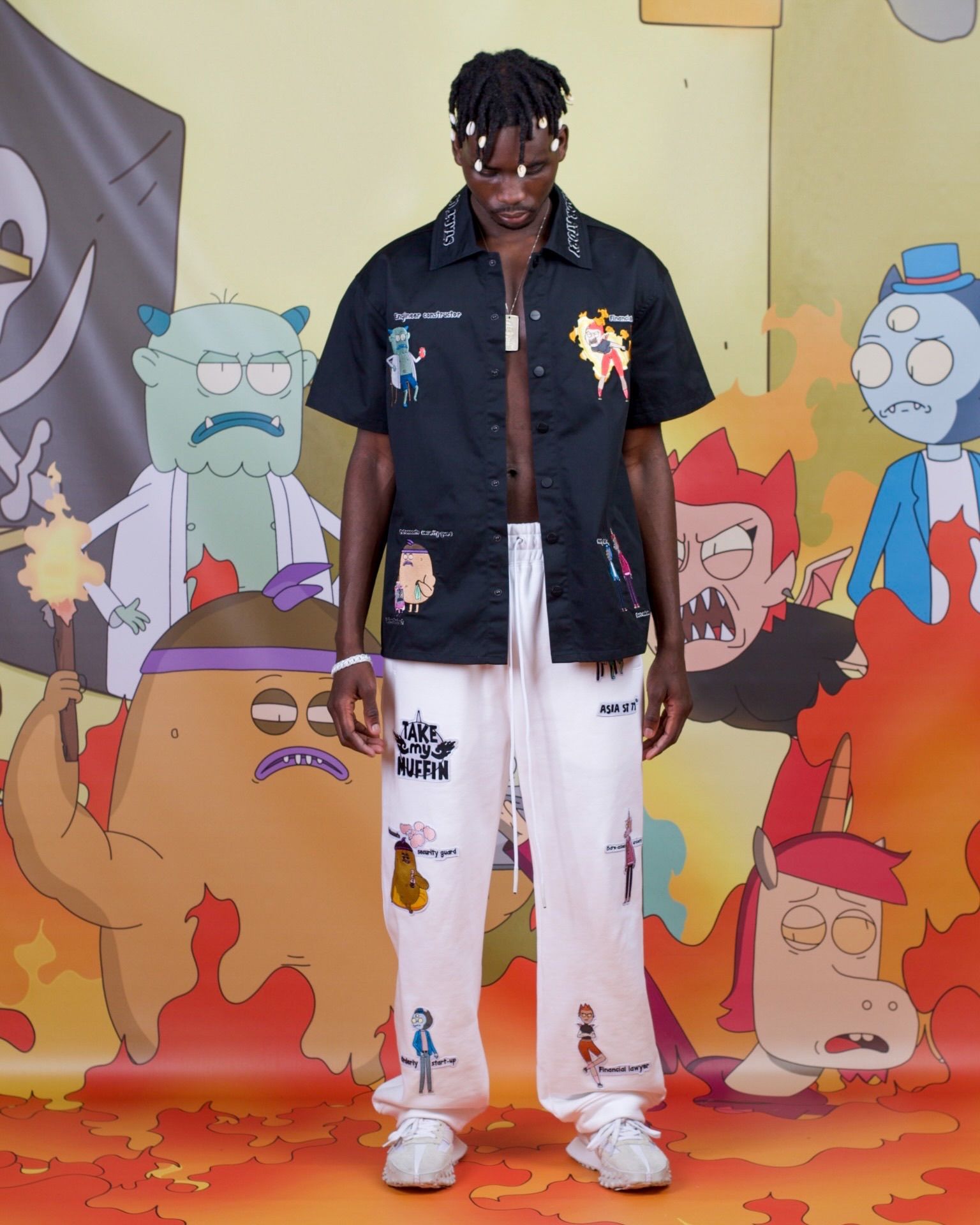 СВИТШОТ СВОБОДНОГО КРОЯ ИЗ ОФИЦИАЛЬНОЙ КОЛЛАБОРАЦИИ ASIA ST 71 Х TAKE MY MUFFIN. ВЫПОЛНЕН ИЗ ПЛОТНОГО ХЛОПКА, ДЕРЖИТ ФОРМУ. ЛОГОТИПЫ НАНЕСЕНЫ ВЫШИВКОЙ. СВИТШОТ ИМЕЕТ ФАКТУРНЫЙ ОБЪЕМ НА РУКАВАХ, ВЫПОЛНЕННЫЙ В ТЕХНИКЕ EMBOSSING И ИМИТИРУЮЩИЙ КОСТЮМ МАЙОРА ПЭЙНА. "