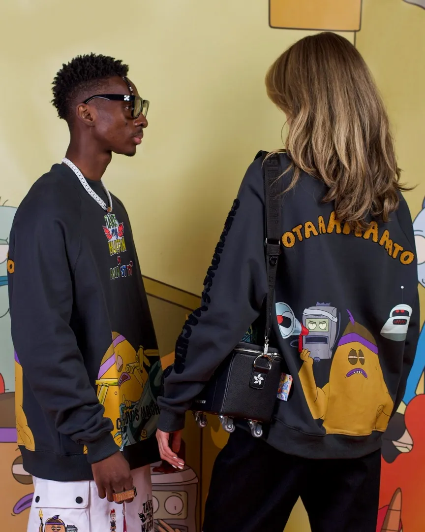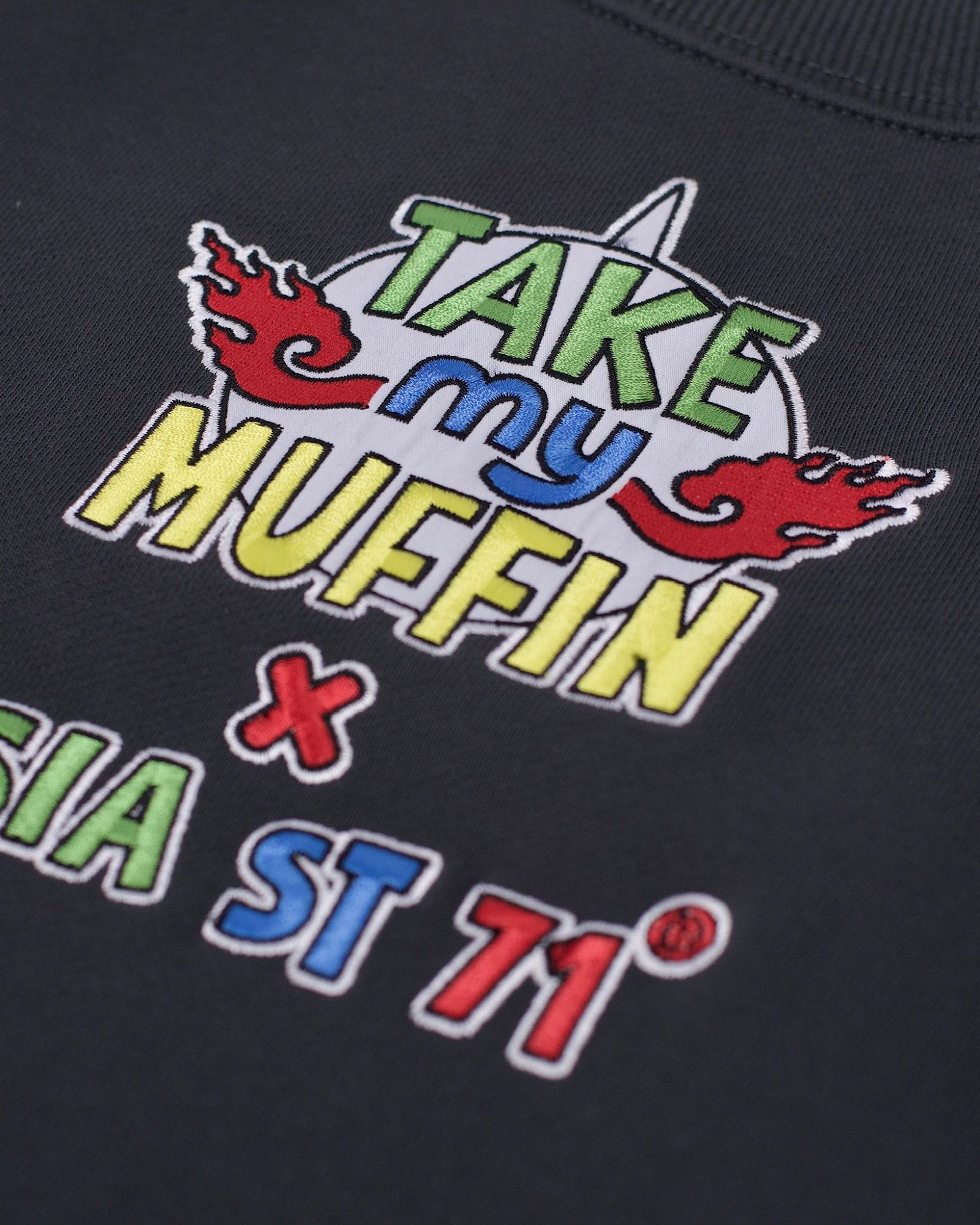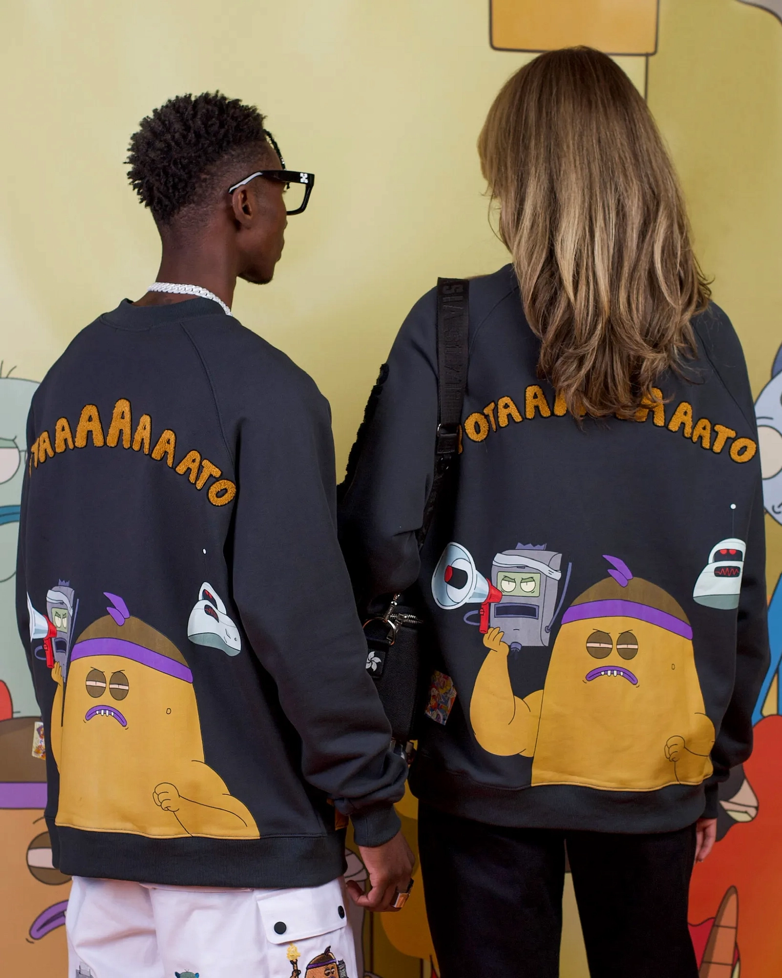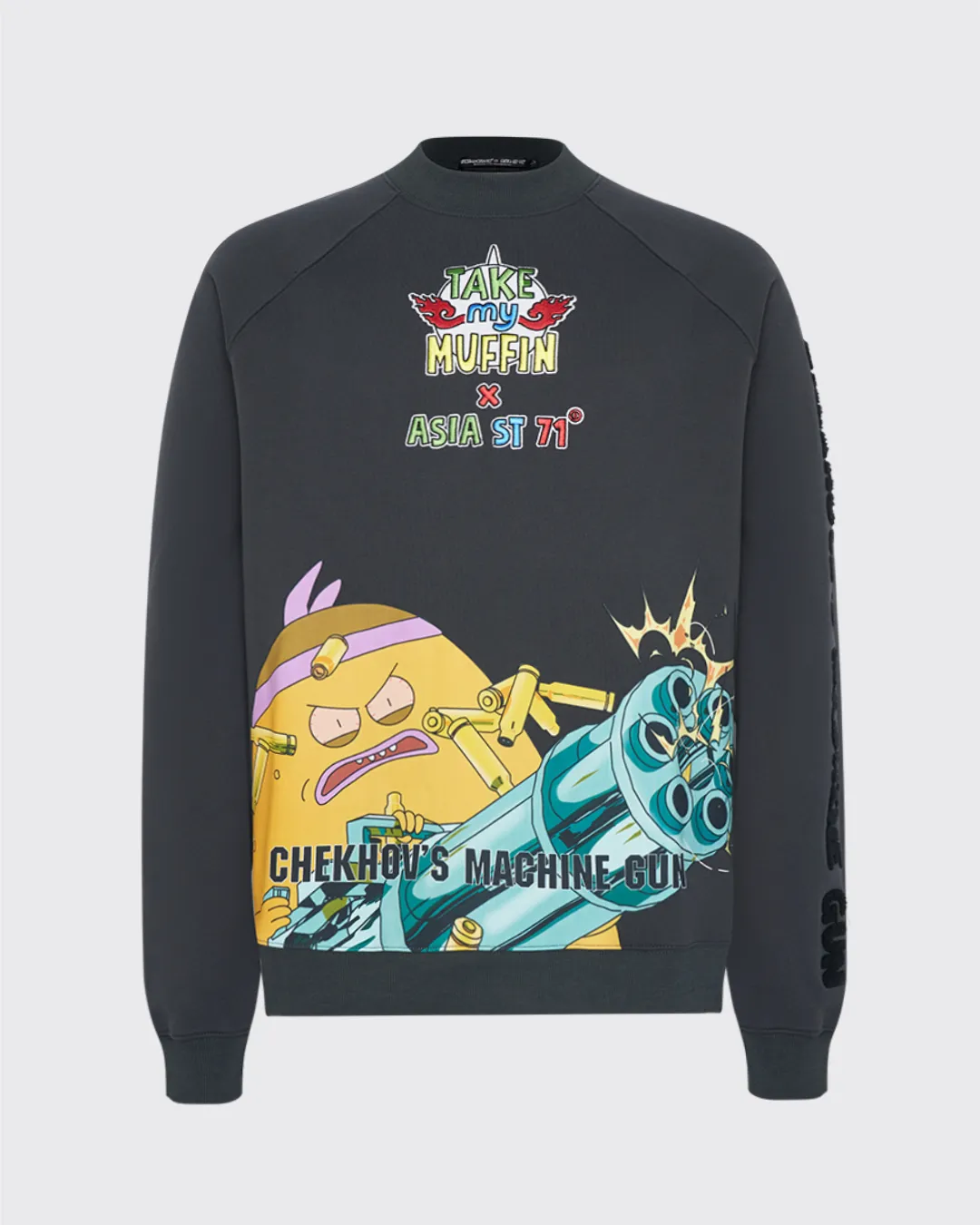 Свитшот выполнен из плотного хлопка. Принт нанесен методом прямой цифровой печати, и логотип, выполнен в технологии плоской многоцветной вышивки. Дополняют свитшот 3D нашивки из синели. Слева по шву размещен имиджевый лейбл.