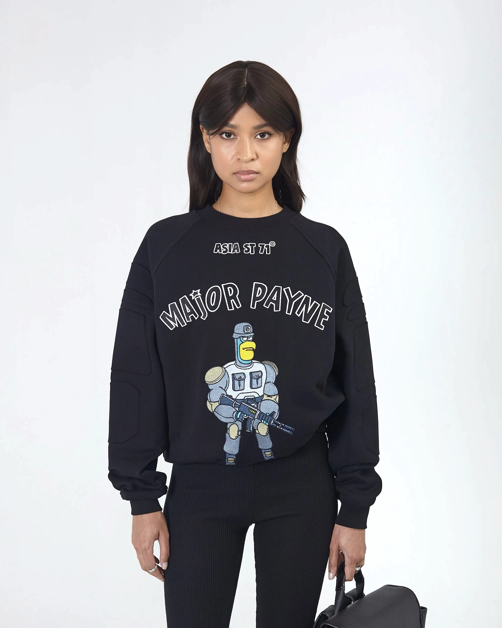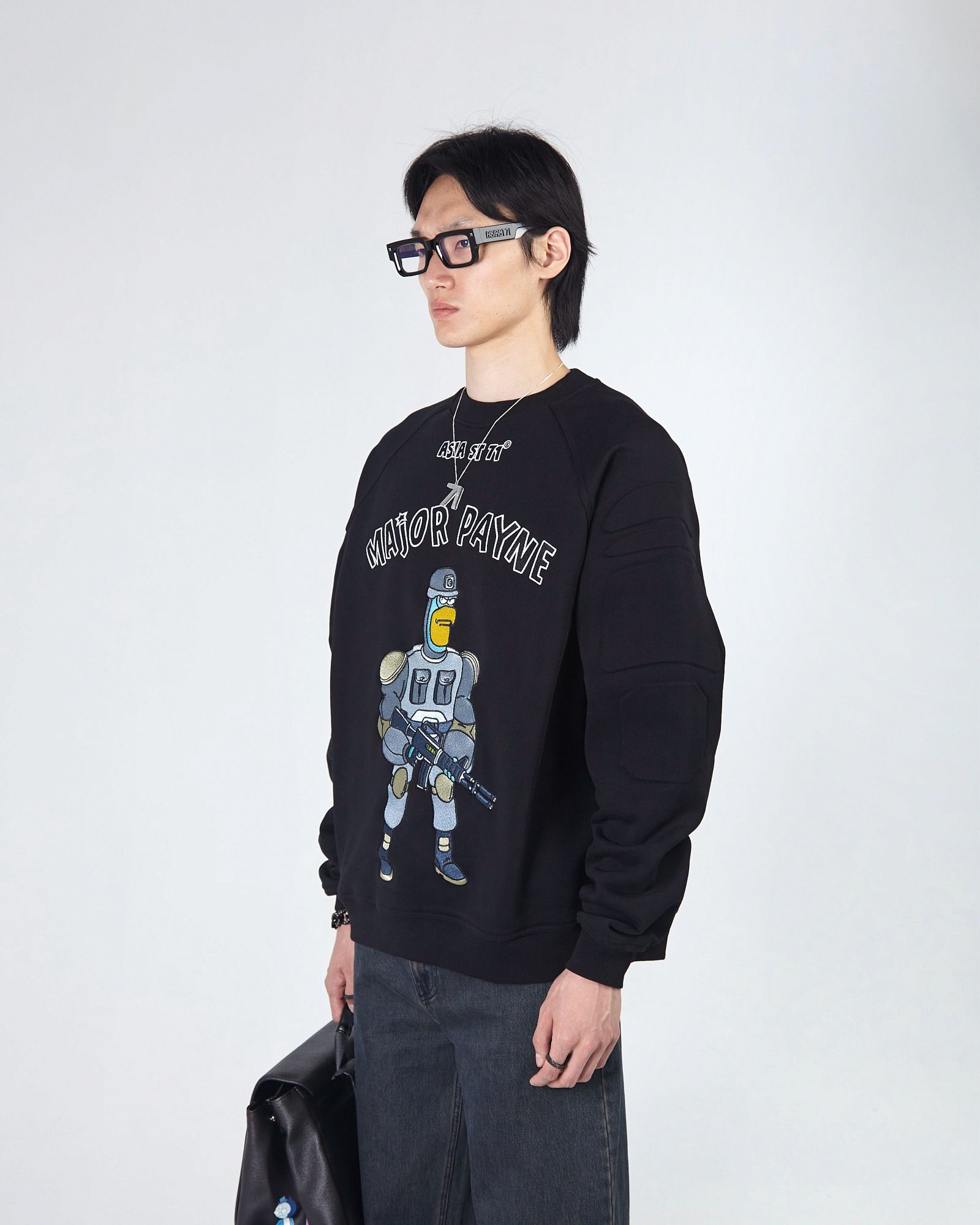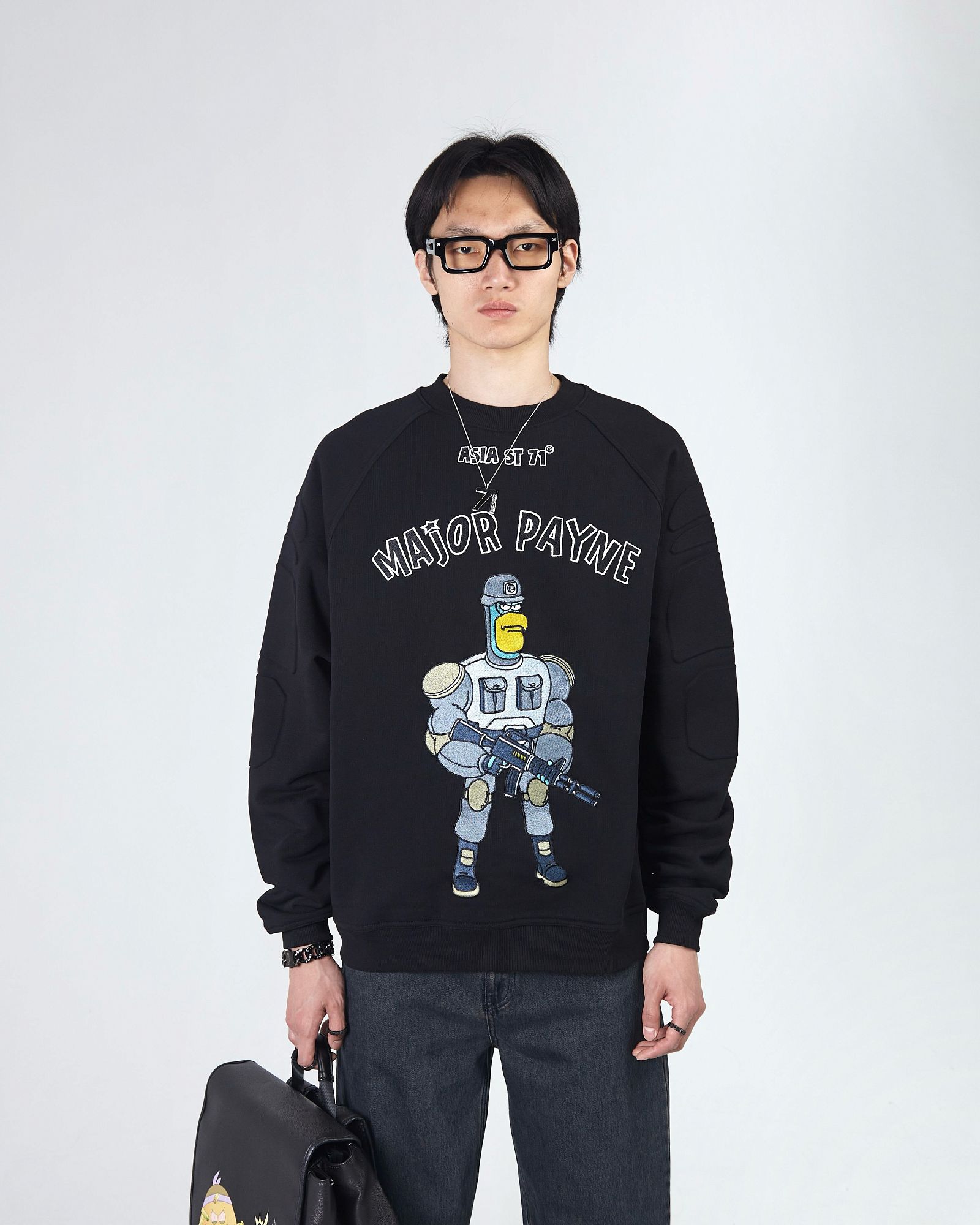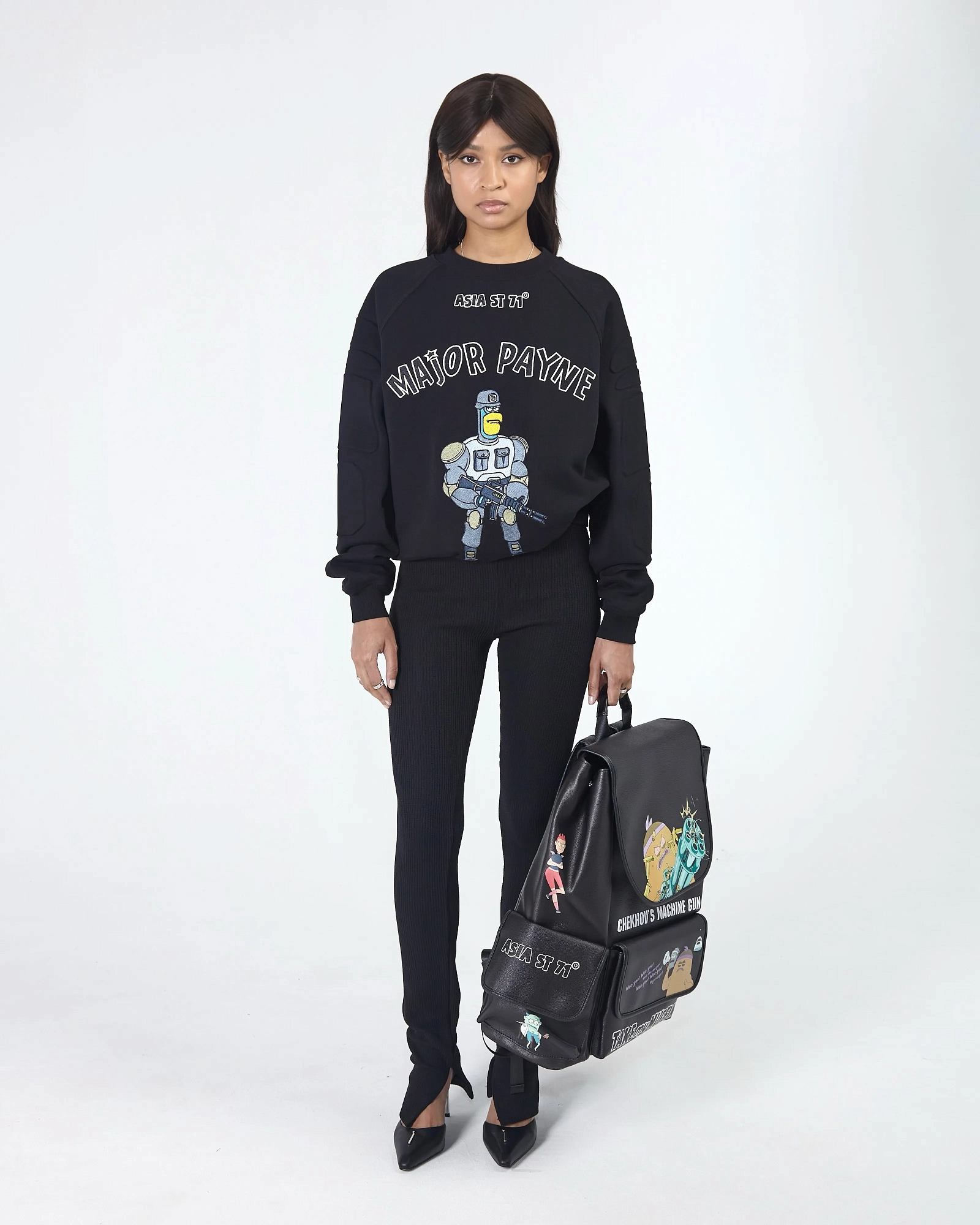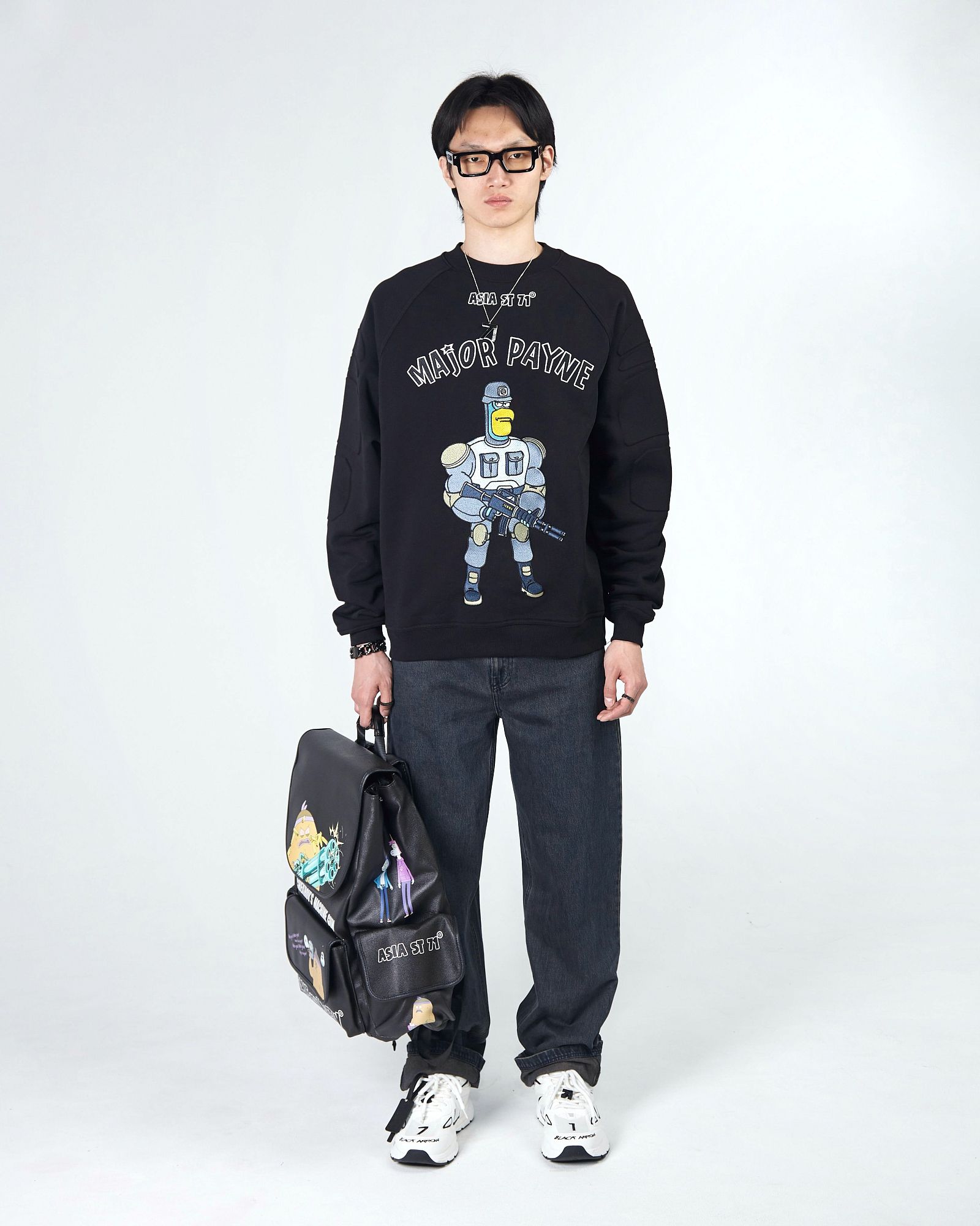 ASIA ST 71 И TAKE MY MUFFIN. ВЫПОЛНЕН ИЗ ПЛОТНОГО ХЛОПКА, ДЕРЖИТ ФОРМУ. ДОПОЛНЯЕТСЯ СТАЛЬНОЙ ФУРНИТУРОЙ И БРЕНДИРОВАННЫМИ МЕТАЛЛИЧЕСКИМИ МОЛНИЯМИ. ПРИНТ НАНЕСЕН ТЕРМОТРАНСФЕРНОЙ ПЕЧАТЬЮ, А ЛОГОТИП ПРЕДСТАВЛЕН В ФОРМАТЕ ПЛОСКОЙ ВЫШИВКИ."