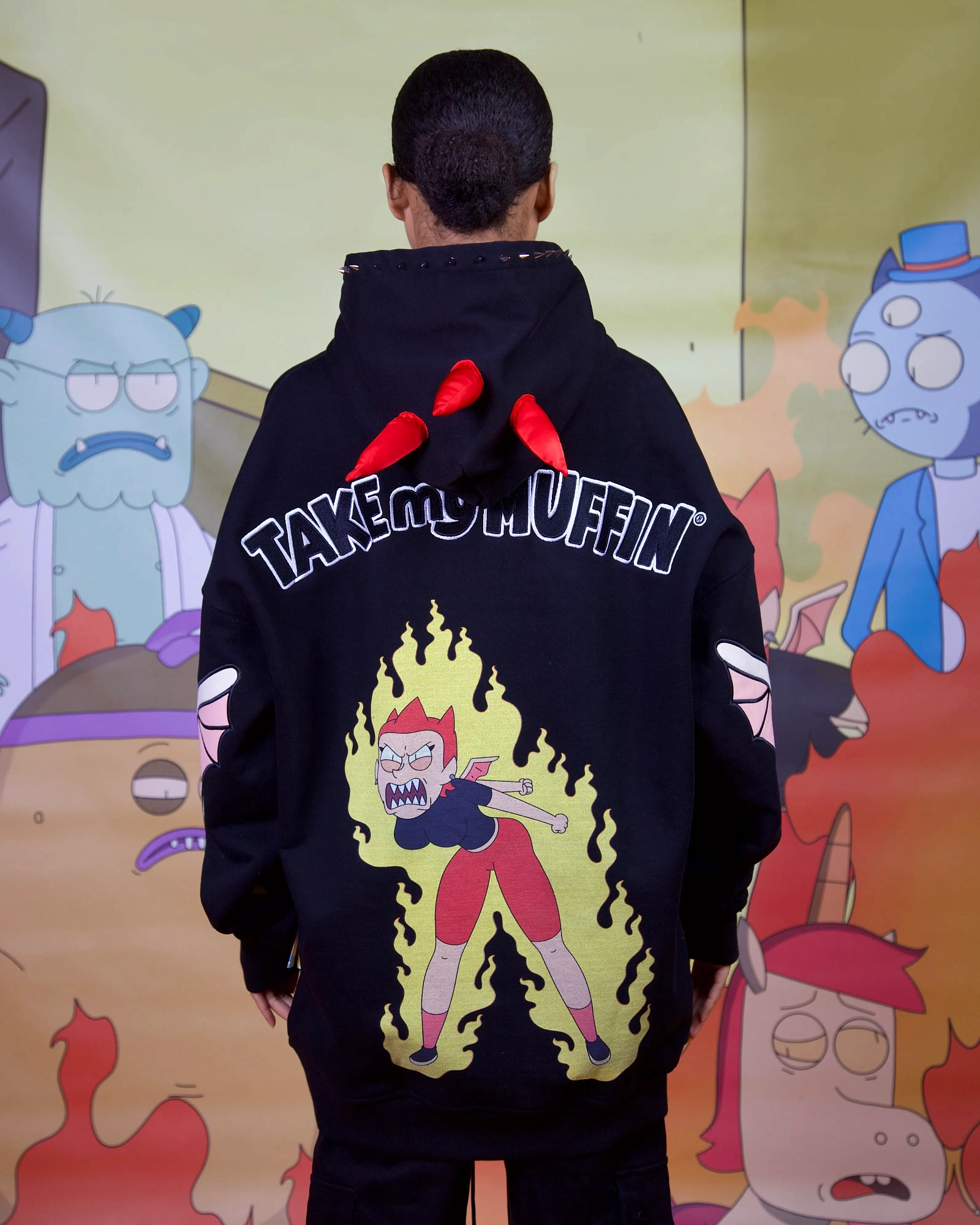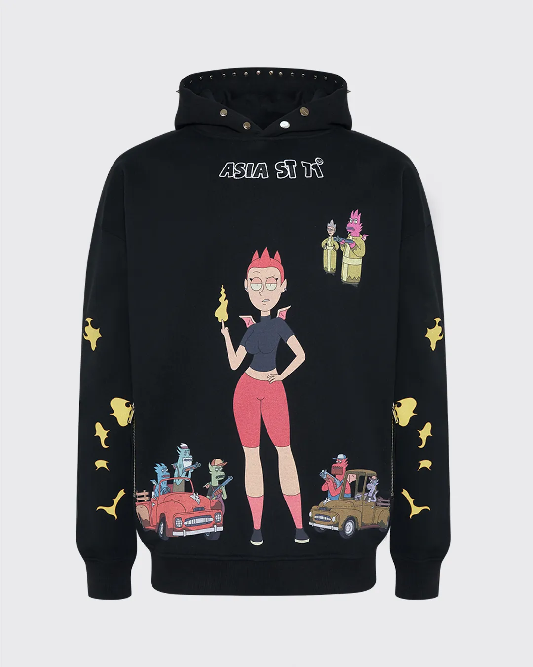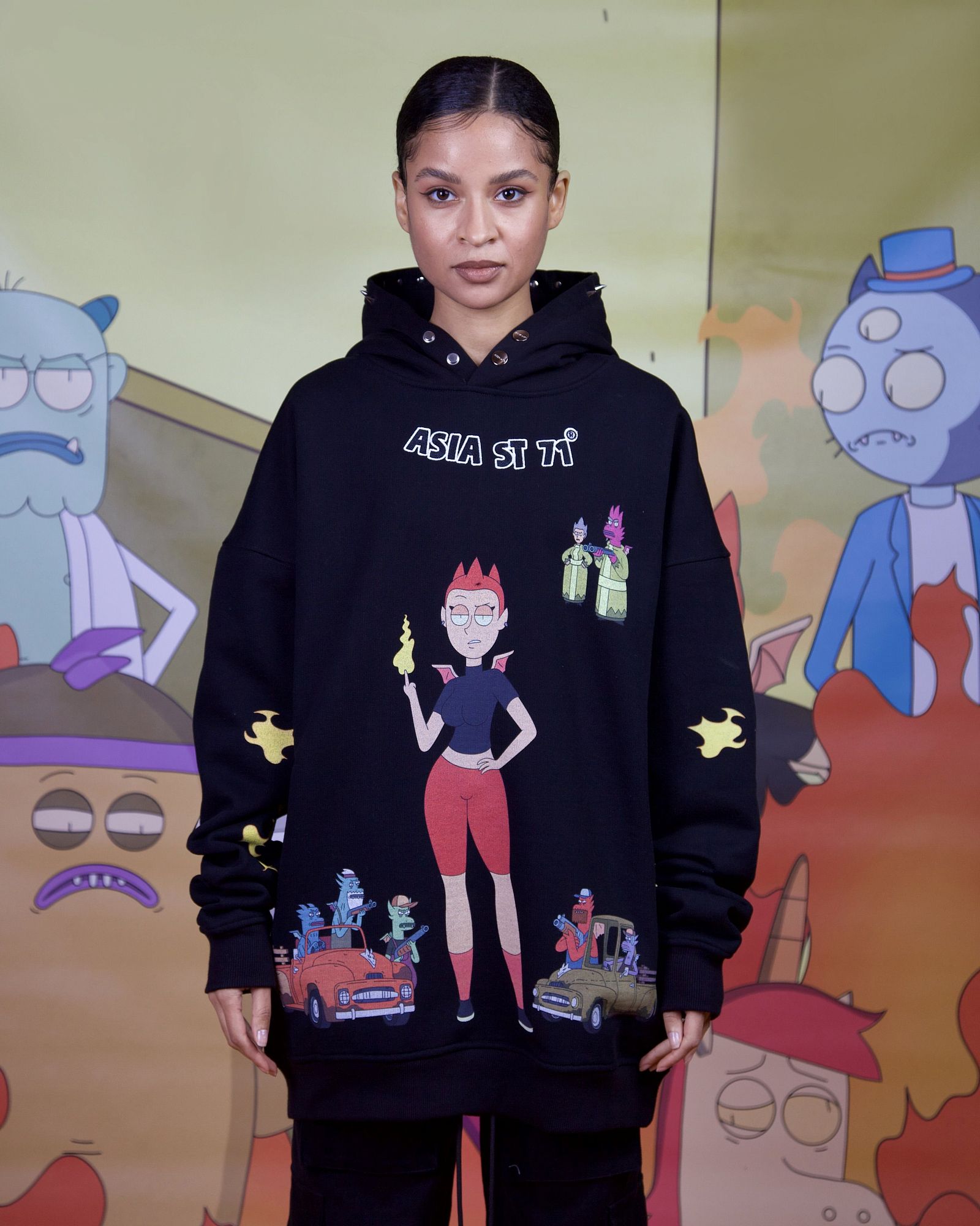string(506) "Худи свободного кроя из официальной коллаборации Asia St 71 и Take My Muffin. Выполнен из плотного хлопка, держит форму. Дополняется стальной фурнитурой и брендированными металлическими молниями. Принт нанесен термотрансферной печатью, а логотип представлен в формате плоской вышивки."