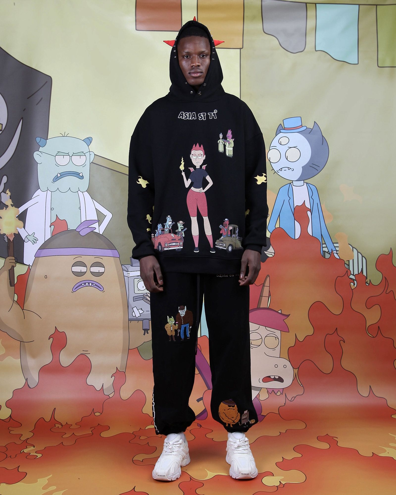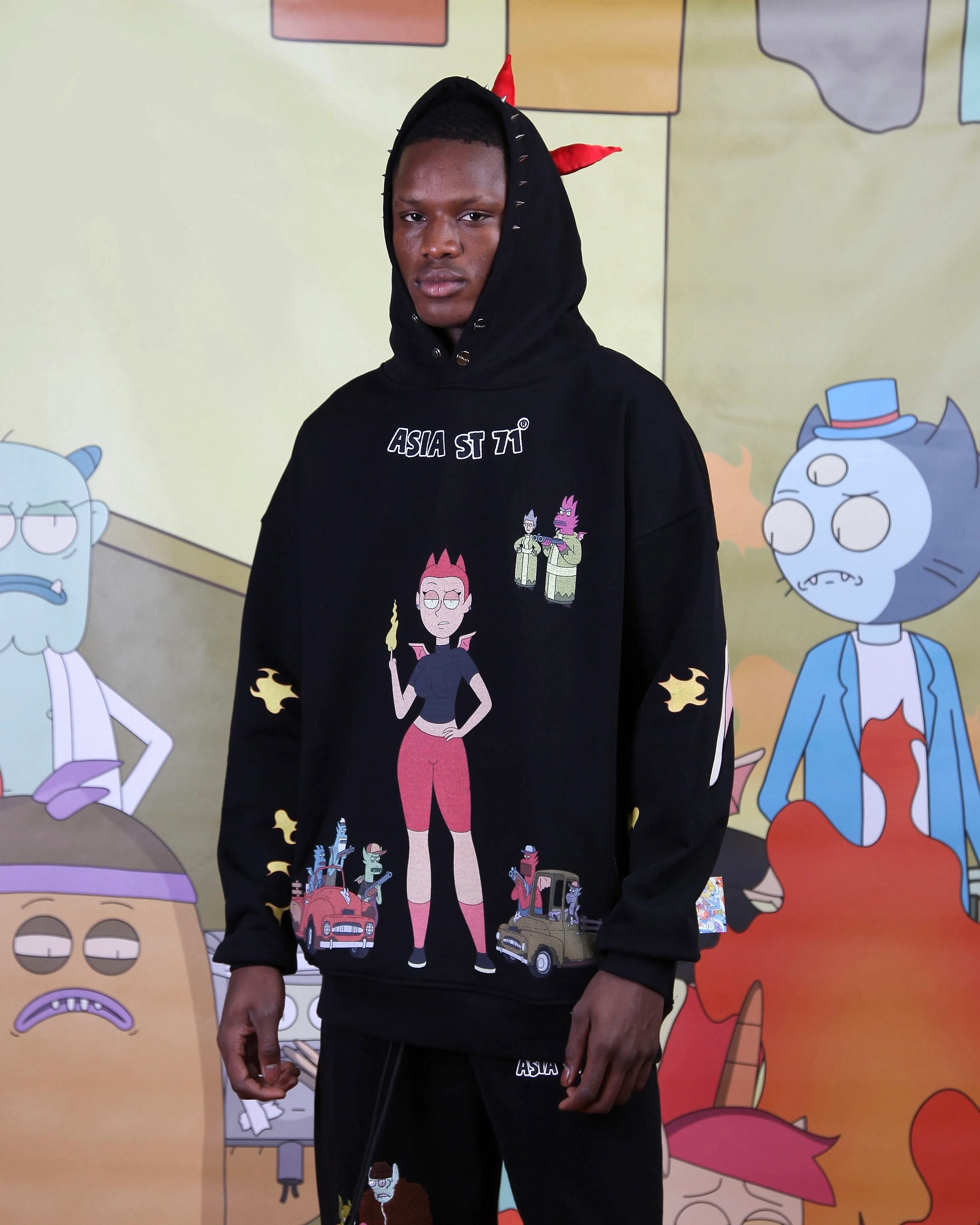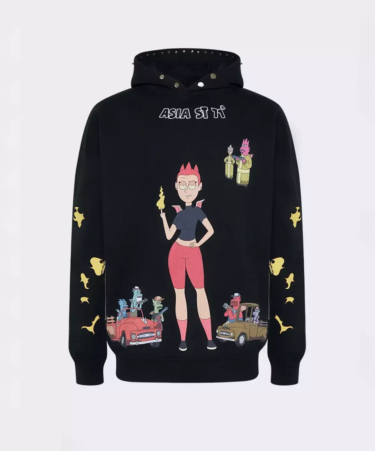 string(506) "Худи свободного кроя из официальной коллаборации Asia St 71 и Take My Muffin. Выполнен из плотного хлопка, держит форму. Дополняется стальной фурнитурой и брендированными металлическими молниями. Принт нанесен термотрансферной печатью, а логотип представлен в формате плоской вышивки."