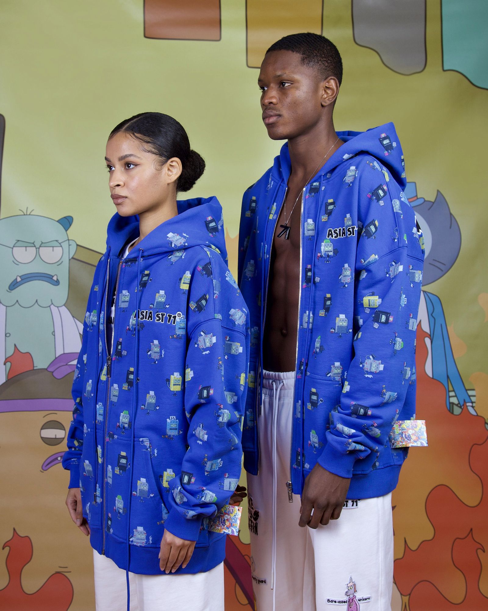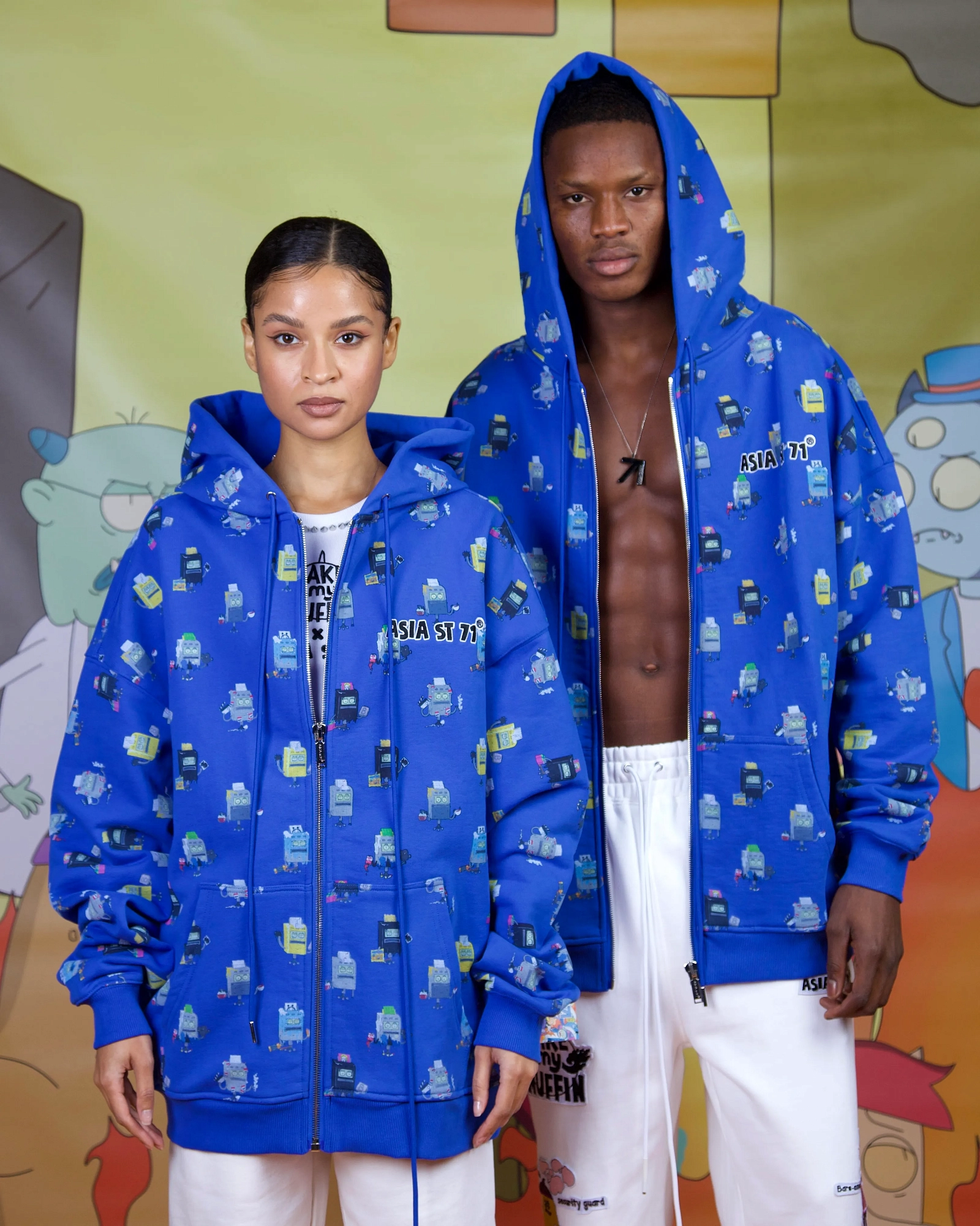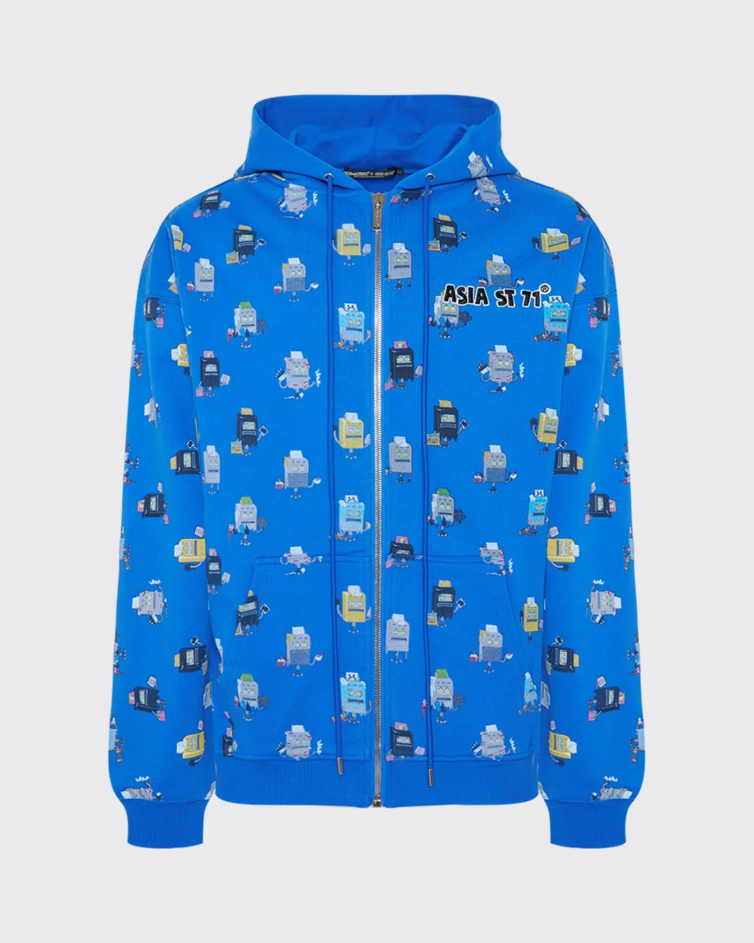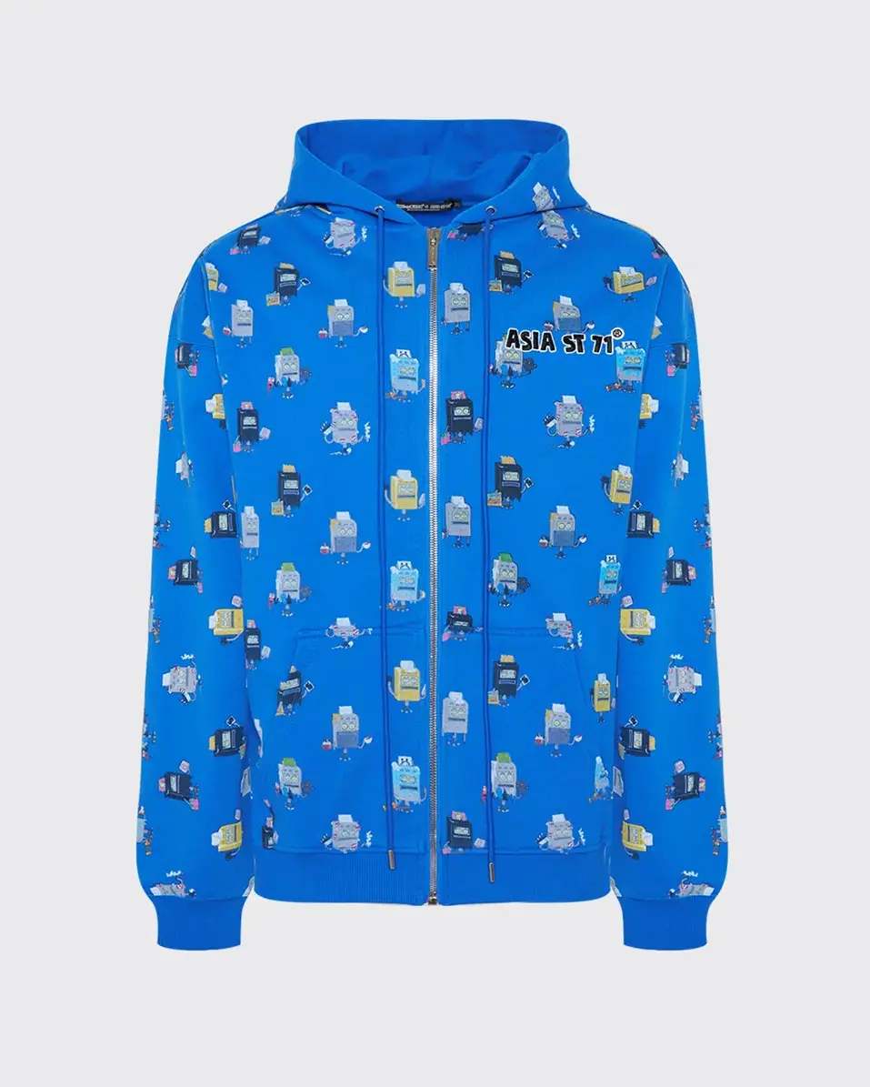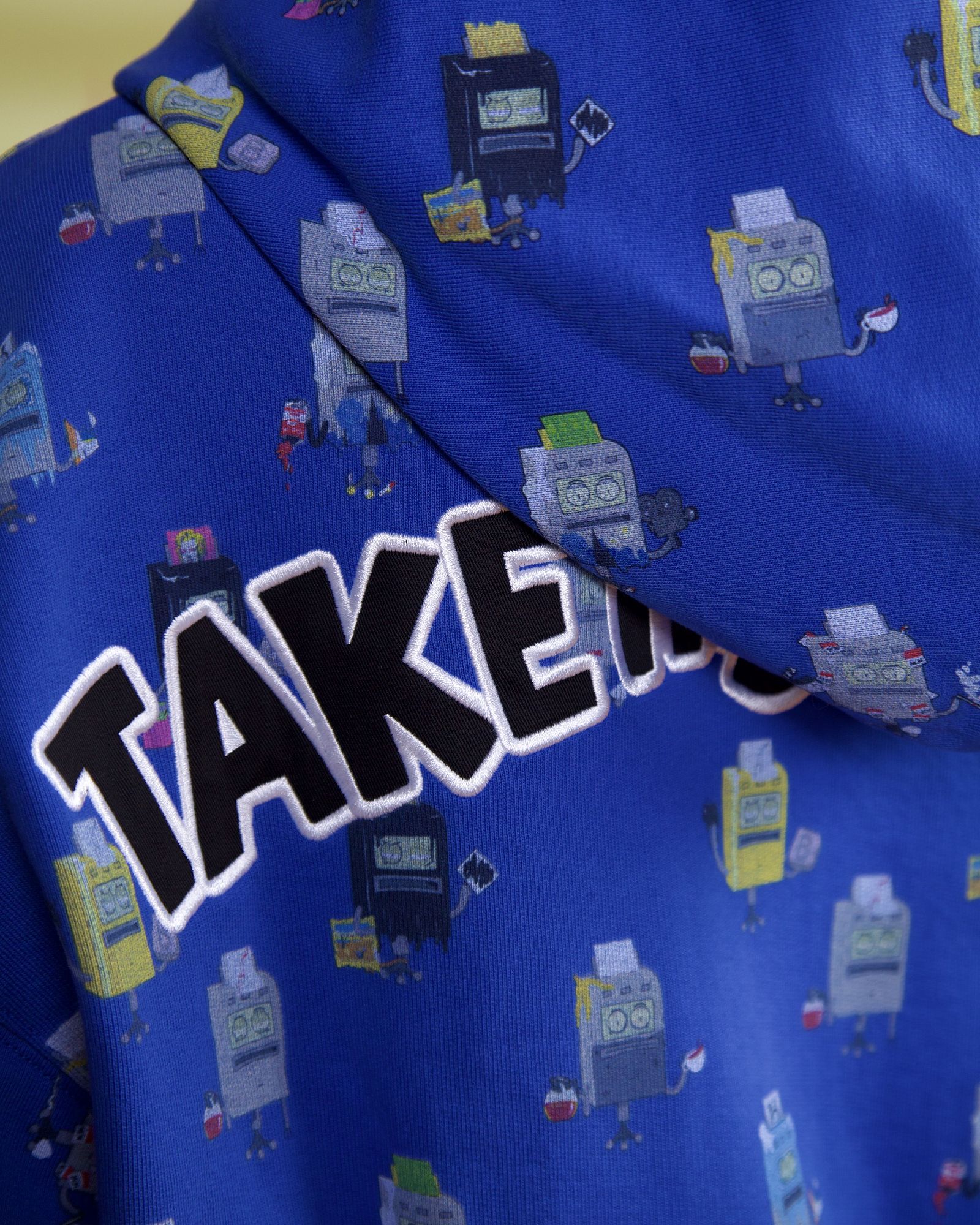 string(442) "Худи от костюма из коллекции Asia st 71 x Take My Muffin выполнен из плотного хлопка и имеет свободный крой. На поясе и манжете расположена комфортная резинка. Логотипы созданы с помощью вышивки и 3D нашивок из синели, дополнены термотрансферным принтом."