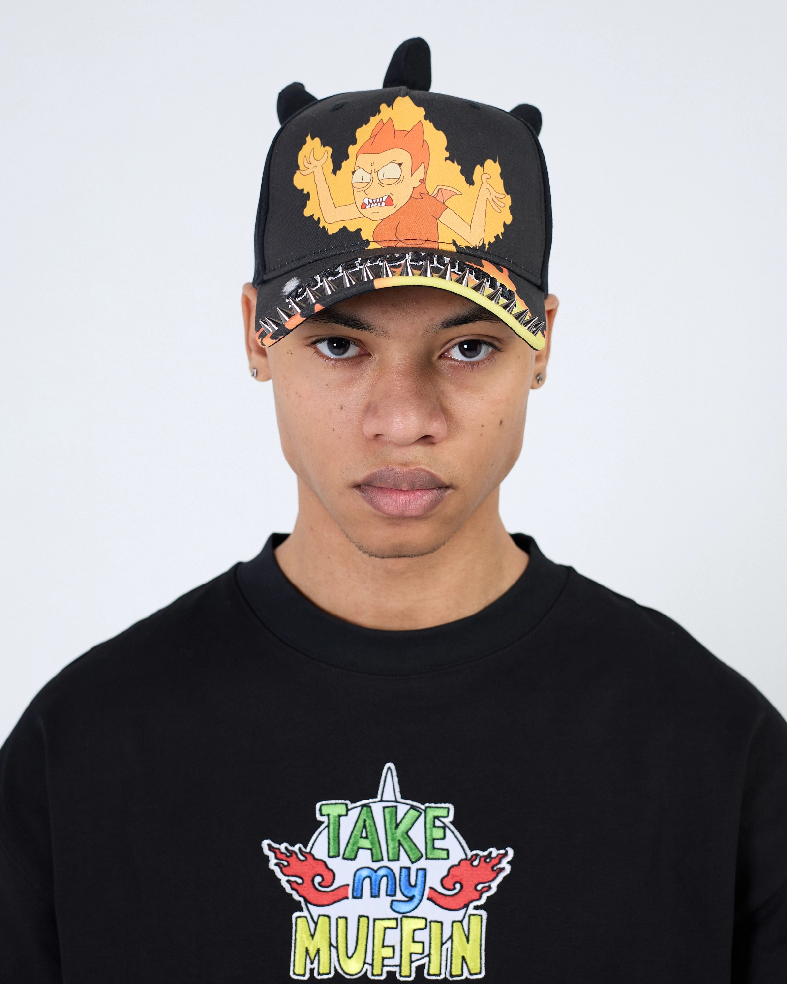 string(497) "Топ из коллекции "Take my Muffin" отличается контрастным принтом, нанесённый термотрансферной печатью. Логотип выполнен с использованием технологии плоской многоцветной вышивки. На горловине находятся металлические конусы, а сбоку расположен брендированный акцентный лейбл."