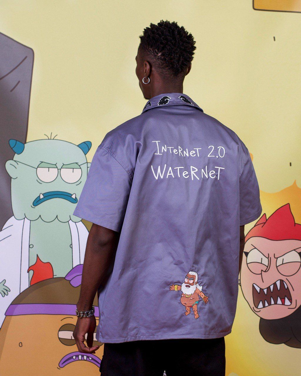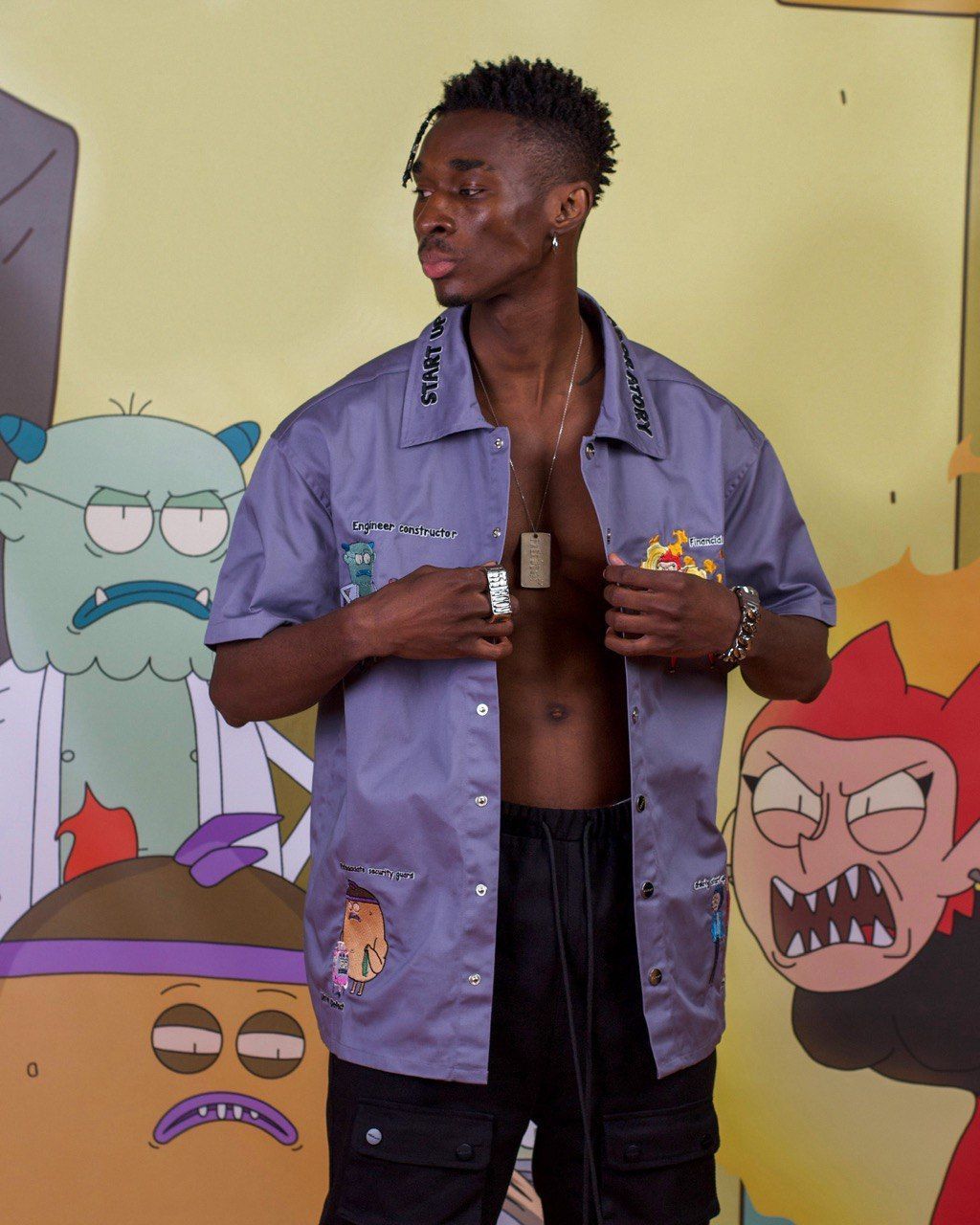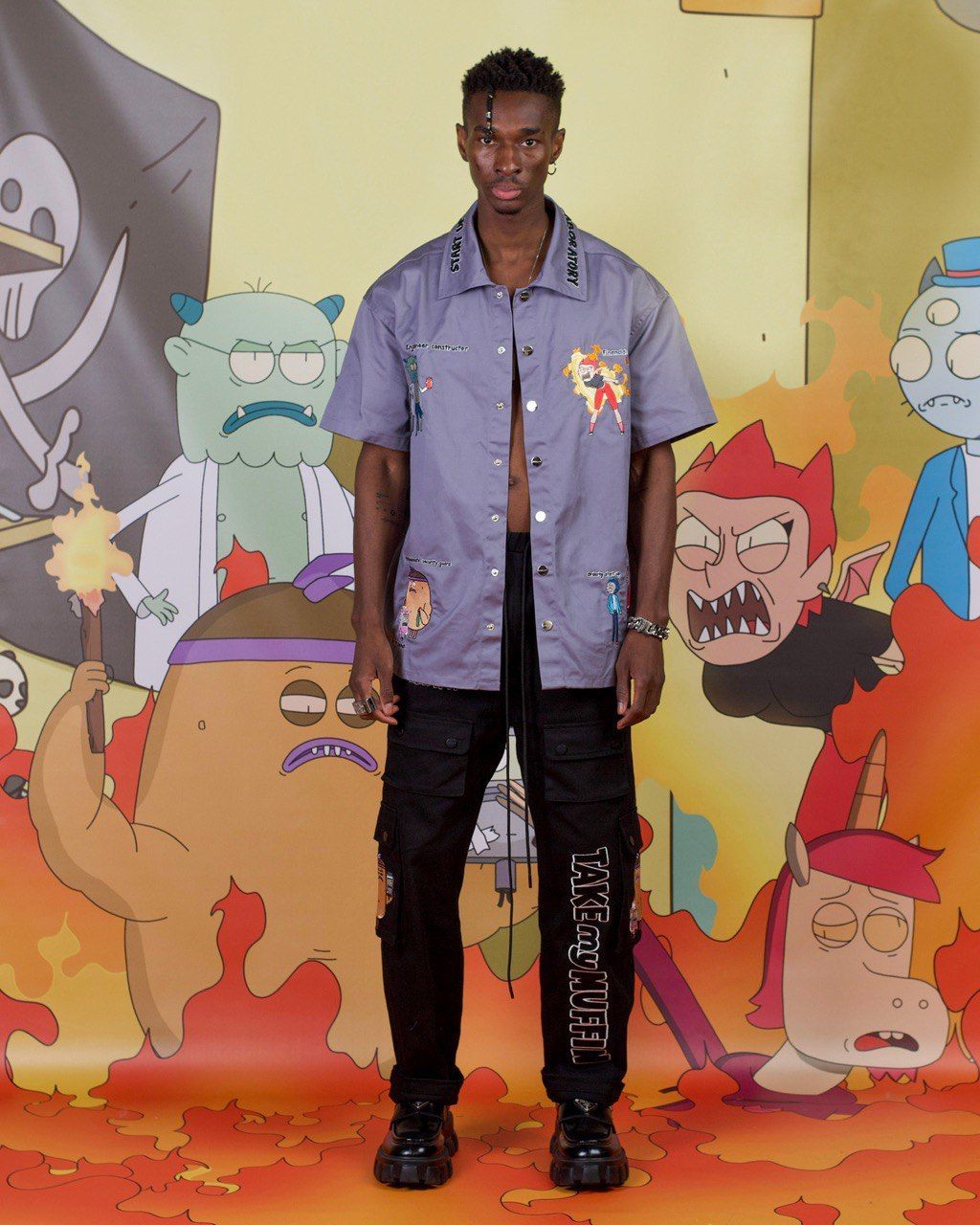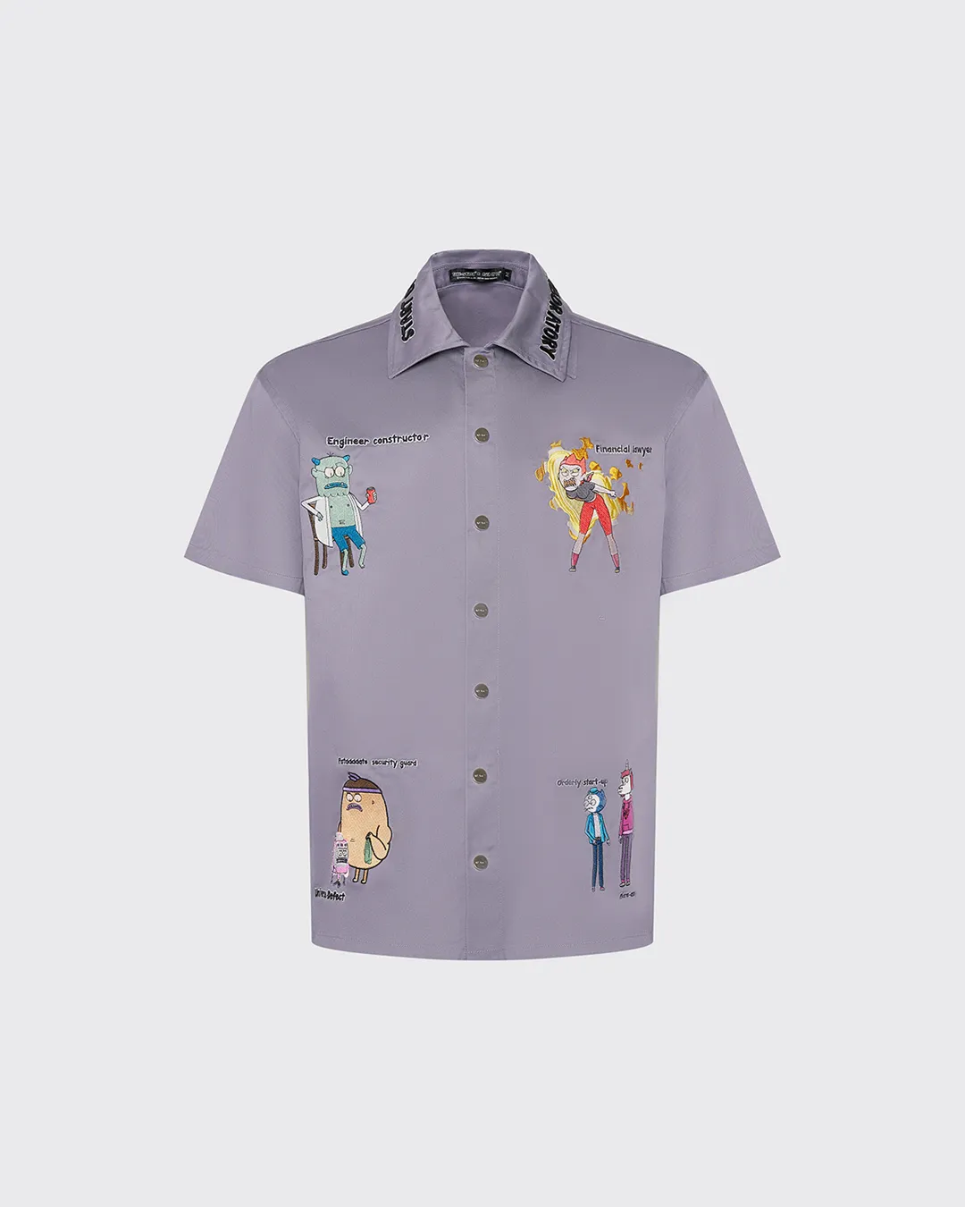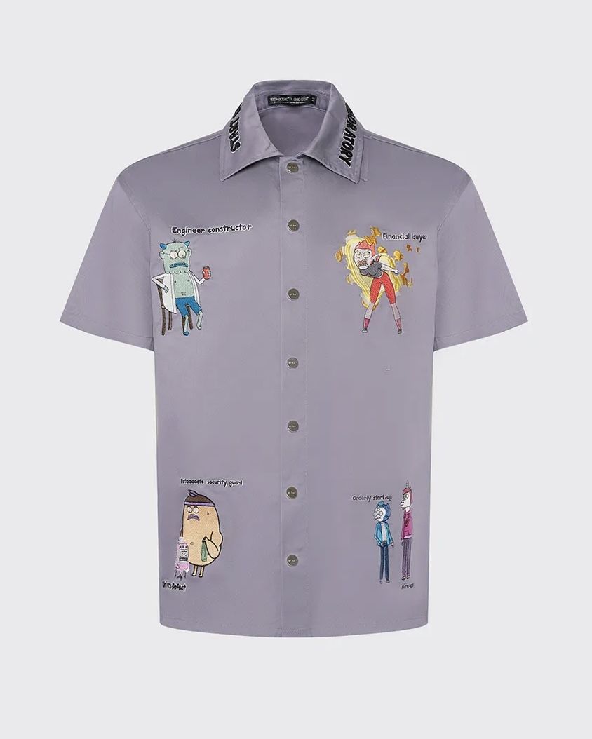 Рубашка из коллекции Take My Muffin выполнена из плотного хлопка. Используется фирменная фурнитура, а принт выполнен вышивкой нитями.