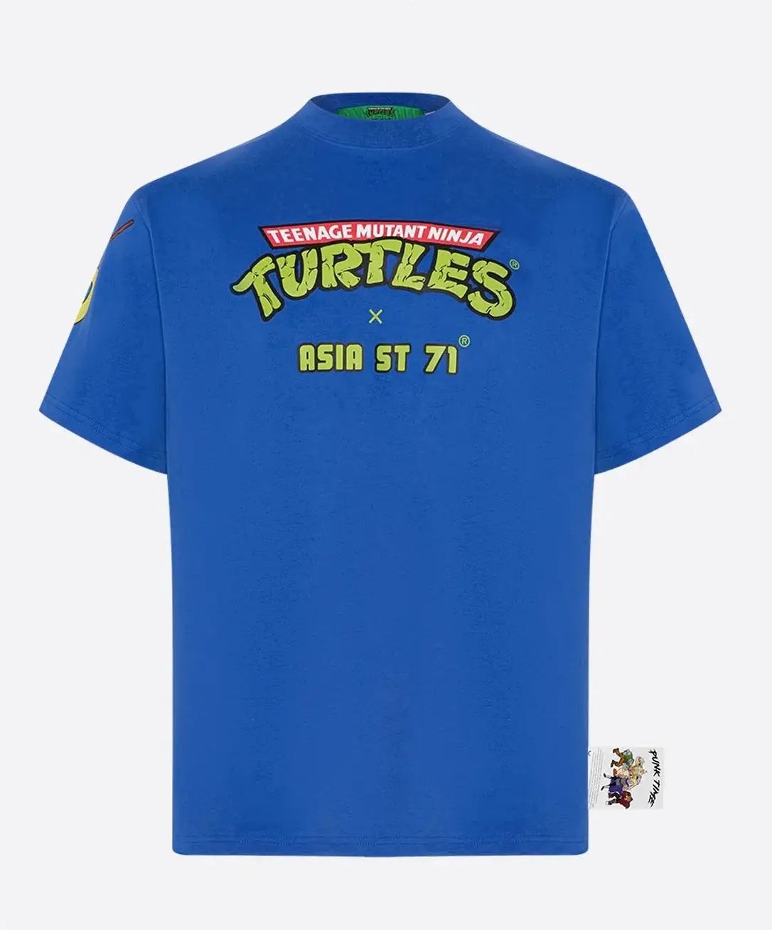 ФУТБОЛКА СВОБОДНОГО ПРЯМОГО КРОЯ ВЫПОЛНЕНА ИЗ МЯГКОГО ХЛОПКА С ЭФФЕКТОМ ВЕЛЮРА. ПЛОТНОСТЬ ХЛОПКА 260-ГР. ПРИНТ НАНЕСЕН ПЛЕНКОЙ. ПО ШВУ БРЕНДИРОВАННЫЙ ИМИДЖЕВЫЙ ЛЕЙБЛ КОЛЛАБОРАЦИИ ASIA ST 71 X TURTLES. АКЦЕНТНЫЙ АЙТЕМ ДЛЯ ЯРКИХ ОБРАЗОВ."