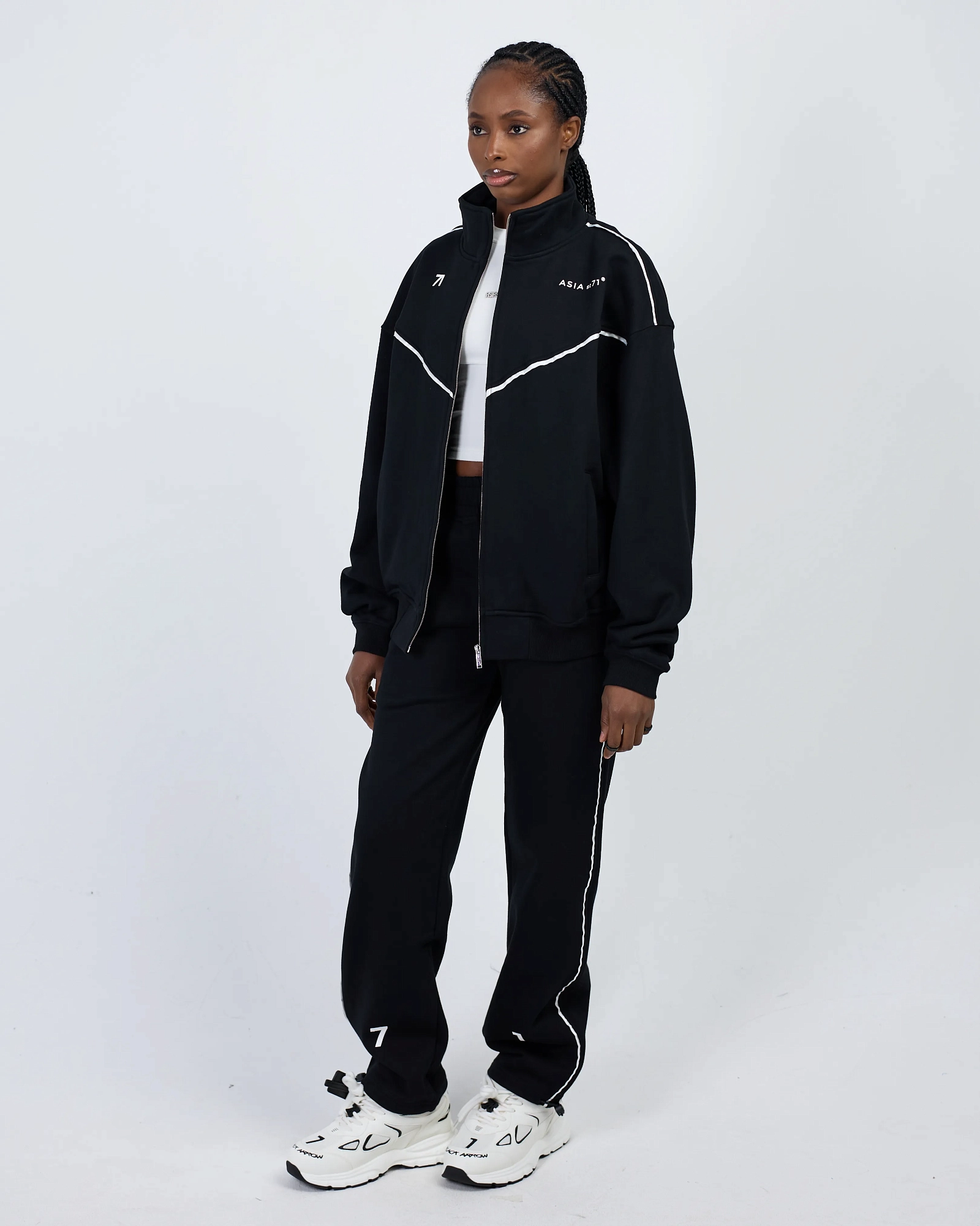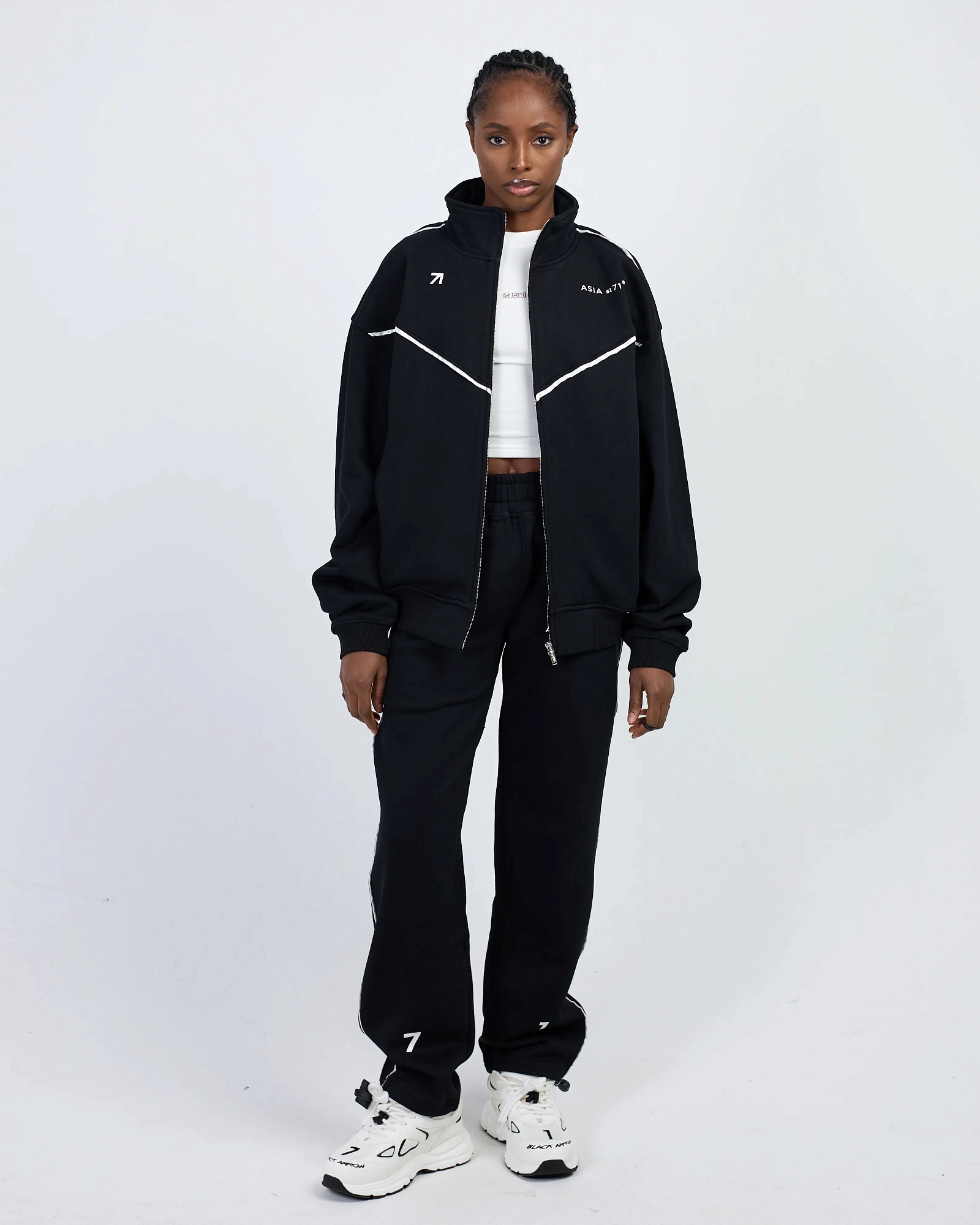 Джоггеры от костюма Cotton Arrow, выполненные из плотного хлопка 3-х нитки, подходят как для него, так и для неё. Модель имеет свободный крой, обеспечивающий комфорт и свободу движений. Брендированная стальная фурнитура добавляет стильный акцент, а контрастный принт выполнен с использованием термотрансферной печати.