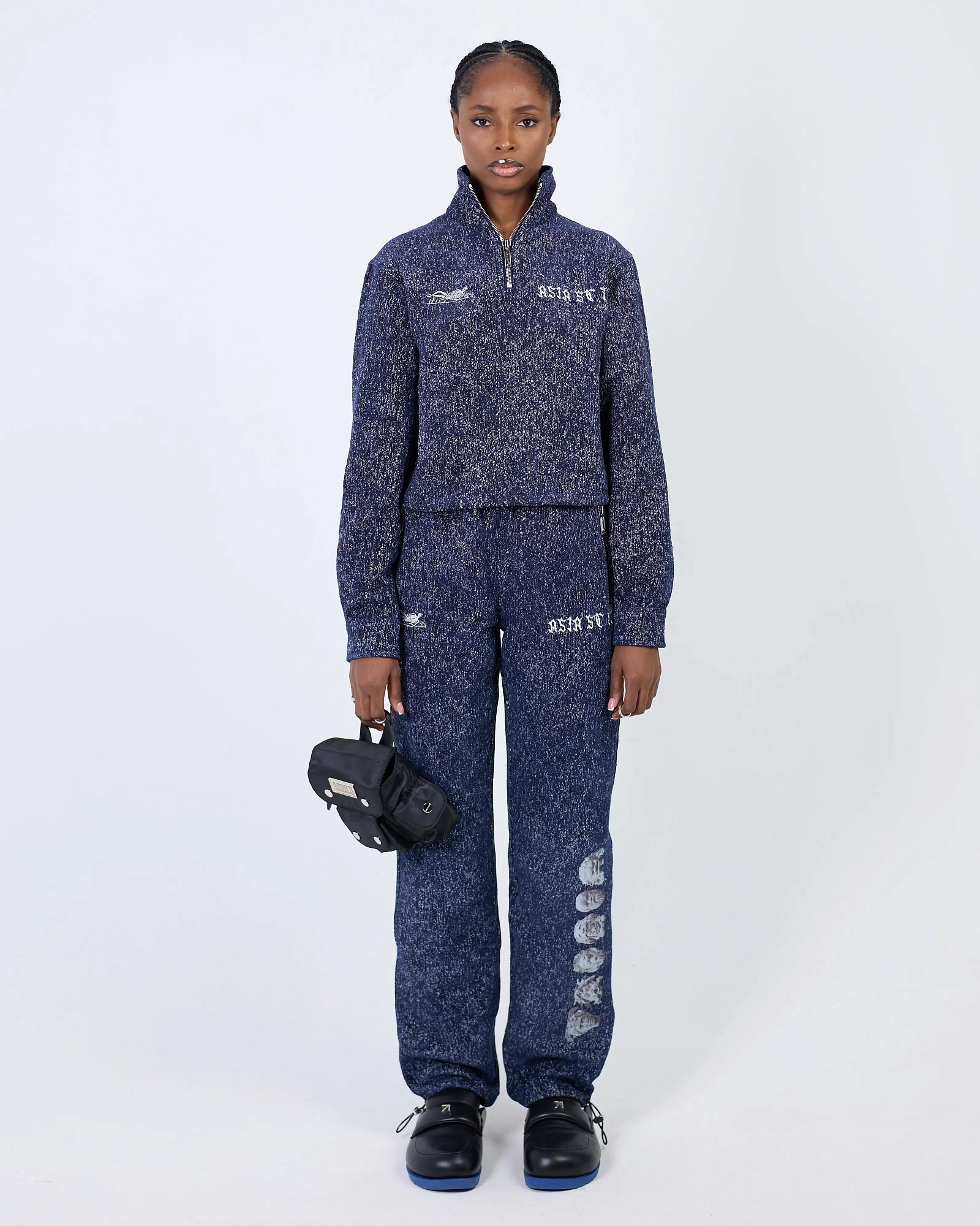 СВИТШОТ В СИНЕМ ЦВЕТЕ С ВОРОТОМ-СТОЙКОЙ НА МОЛНИИ. ВЫПОЛНЕН ИЗ КОМФОРТНОГО И МЯГКОГО МАТЕРИАЛА, ИМЕЕТ СВОБОДНЫЙ КРОЙ, ПУГОВИЦЫ НА МАНЖЕТАХ, ВЫШИВКУ ПО СПИНЕ И ЛИЦЕВОЙ СТОРОНЕ, КАРМАНЫ И КУЛИСКУ С ФИКСАТОРОМ ПО НИЖНЕМУ КРАЮ ДЛЯ УТЯЖКИ.