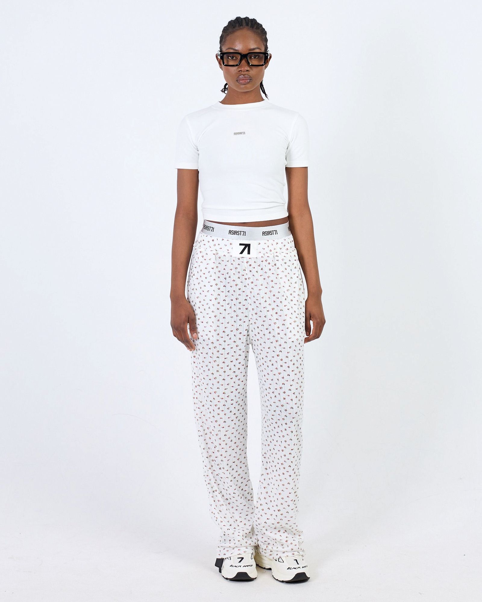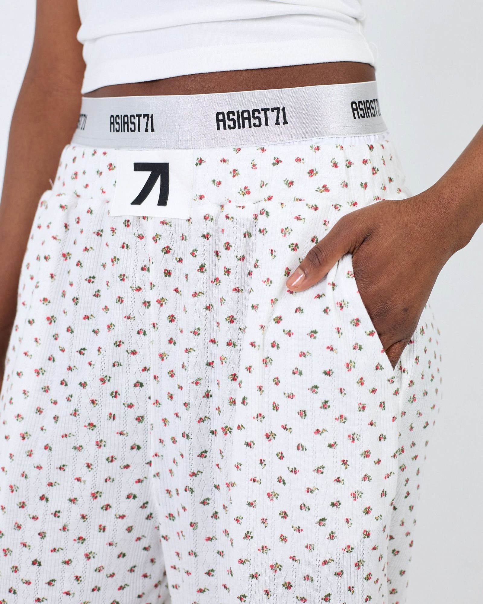 С 3D ВКРАПЛЕНИЯМИ КОНТРАСТНОЙ НИТИ. ДВОЙНОЙ БРЕНДИРОВАННЫЙ ПОЯС НА ЭЛАСТИЧНОЙ РЕЗИНКЕ, ЗАМШЕВАЯ НАШИВКА СПЕРЕДИ И СИЛИКОНОВАЯ ЧЕРНАЯ СТРЕЛКА СОЗДАЮТ СТИЛЬНЫЙ АКЦЕНТ, НЕ ПЕРЕГРУЖАЯ ЛЕТНИЙ ОБРАЗ."