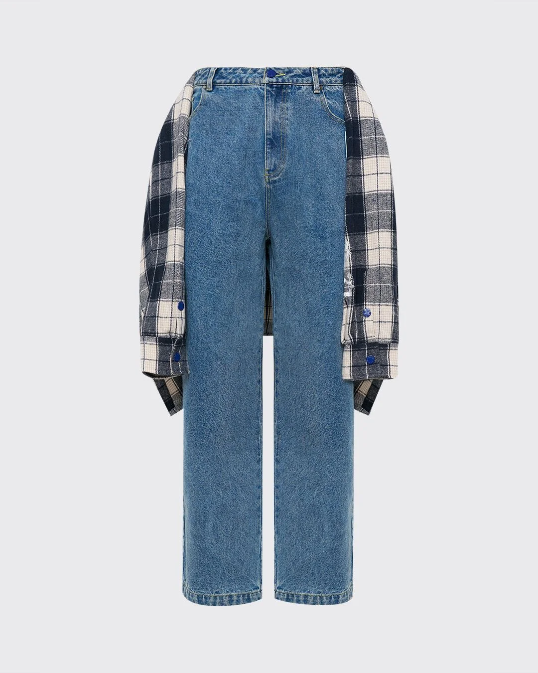string(610) "Базовые джоггеры из плотного 100% хлопка с эффектом небрежно повязанной рубашки в клетку. Имеют свободный и прямой крой, обеспечивающий свободу движений, регулирующаяся посадка. На рубашке контрастная вышивка, патч и принт по рукавам. Данная модель подчеркнет вашу идивидуальность и станет идеальным базовым элементом в гардеробе."