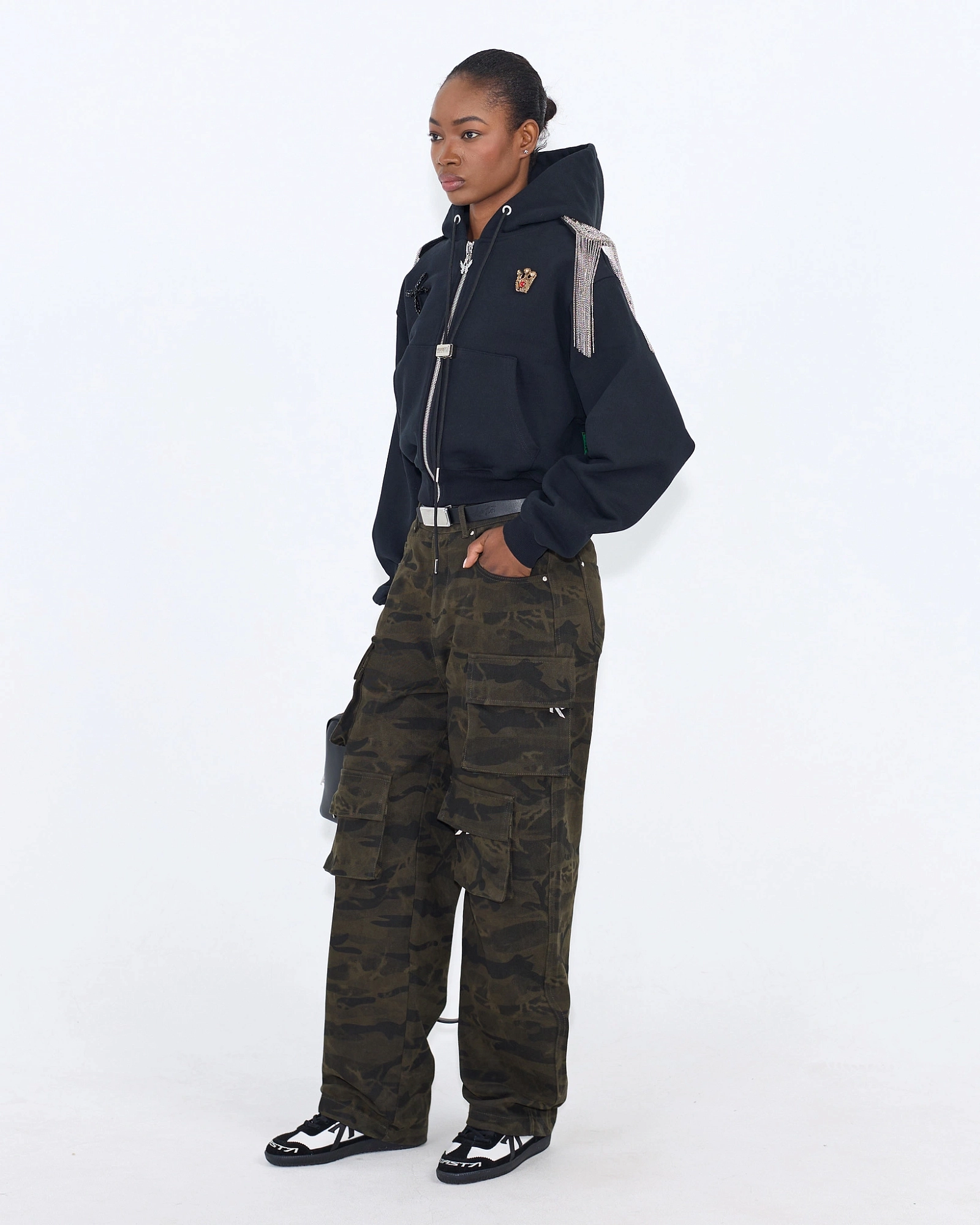 ВЫПОЛНЕНЫ ИЗ ПЛОТНОГО ДЕНИМА, КОТОРЫЙ ХОРОШО ДЕРЖИТ ФОРМУ. ЗАНИЖЕННАЯ ПОСАДКА ОБЕСПЕЧИВАЕТ КОМФОРТ, А МОЛНИИ НА ЩИКОЛОТКАХ ПОЗВОЛЯЮТ РЕГУЛИРОВАТЬ ОБХВАТ. БРЕНДИРОВАННАЯ СТАЛЬНАЯ ФУРНИТУРА ДОБАВЛЯЕТ СТИЛЬНЫЙ АКЦЕНТ. МЫ РЕКОМЕНДУЕМ СОЧЕТАТЬ ДЖИНСЫ С БАЗОВЫМИ ФУТБОЛКАМИ И ХУДИ, ДОПОЛНИВ ОБРАЗ АКЦЕНТНОЙ СУМКОЙ И МАССИВНОЙ ОБУВЬЮ."