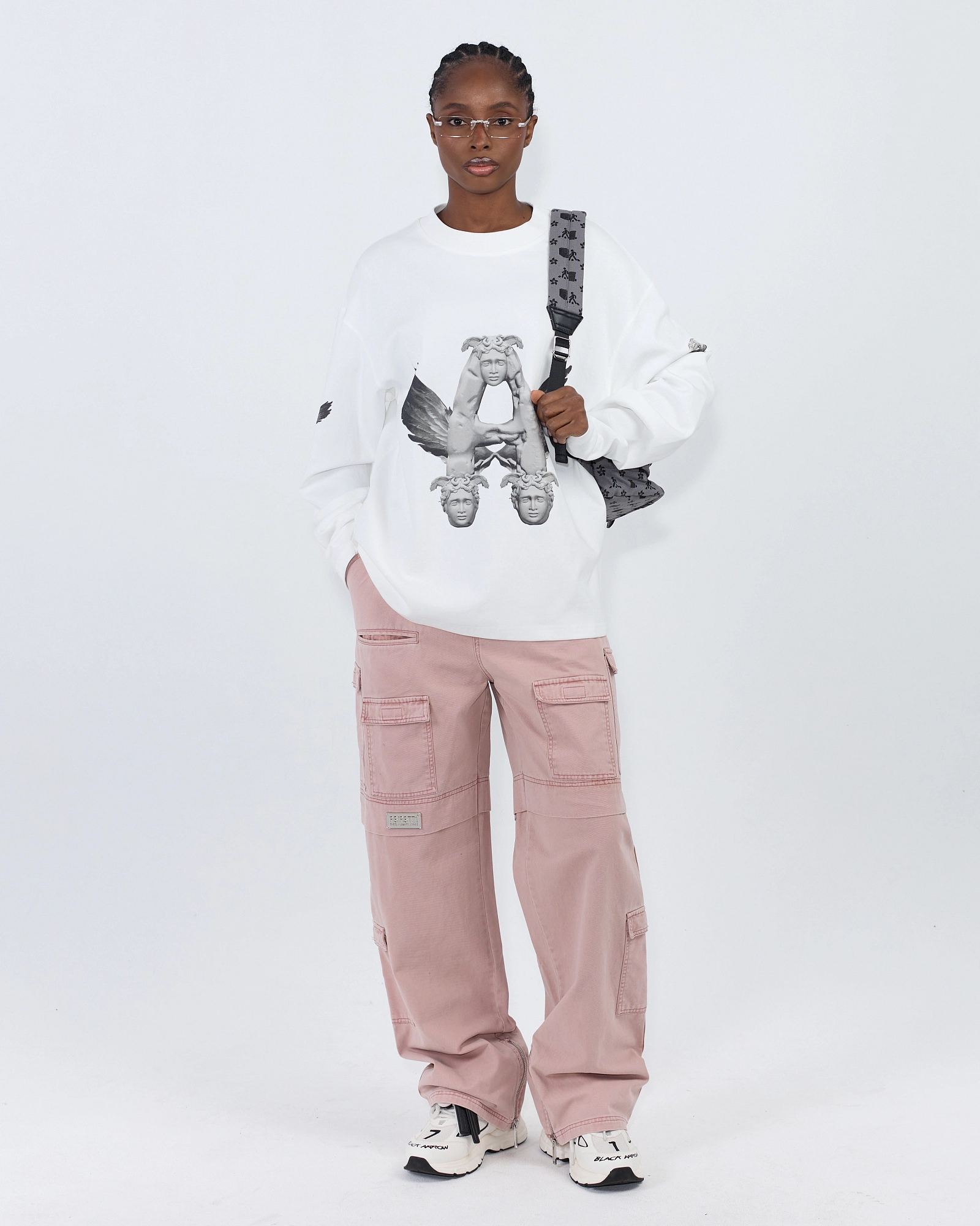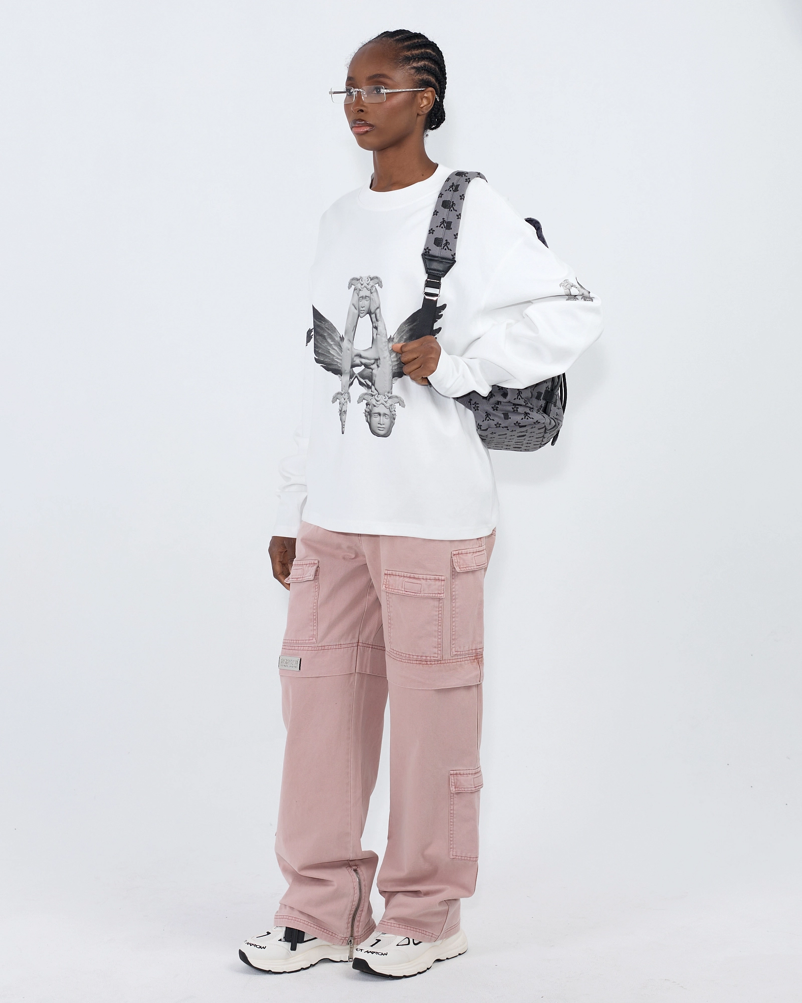 БАЗОВЫЙ ЛОНГСЛИВ ОТ ASIA ST 71 С АКЦЕНТОМ НА МИНИМАЛИЗМ И ВНИМАНИЕ К ДЕТАЛЯМ. МОДЕЛЬ ИЗ ХЛОПКА В БЕЛОМ ЦВЕТЕ СВОБОДНОГО КРОЯ ДОПОЛНЕНА ПРИНТОМ FLYING A НА ГРУДИ И РУКАВАХ, ИДЕАЛЬНО ВПИСЫВАЯСЬ В ЛЮБОЙ ОБРАЗ. СТИЛИЗУЙТЕ ЕГО КАК ОСНОВУ В МНОГОСЛОЙНЫЙ СОЧЕТАНИЯХ ИЛИ НОСИТЕ КАК САМОСТОЯТЕЛЬНЫЙ ЭЛЕМЕНТ ГАРДЕРОБА С БРЮКАМИ И ДЖИНСАМИ.