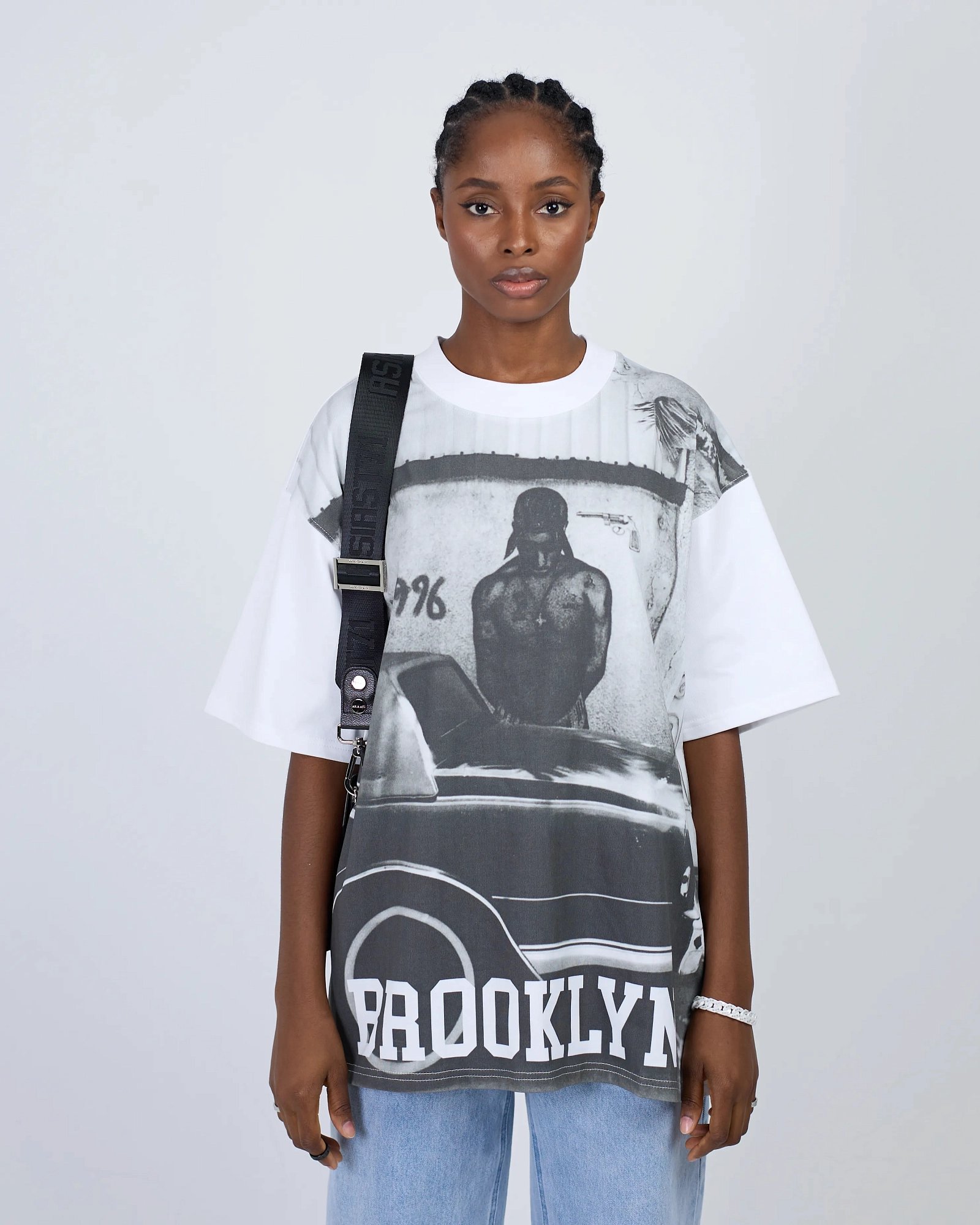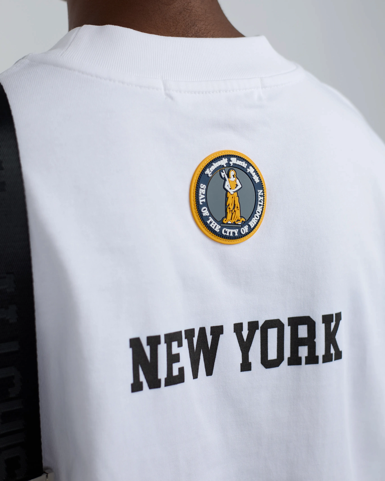 380-ГР ХЛОПКА, ХОРОШО ДЕРЖИТ ФОРМУ. ПРИНТ НАНЕСЁН ТЕРМОТРАНСФЕРНОЙ ПЕЧАТЬЮ, ОБЕСПЕЧИВАЯ ЯРКОСТЬ И ДОЛГОВЕЧНОСТЬ. ПРЕДЛАГАЕМ СОЧЕТАТЬ ФУТБОЛКУ С ДРУГИМИ ИЗДЕЛИЯМИ ИЗ КОЛЛЕКЦИИ BROOKLYN."