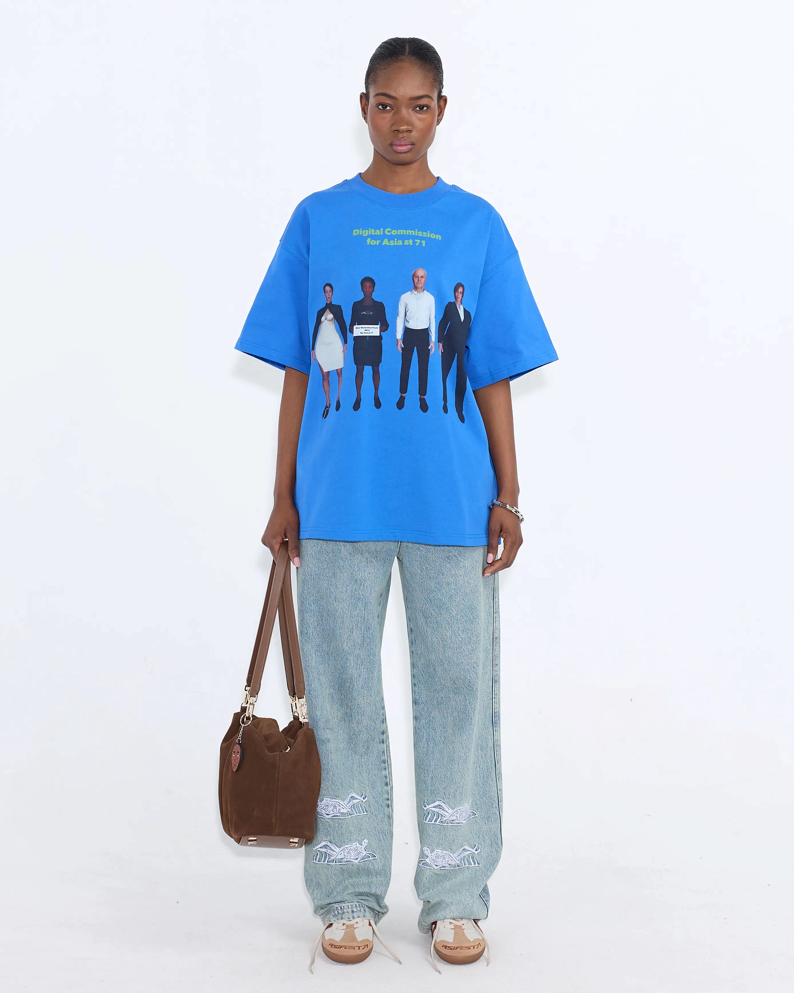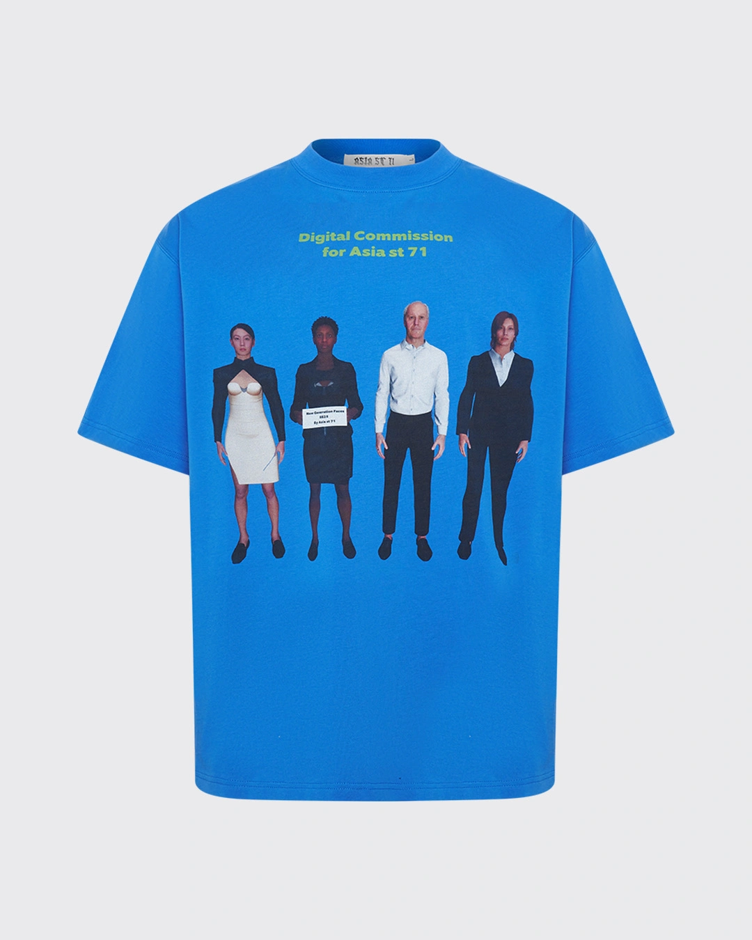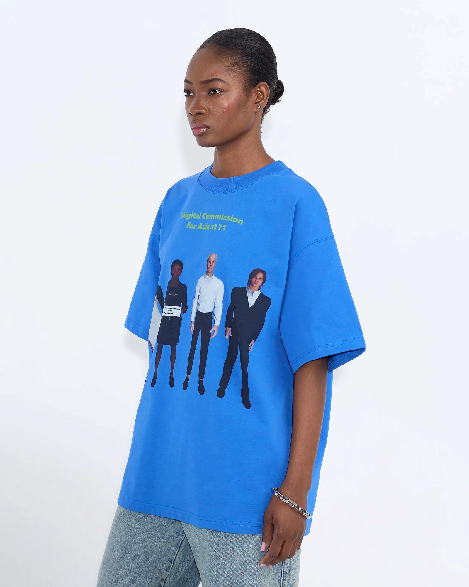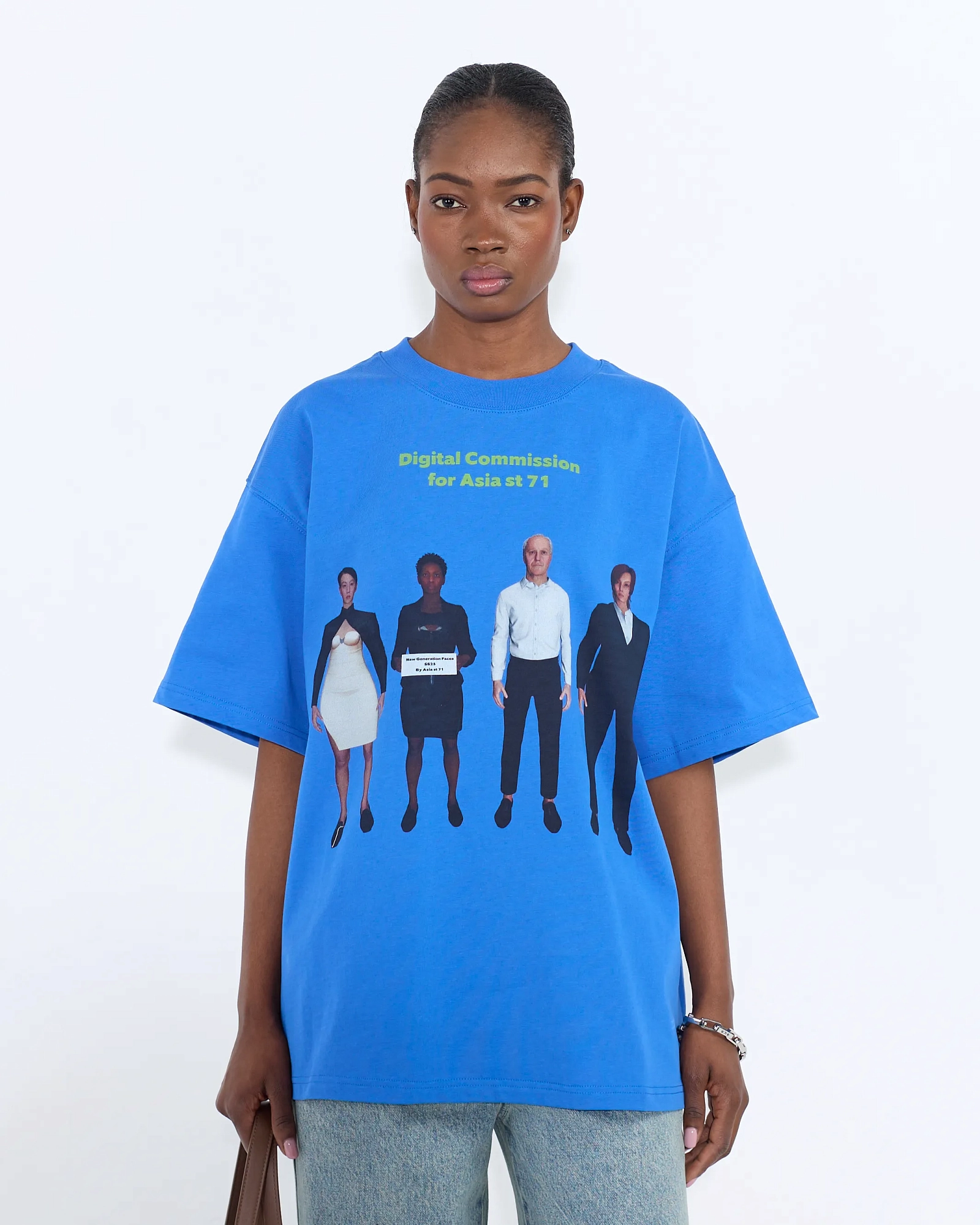 Футболка свободного силуэта с удлинённой линией плеча и классическим круглым вырезом. Выполнена из плотного хлопка, хорошо держит форму и комфортна в носке. На передней части — принт с нашей Digital Comission.