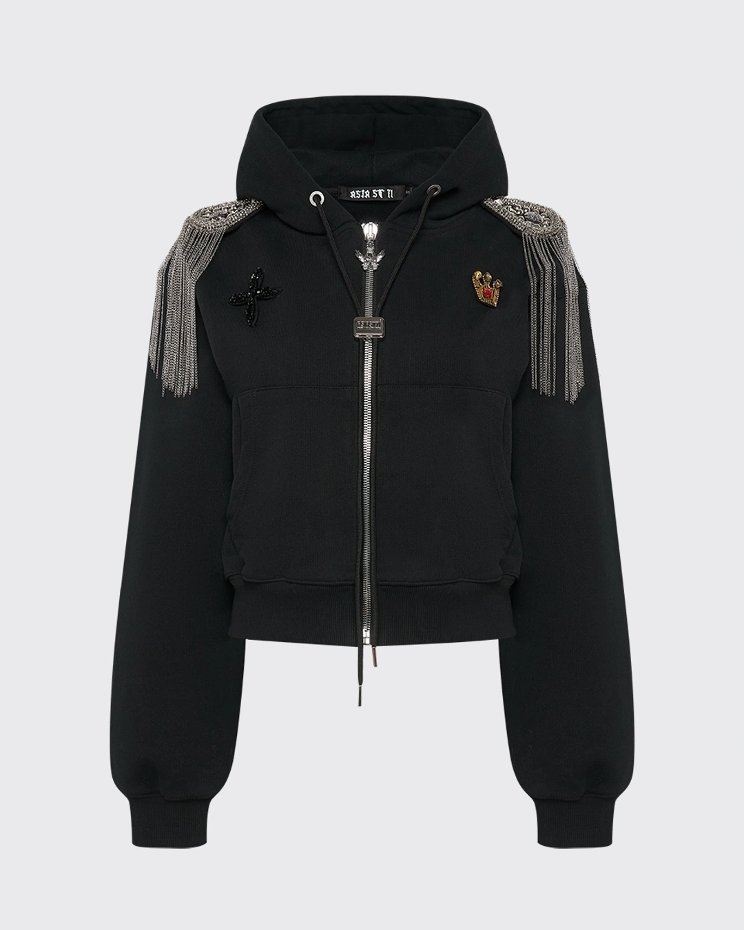 ХУДИ СВОБОДНОГО КРОЯ ИЗ ПЛОТНОГО ТРИКОТАЖА УКОРОЧЕННОГО ФАСОНА. СПУЩЕННАЯ ЛИНИЯ ПЛЕЧА, КОМФОРТНЫЕ МАНЖЕТЫ ПО КРАЮ ИЗДЕЛИЯ И НА РУКАВАХ. СВОБОДНЫЙ КАПЮШОН ДОПОЛНЕН АКЦЕНТНОЙ МЕТАЛЛИЧЕСКОЙ МОЛНИЕЙ С БЕГУНКОМ FLYING A И ШНУРКАМИ. НА БОКОВОМ ШВЕ ПРОРЕЗИНЕННЫЙ ЛЕЙБЛ APPROVED, А ПРИНТ НА ЛИЦЕВОЙ ЧАСТИ НАНЕСЕН ЛАЗЕРНОЙ ПЕЧАТЬЮ. СОЧЕТАЙТЕ С КОМФОРТНЫМИ ДЖОГГЕРАМИ ИЛИ ДЖИНСАМИ."