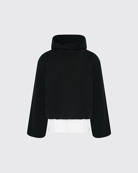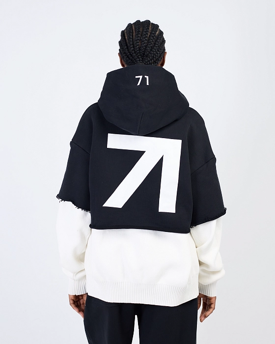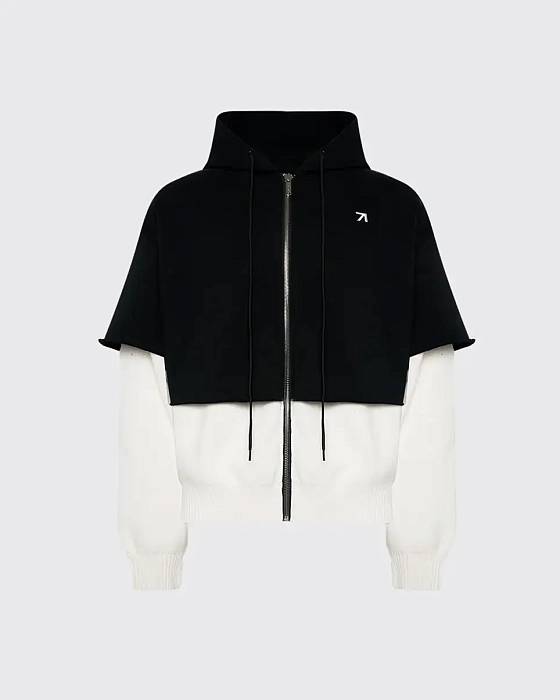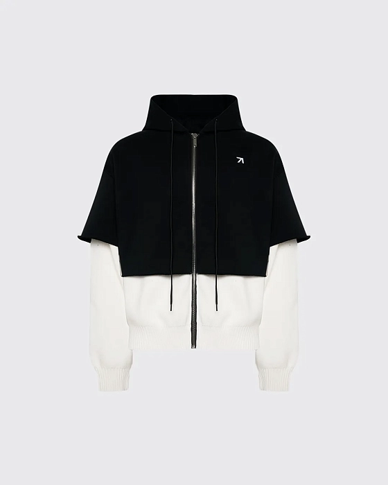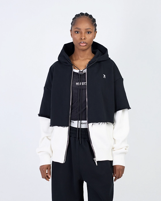 ХУДИ С ТРИКОТАЖНЫМИ ВСТАВКАМИ ЧЕРНЫЙ С БЕЛЫМ