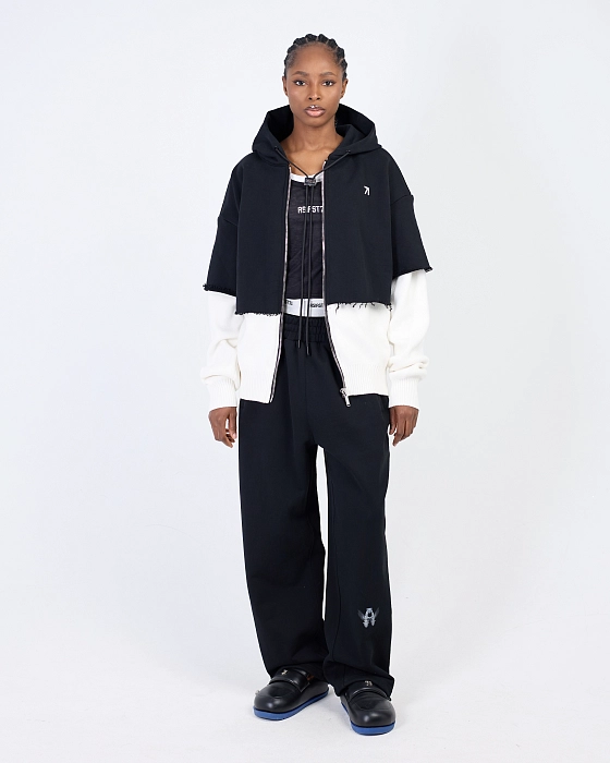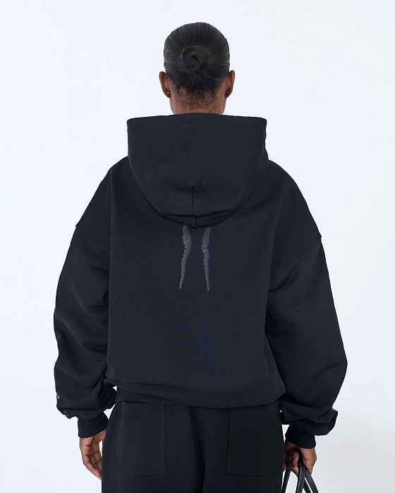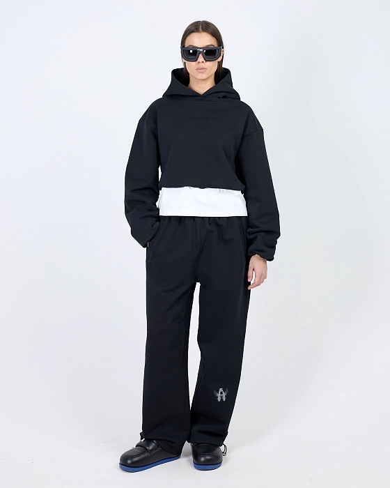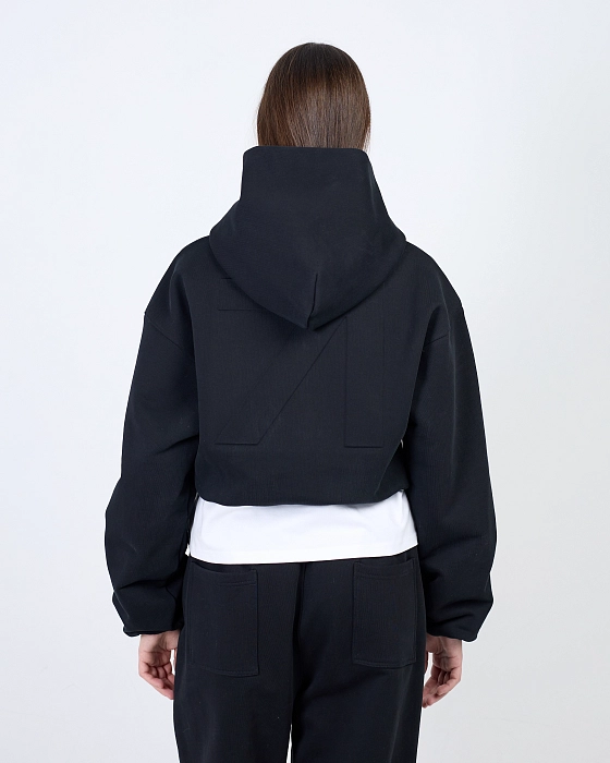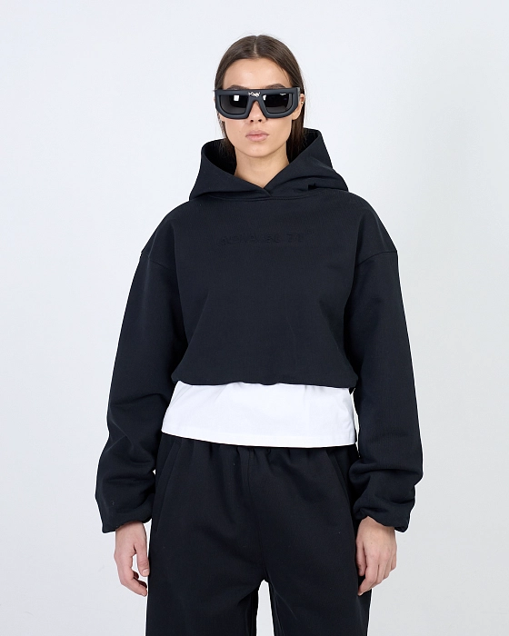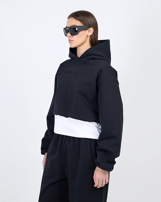 ХУДИ EMBOSSED С БЕЛЫМИ ВСТАВКАМИ CROPPED BLACK