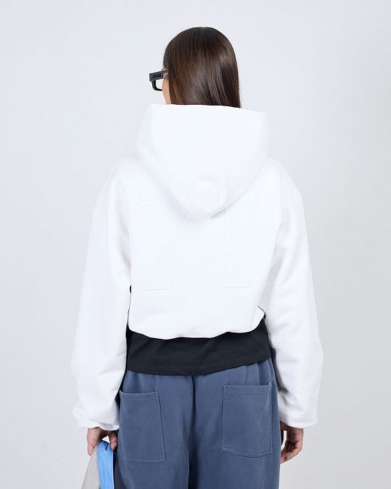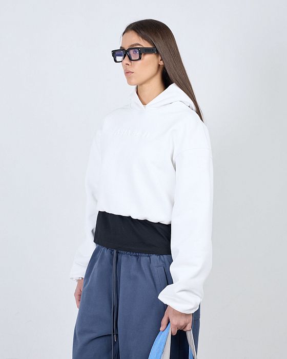 ХУДИ EMBOSSED С ЧЕРНЫМИ ВСТАВКМИ CROPPED WHITE
