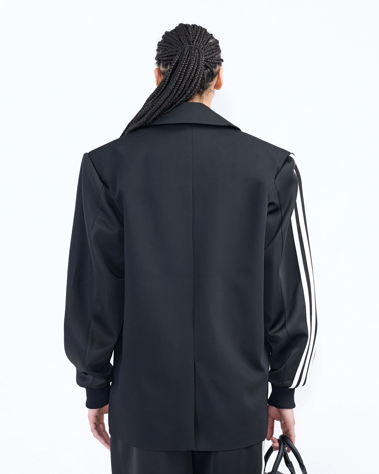 string(861) "Джинсы классического силуэта, отсылающие к спортивной эстетике благодаря декоративным элементам. Черная необработанная джинса с выраженной фактурой дополнена ассиметричными лампасами и потертостью в зоне бедер, по краю штанин, а швы обработаны акцентными строчками. Полная длина позволяет носить их как с кроссовками, так и с обувью на высоком каблуке, создавая образы в духе sport chic.