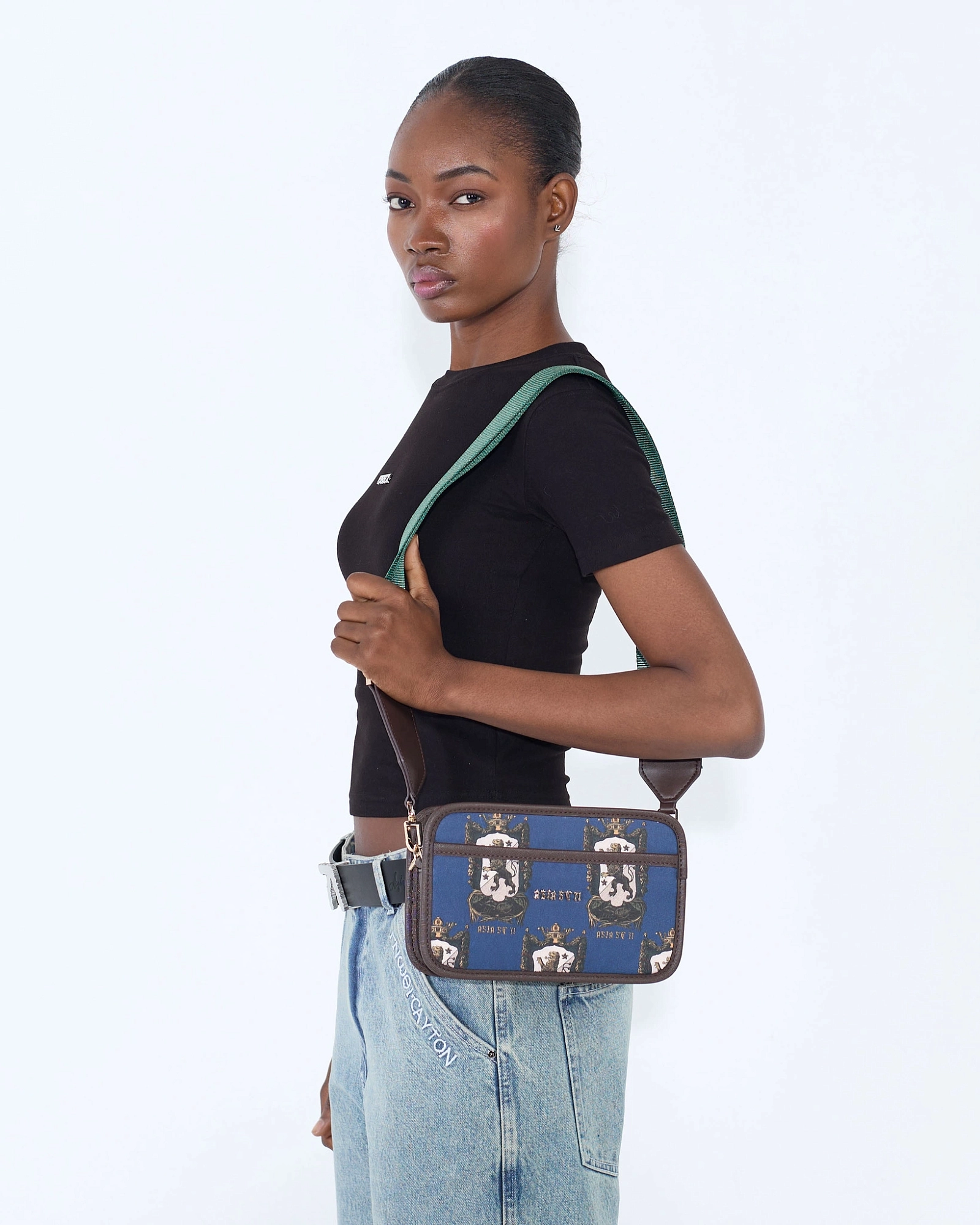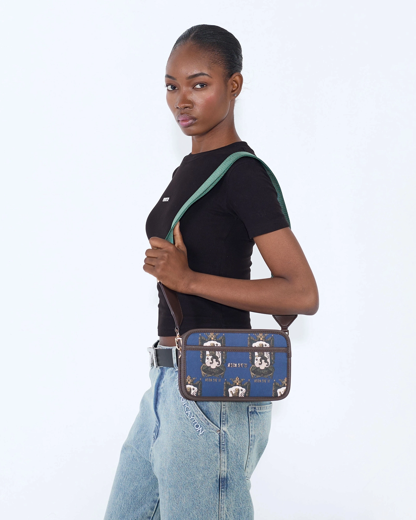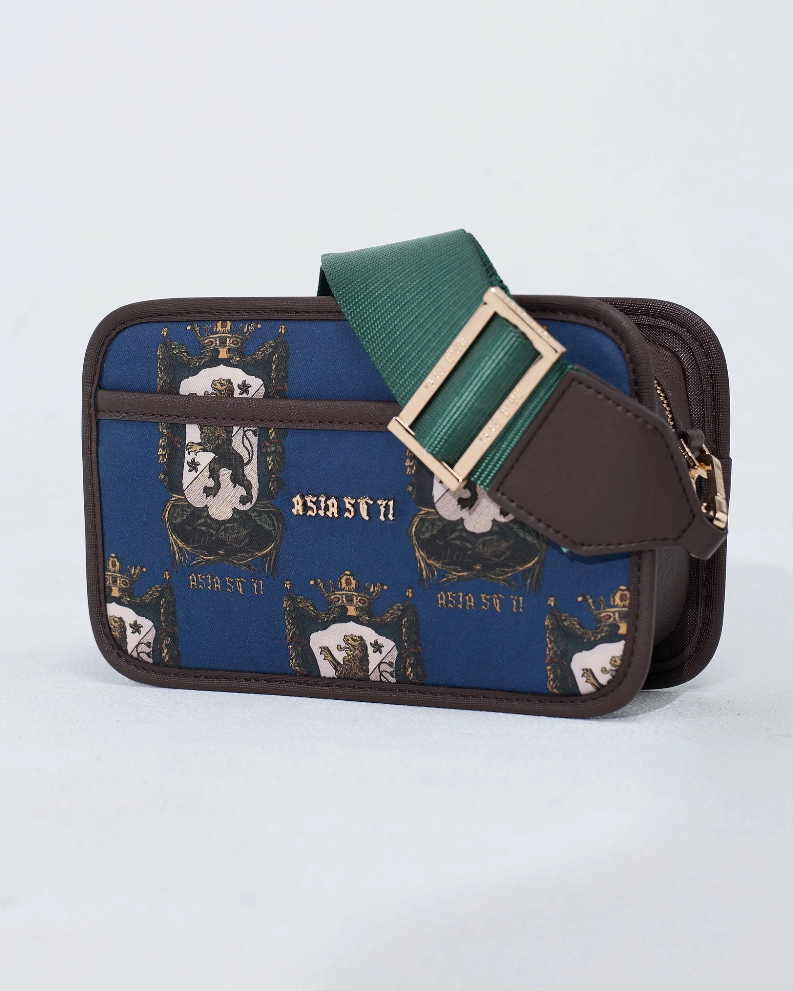 Сумка из коллекции Blazon Lion сразу притягивает внимание насыщенным синим цветом и гербовым принтом с образом льва. Компактная форма и широкий ремень делают её удобной для повседневной носки. Такой аксессуар станет ярким акцентом лаконичного образа.
