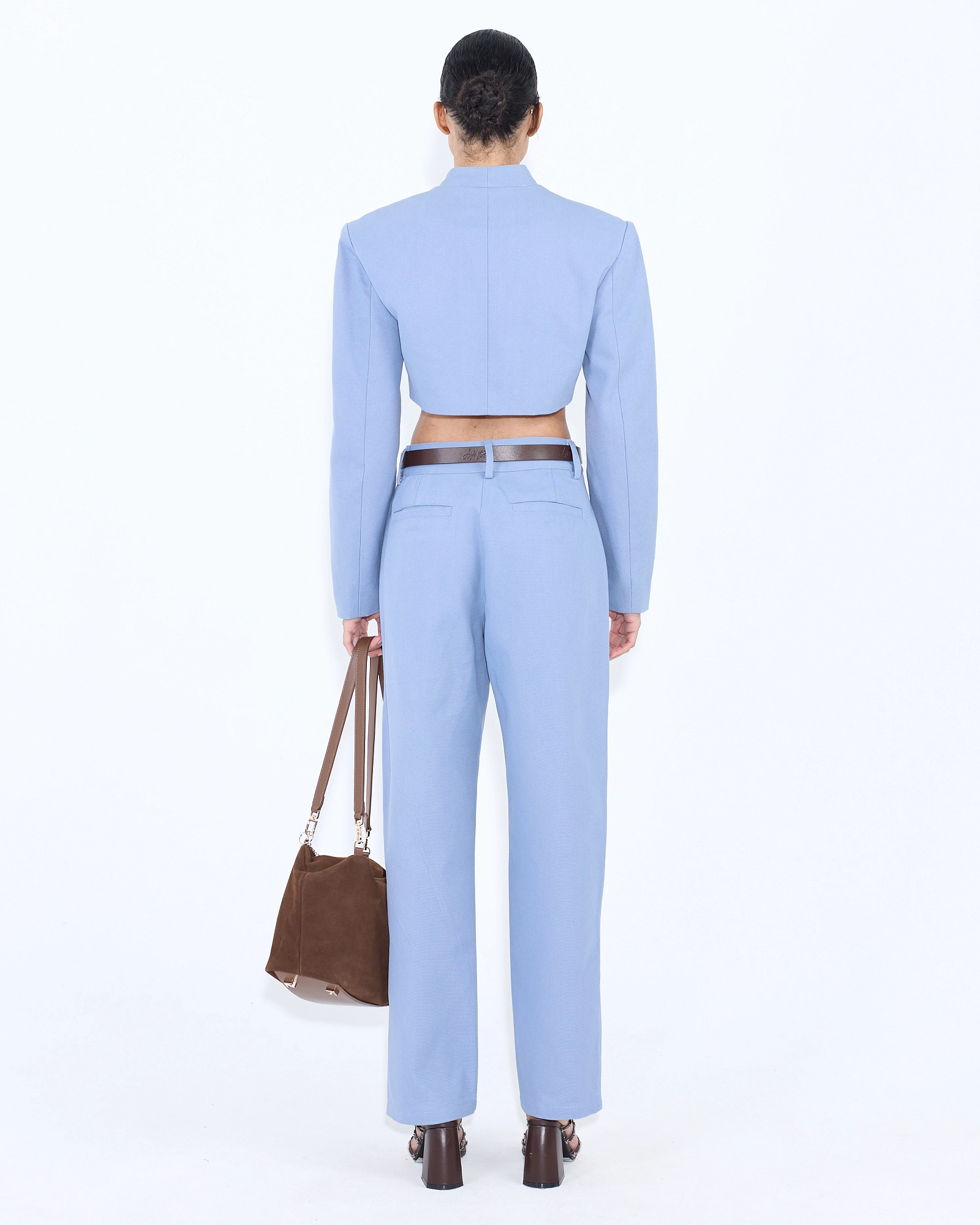 string(605) "Базовые джоггеры свободного кроя в пыльно синем оттенке выполнены из плотного 500-гр хлопка, держат форму. Выдавленные логотипы в технике embossing. На талии комфортная резинка со шнуровкой. Два прорезных кармана спереди и два накладных сзади. Мы рекомендуем сочетать джоггеры с худи или футболками, дополняя образы аксессуарами. "