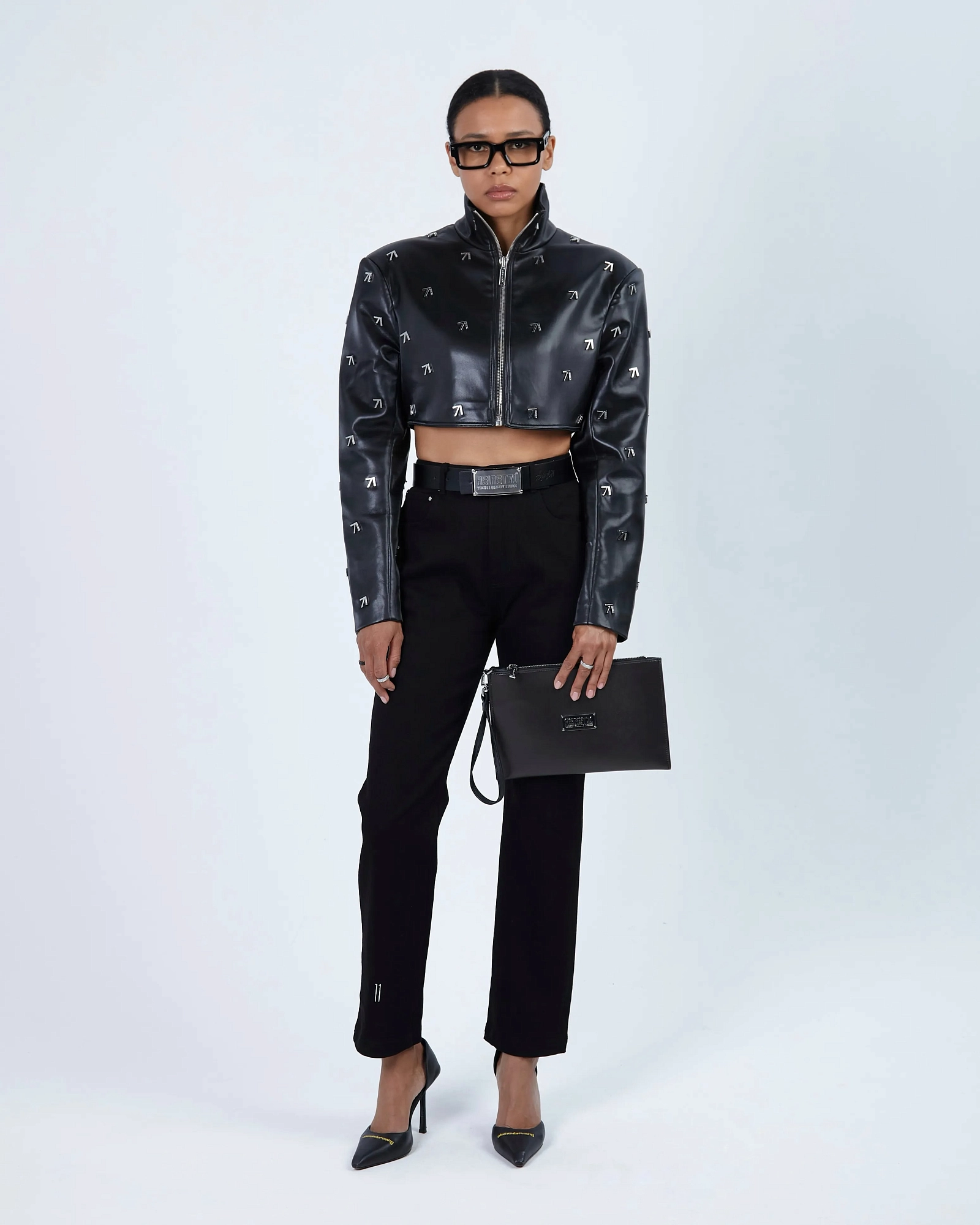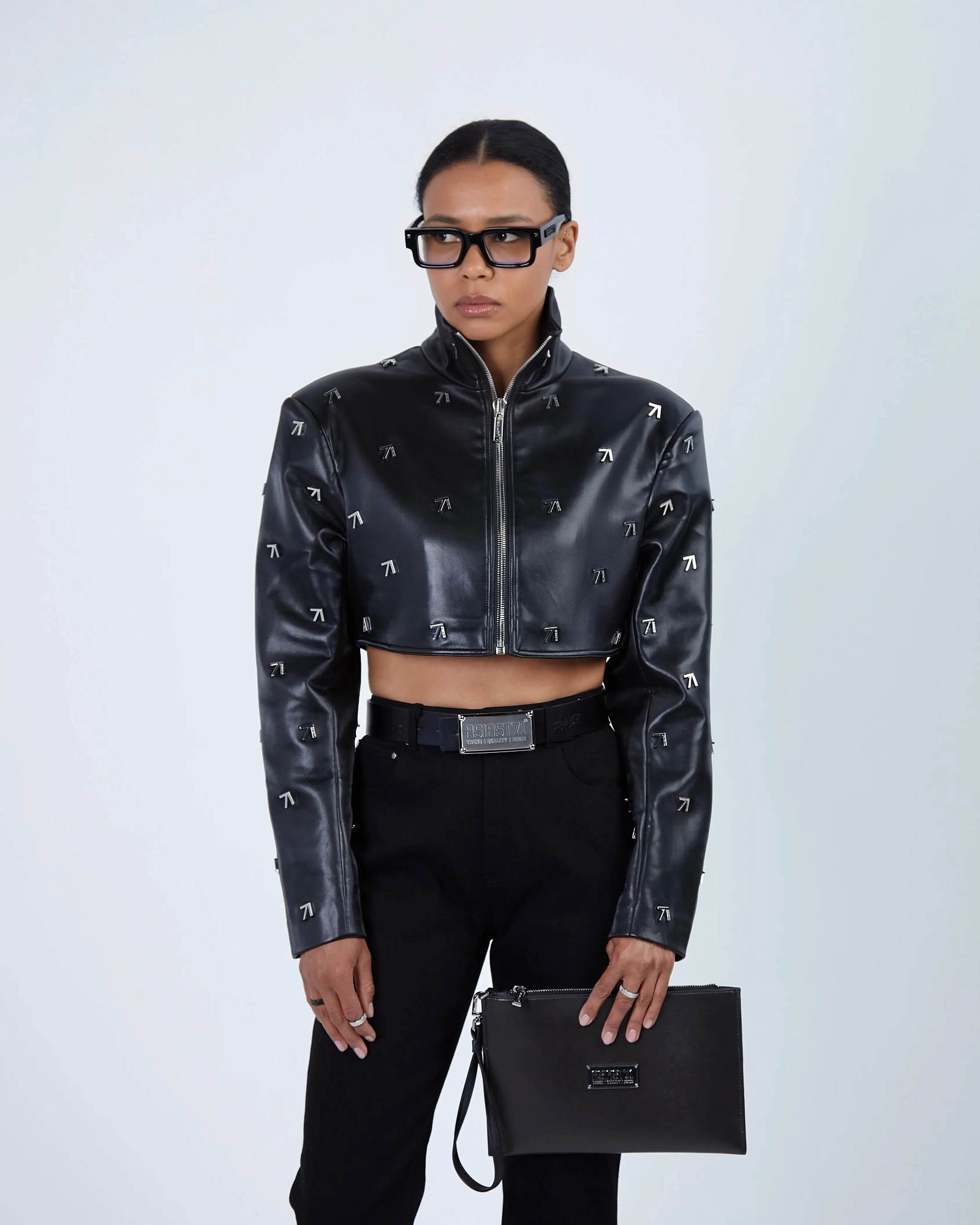 КУРТКА ИЗ ЭКО КОЖИ METAL ARROW CROP BLACK