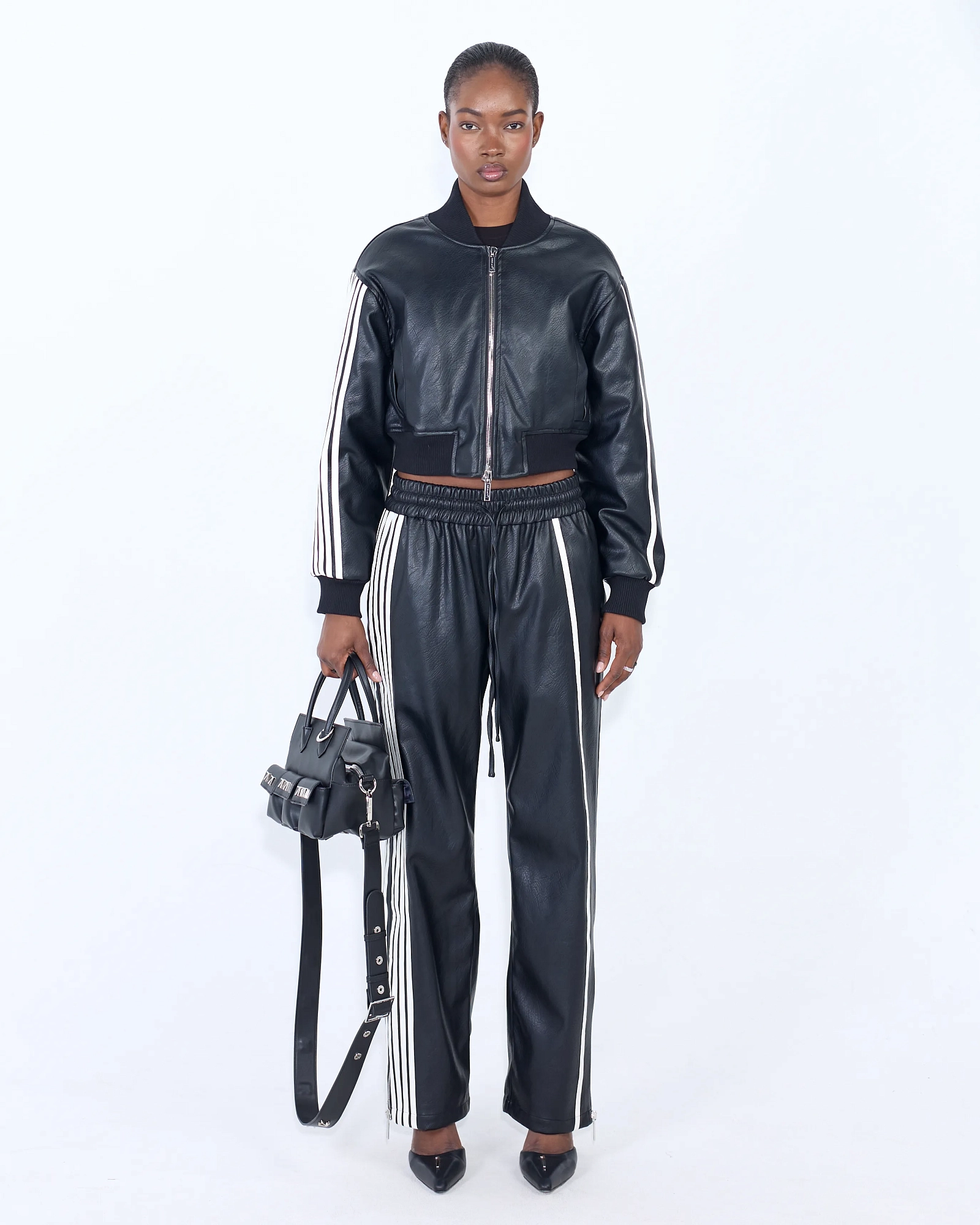 КУРТКА ИЗ ЭКО КОЖИ METAL ARROW CROP BLACK