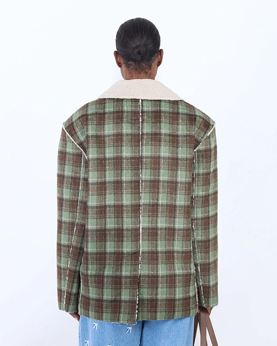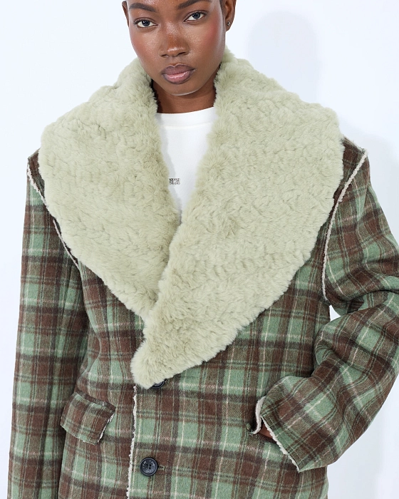 ПАЛЬТО-ЖАКЕТ С МЕХОВЫМ ВОРОТНИКОМ PLAID WOMEN GREEN